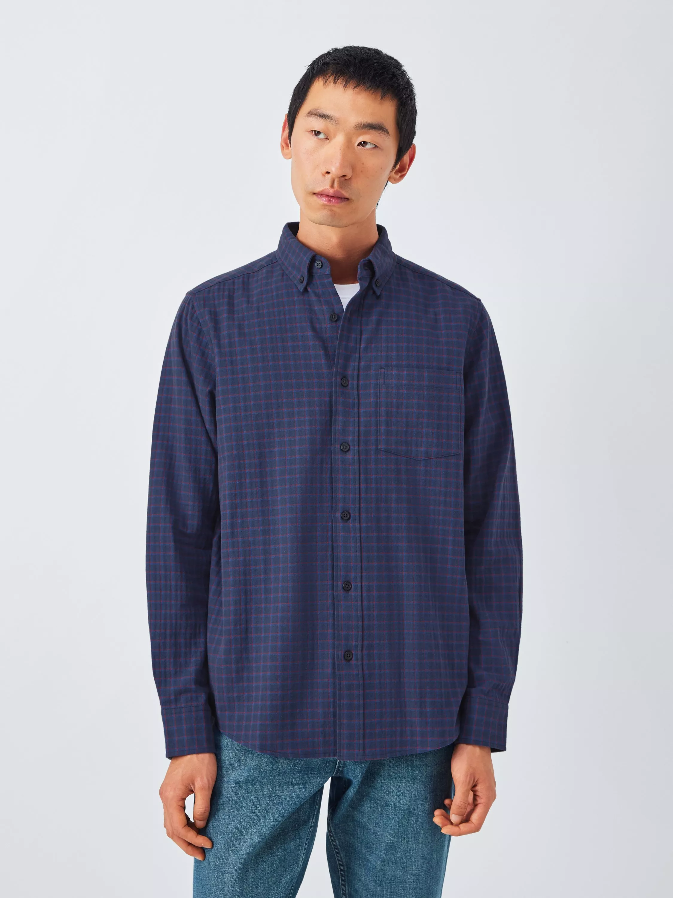 Long-sleeved shirt in a grid check pattern, made from cotton with a touch of stretch for comfort. Styled with a button-down collar and front, and a single chest patch pocket.