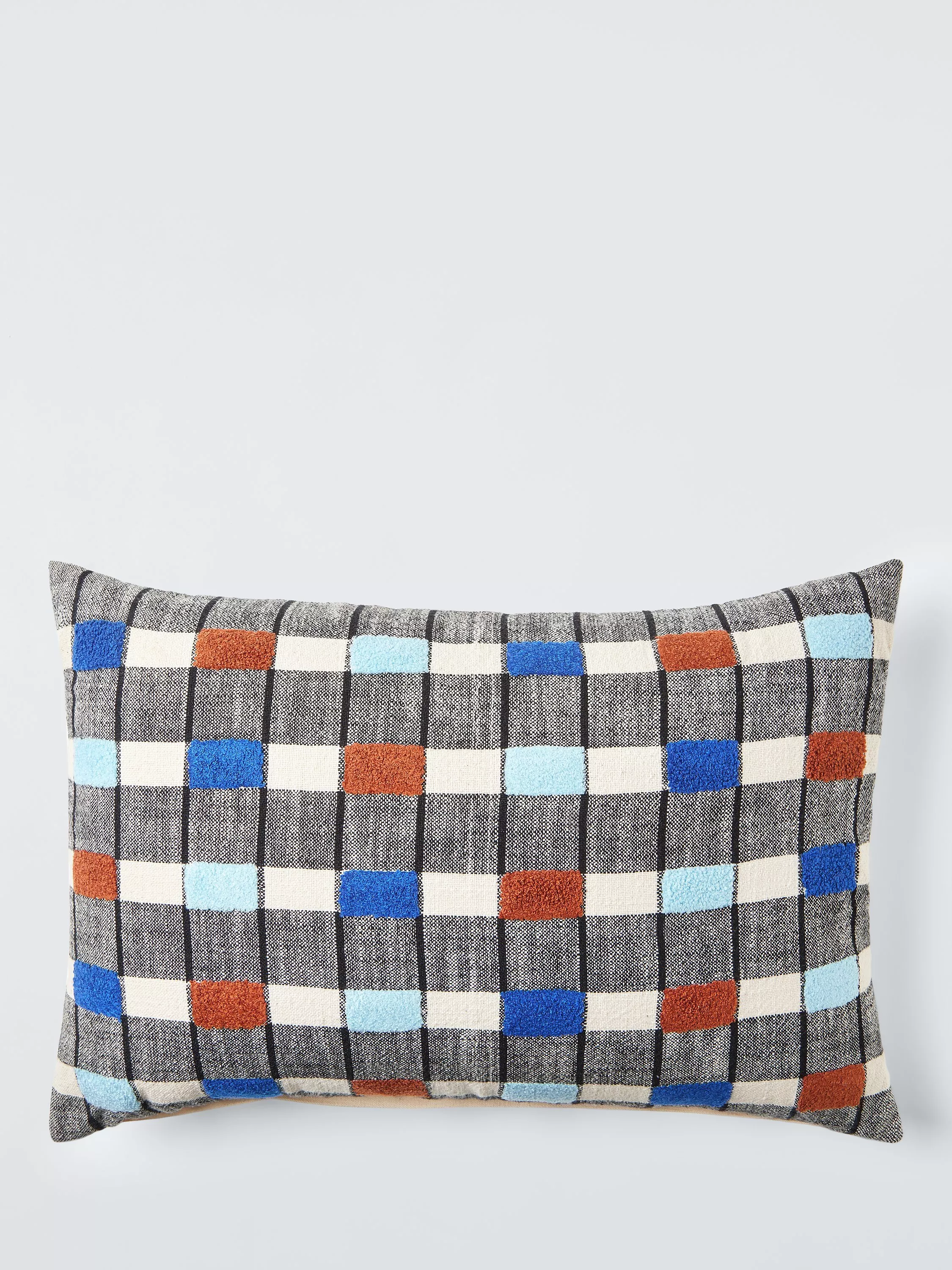Textured embroidery meets a tonal weave in this colourful, contemporary grid check design.