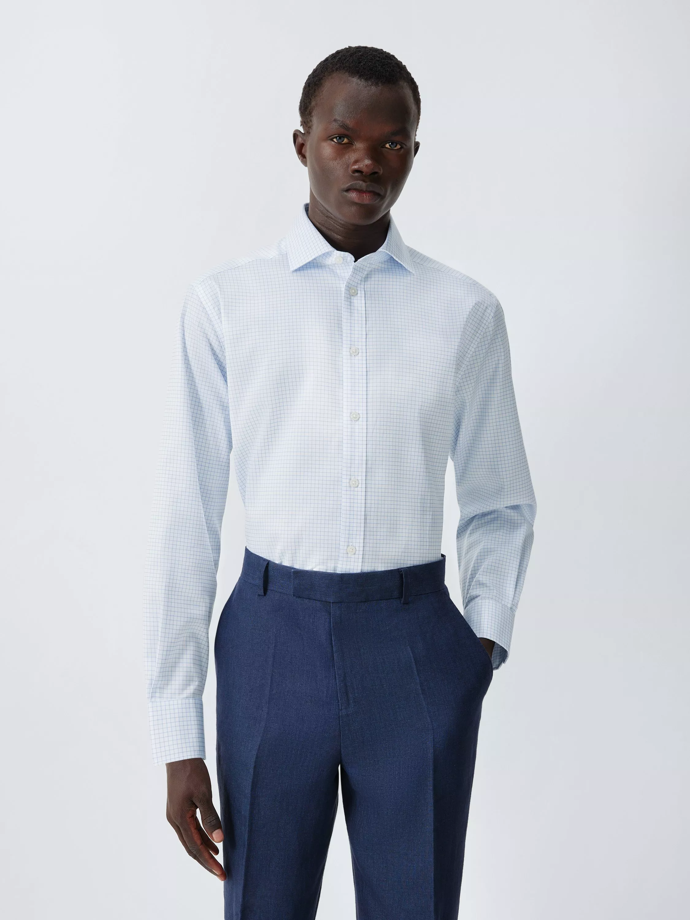 John LewisGrid Check Regular Fit Cotton Shirt, White
