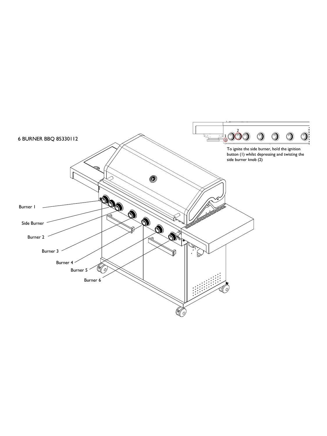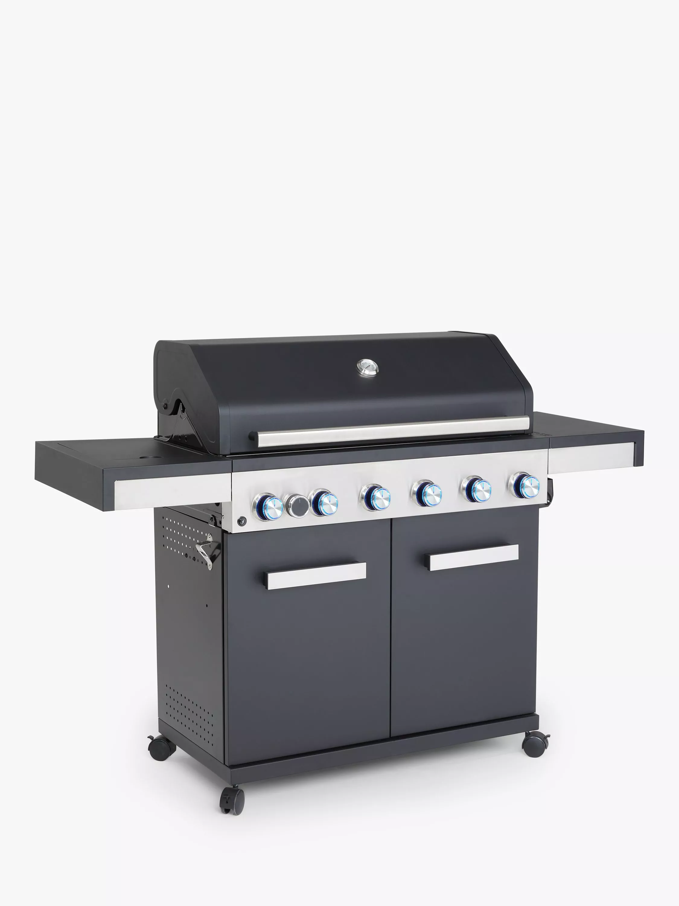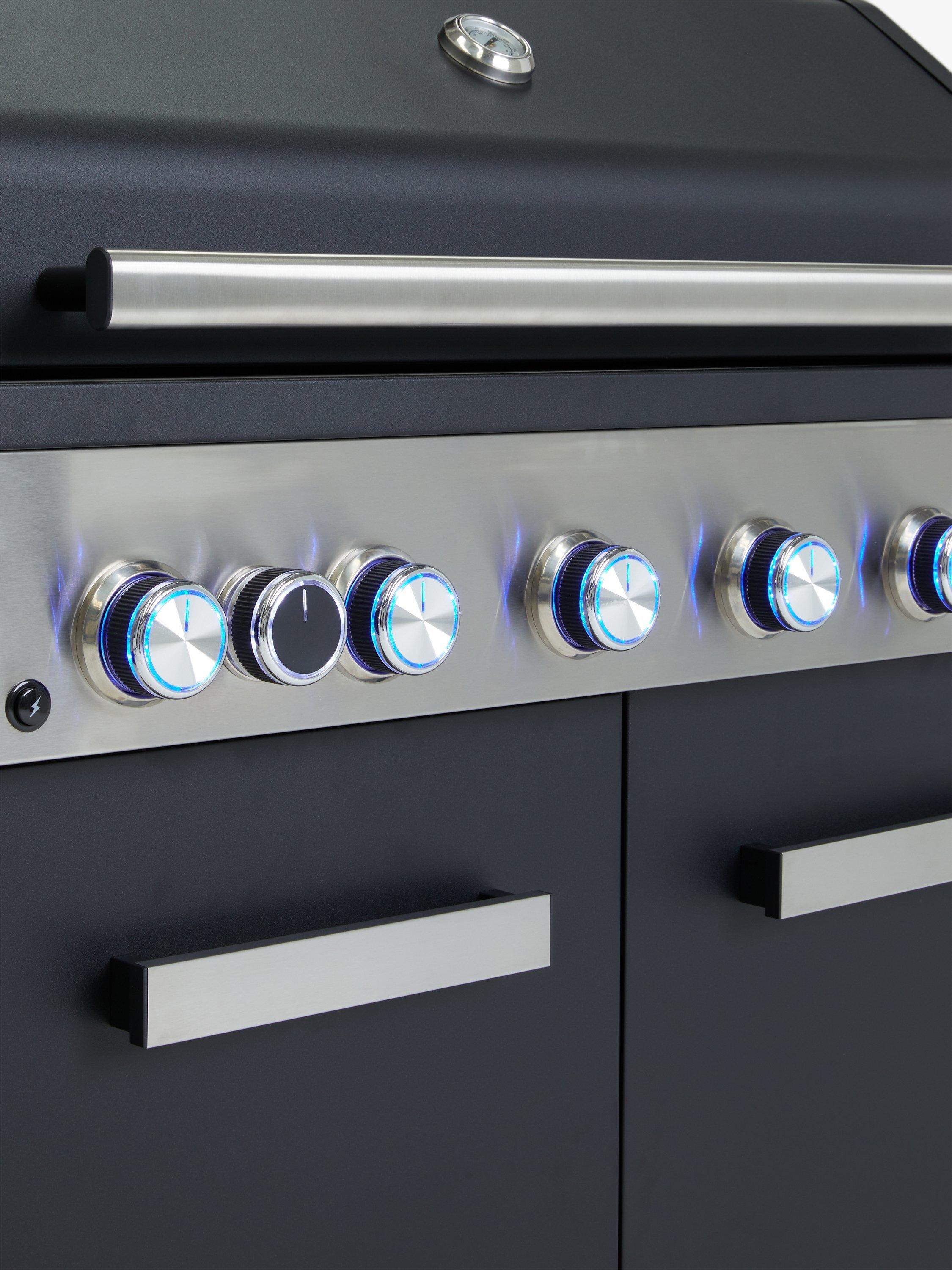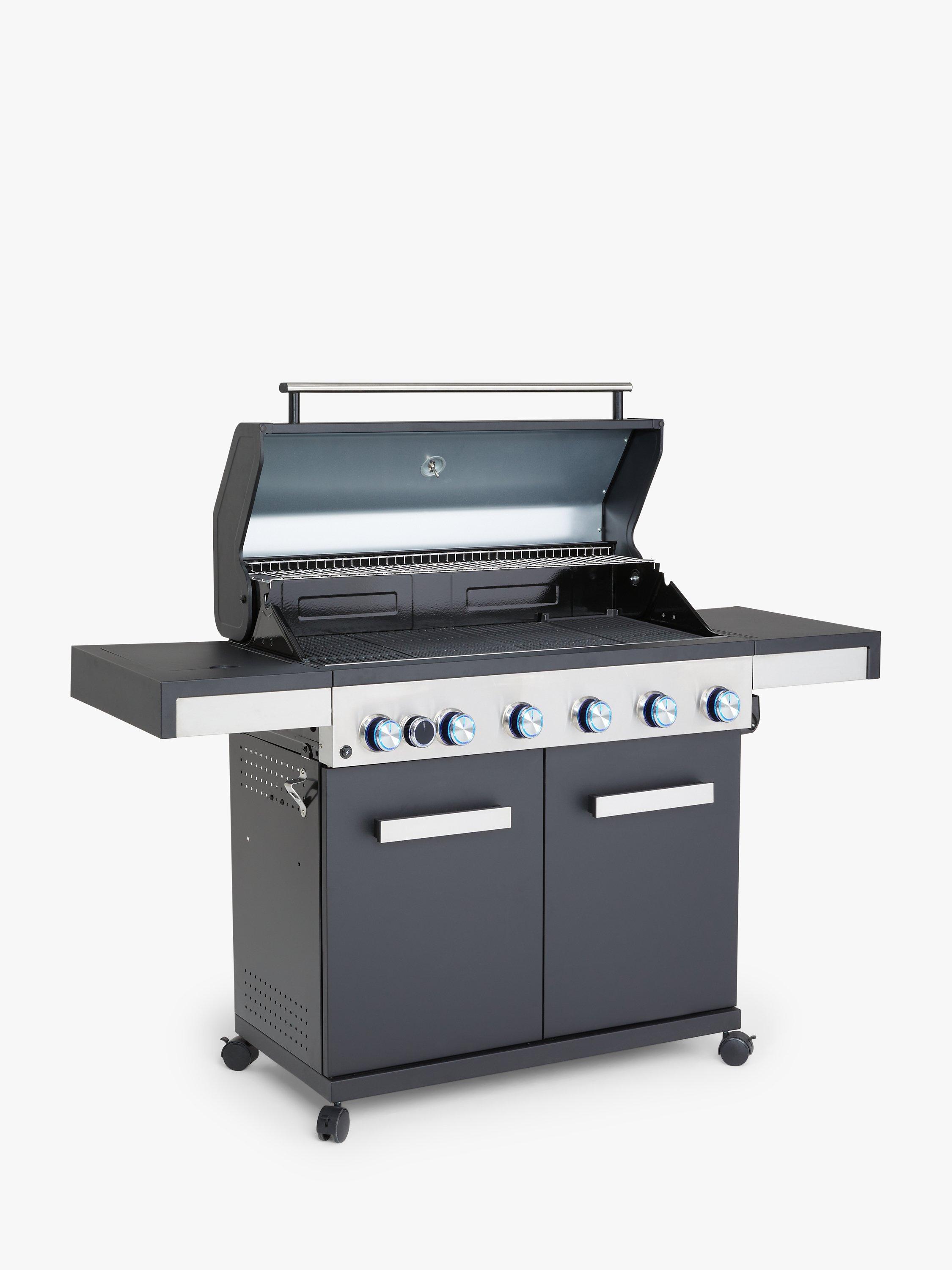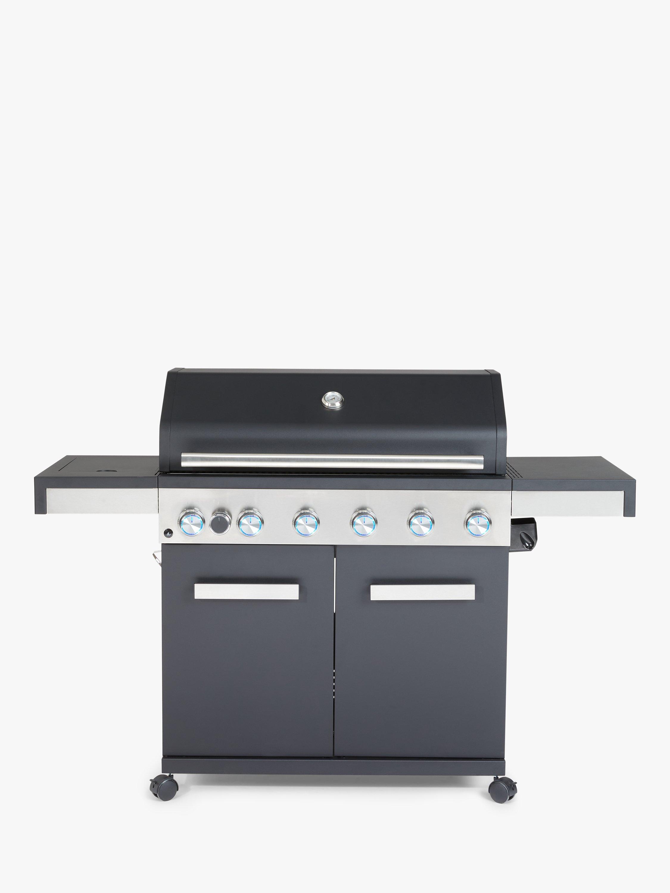 - 6-burner gas barbecue cooks for up to 12