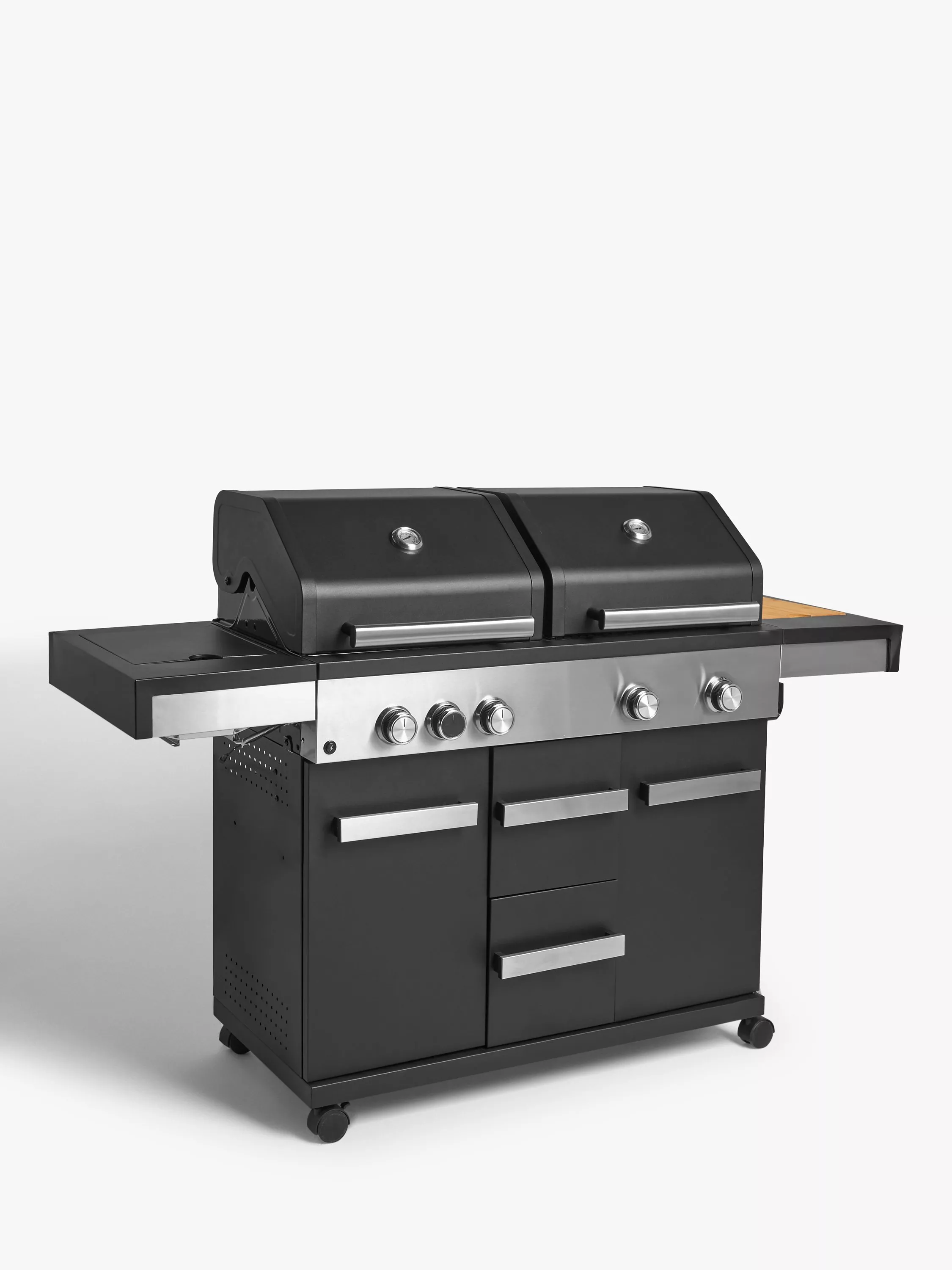 John LewisGrillstream Dual Hood 5-Burner Hybrid Gas & Charcoal BBQ, Black/Silver