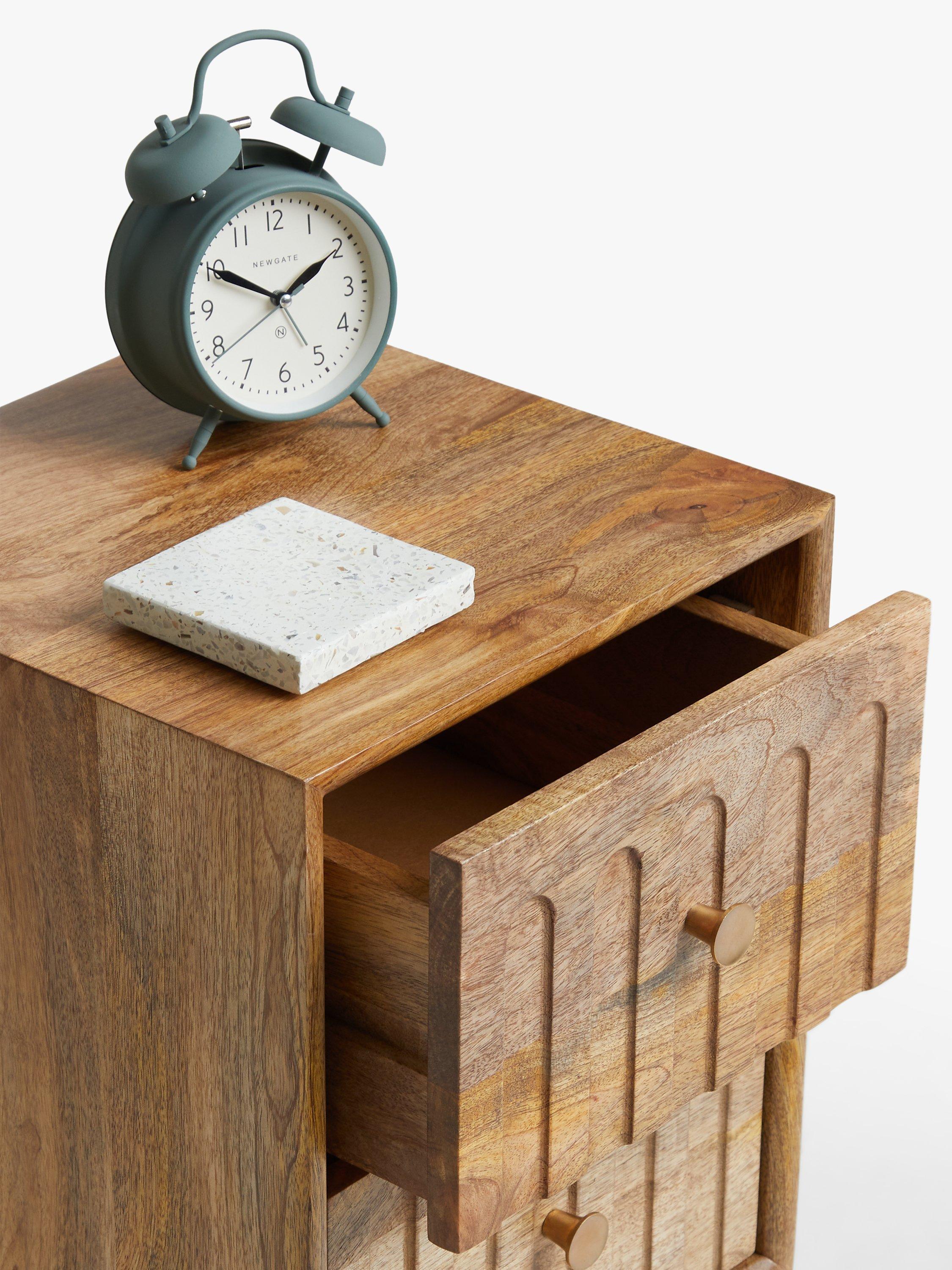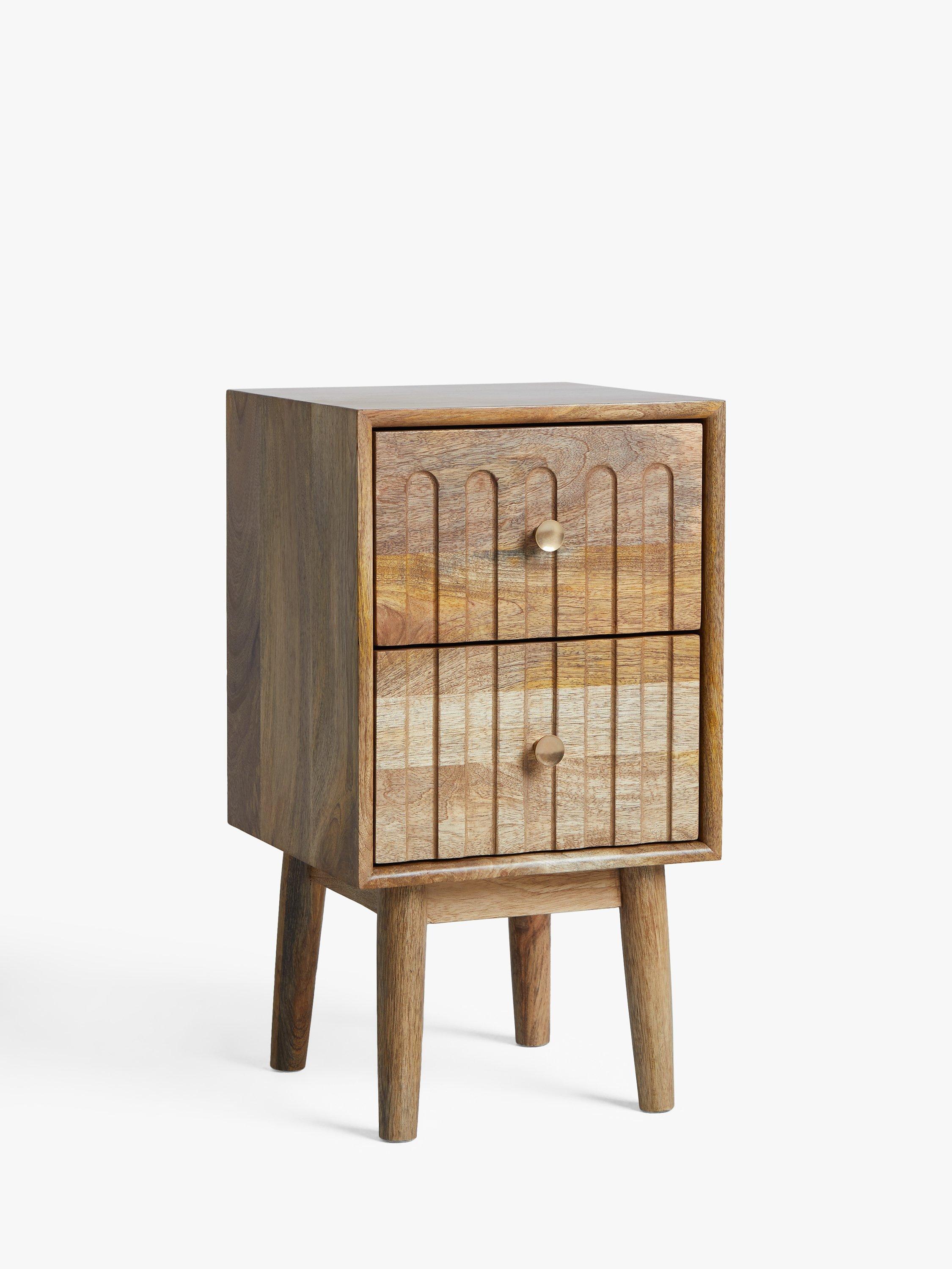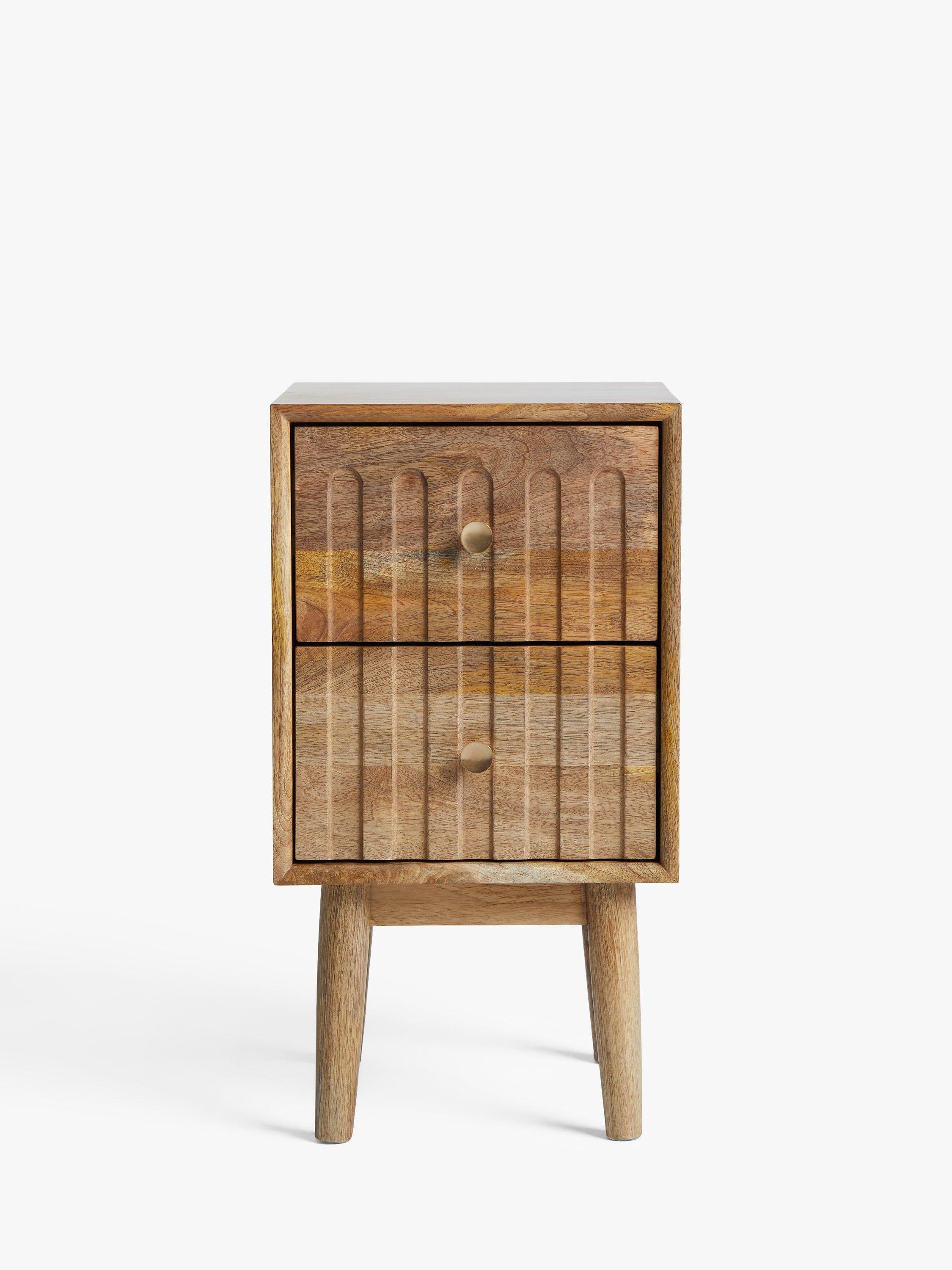 Our designers understood the assignment. Rustic, beautiful furniture, made from high-quality, warm-toned mango wood and MDF and coated in a lacquer so it's built to last. This bedside table is brilliant if space is limited in your bedroom, and the two drawers provide just the right amount of storage space for your night-time essentials. The drawers are inset with a tactile, grooved pattern and spindle-shaped legs offer a smart design contrast. We know, it's one you'll stop to admire every time you see it.