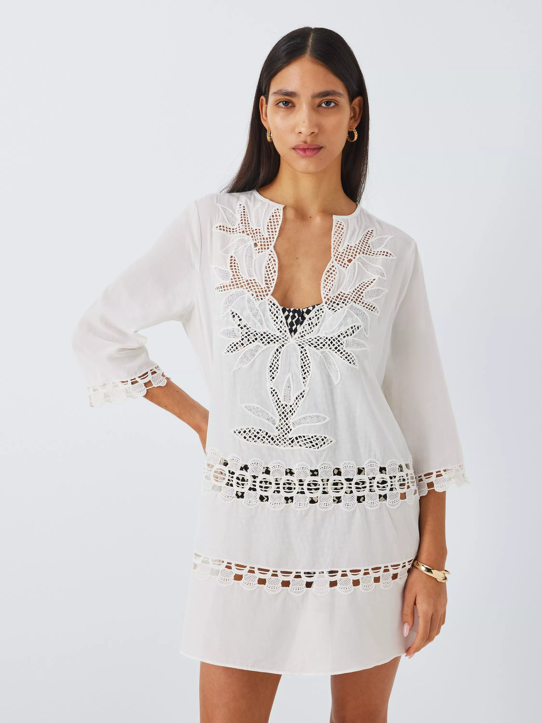 Ideal for throwing on after a dip in the pool or a swim in the sea, this pure cotton kaftan features beautiful cut out detailing throughout.