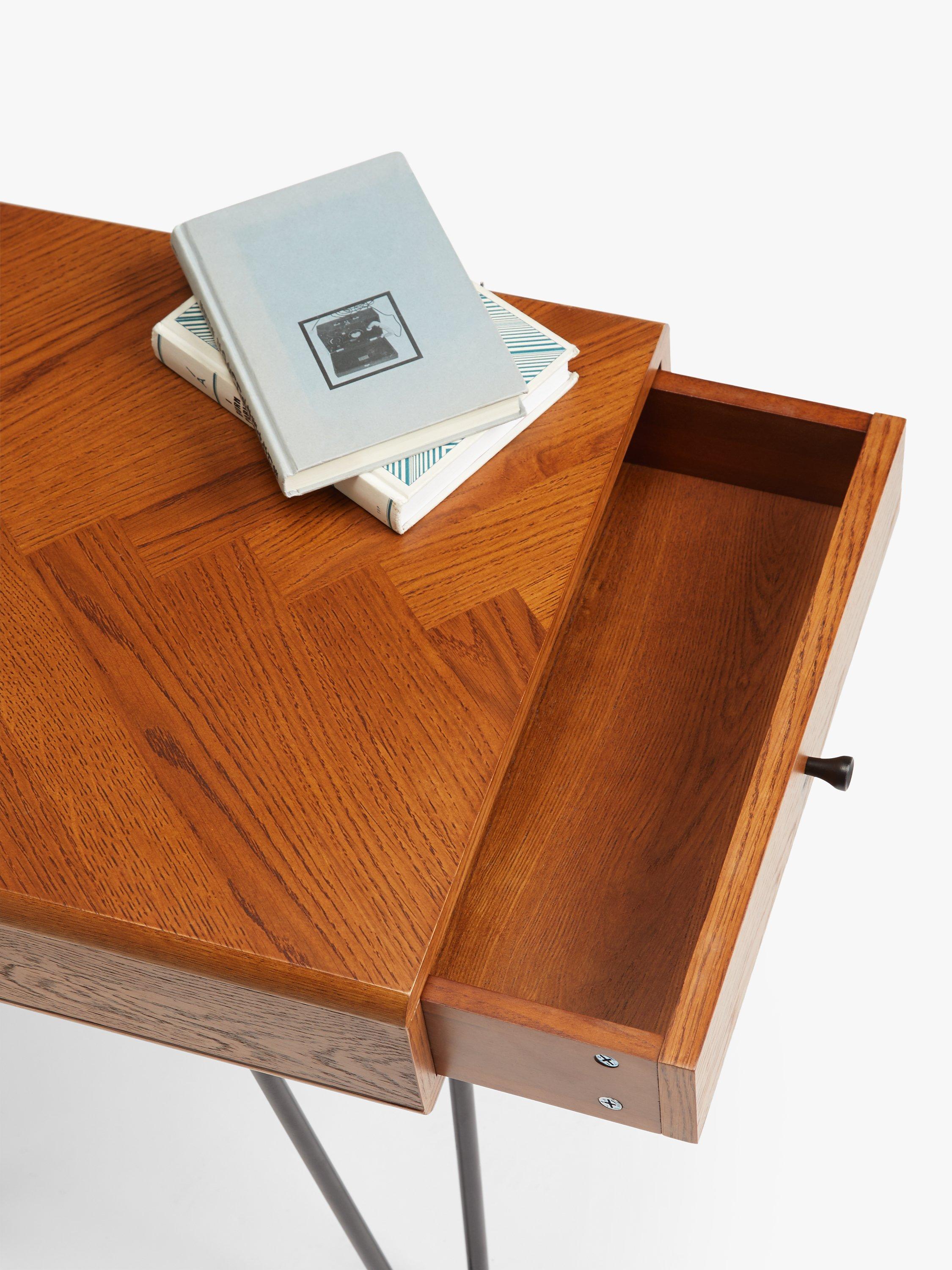 The Hairpin range fuses American oak veneers and wood with striking hairpin-shaped steel legs to create a functional, yet retro facade. Each piece of furniture has a perfectly balanced profile, that juxtaposes the statement curves against the sleek, polished style of its natural wooden design.