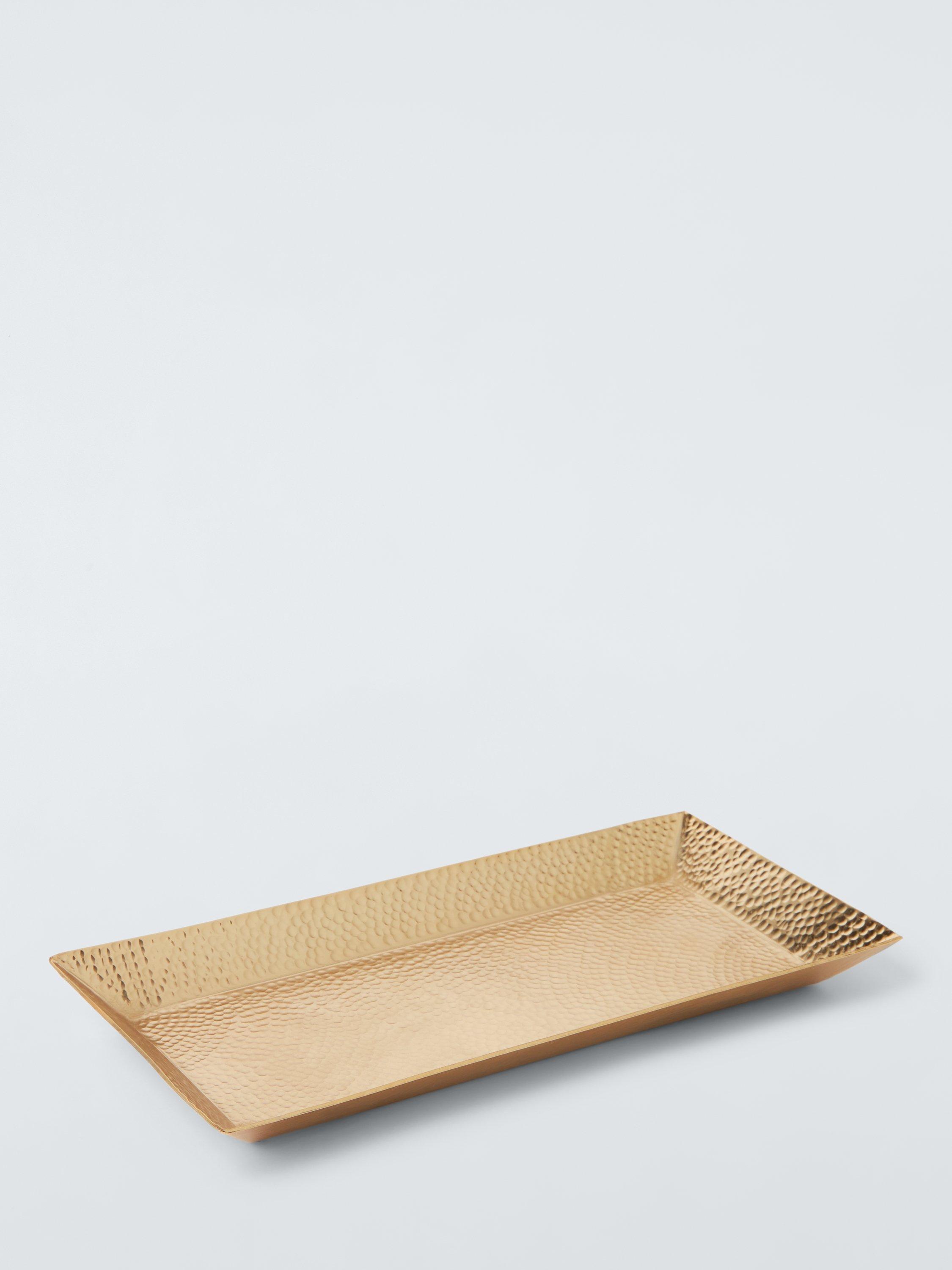 Great for serving snacks and nibbles, this small, lightweight rectangular tray has a hammered metal texture and glamorous gold-toned finish.