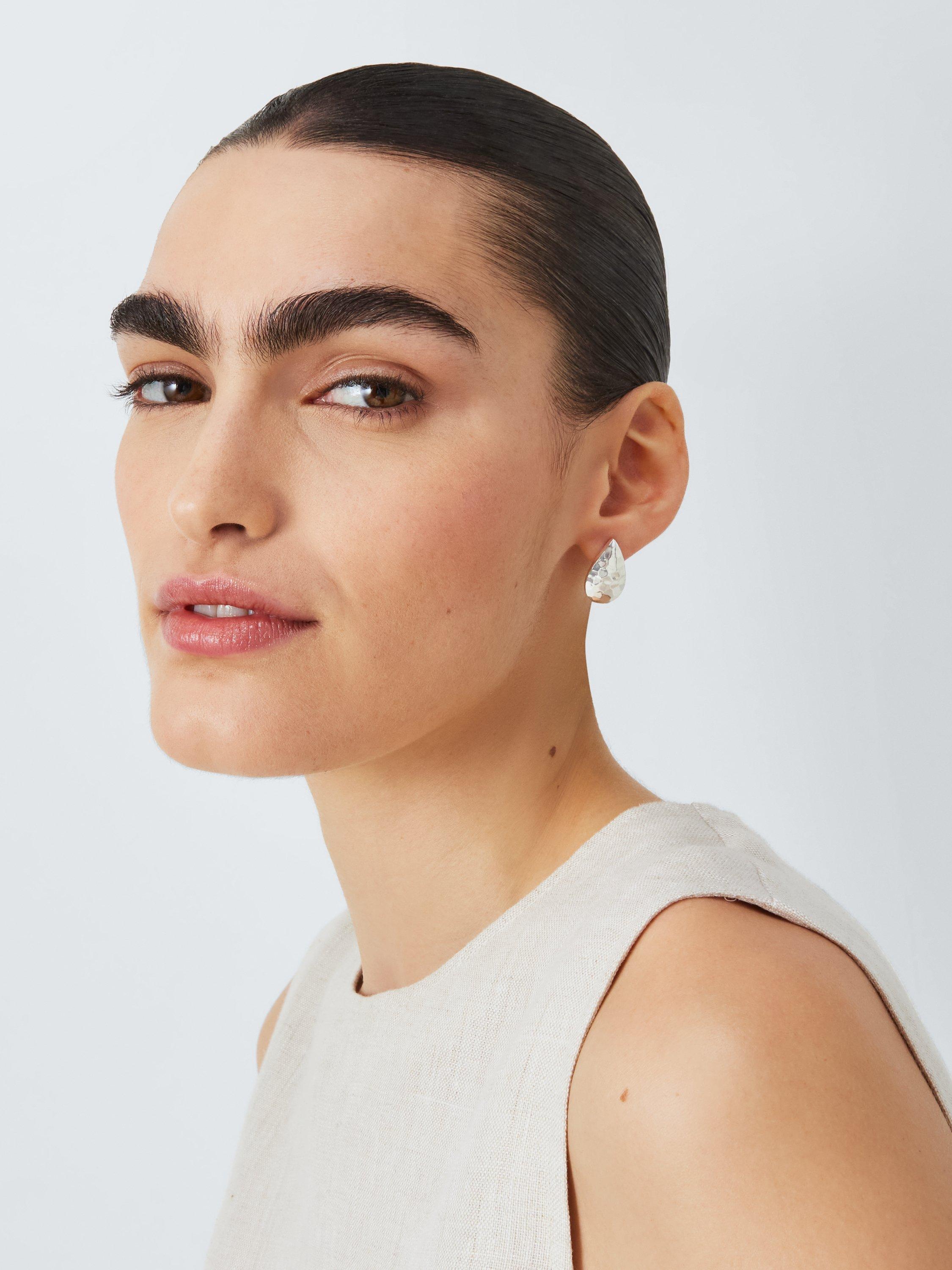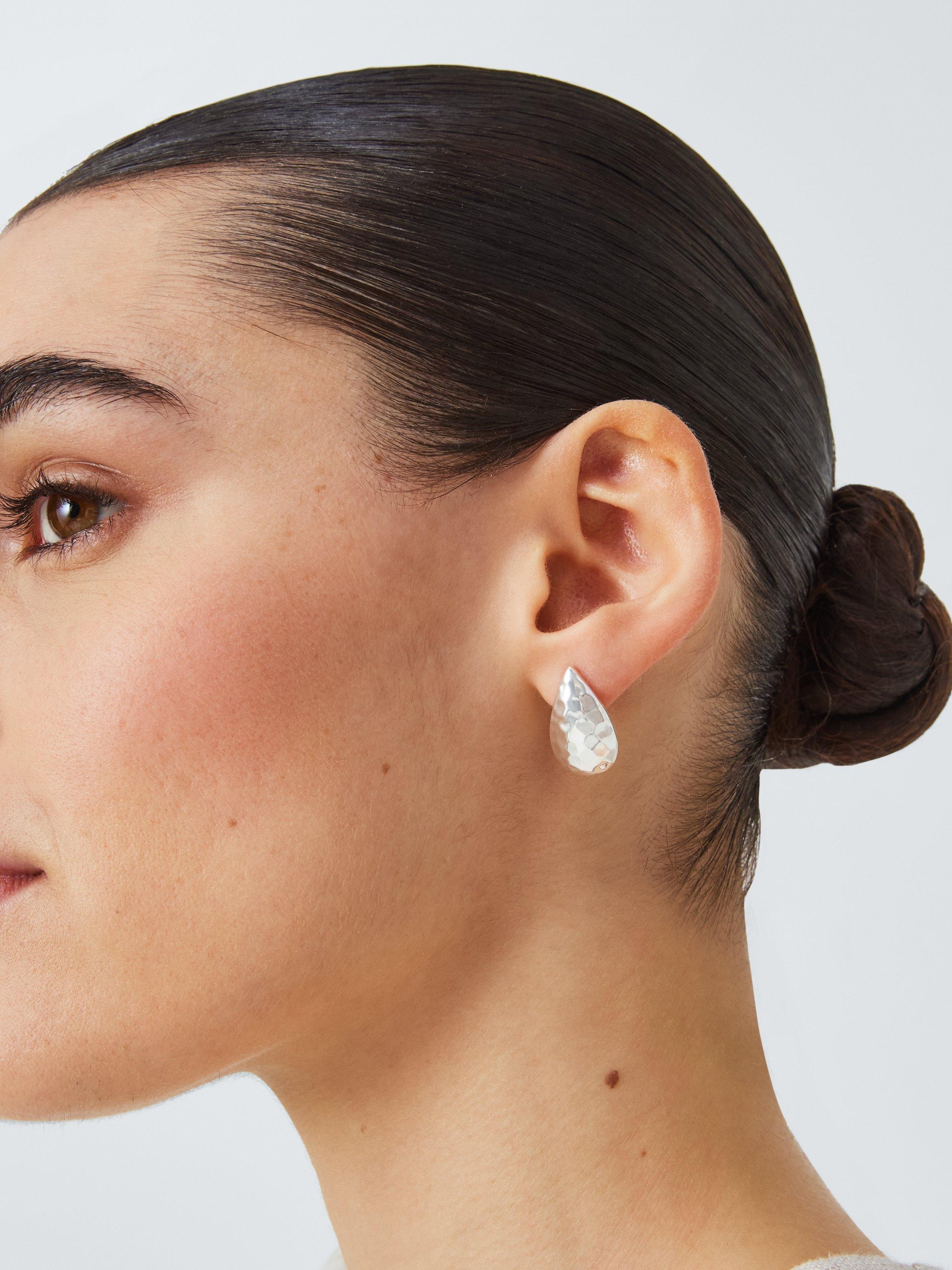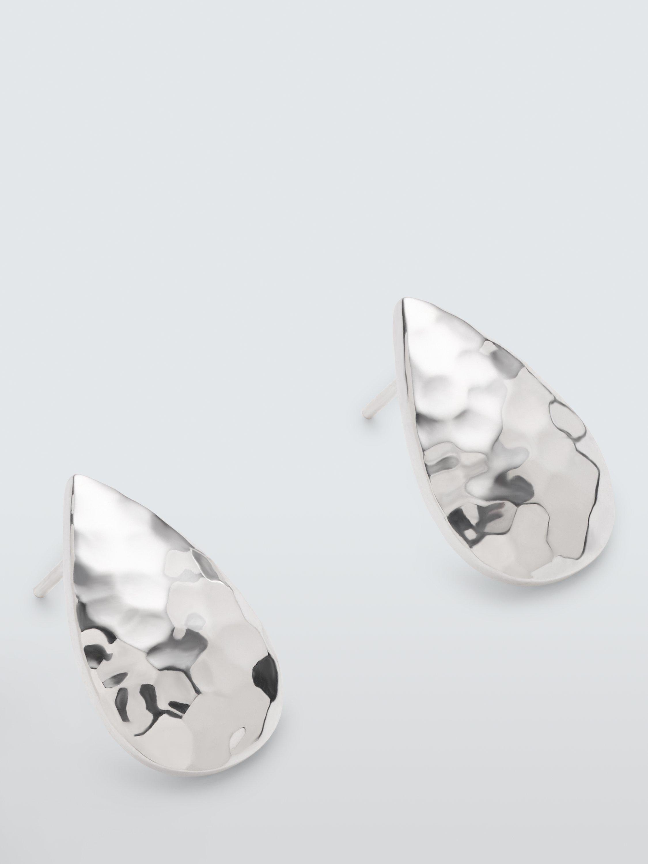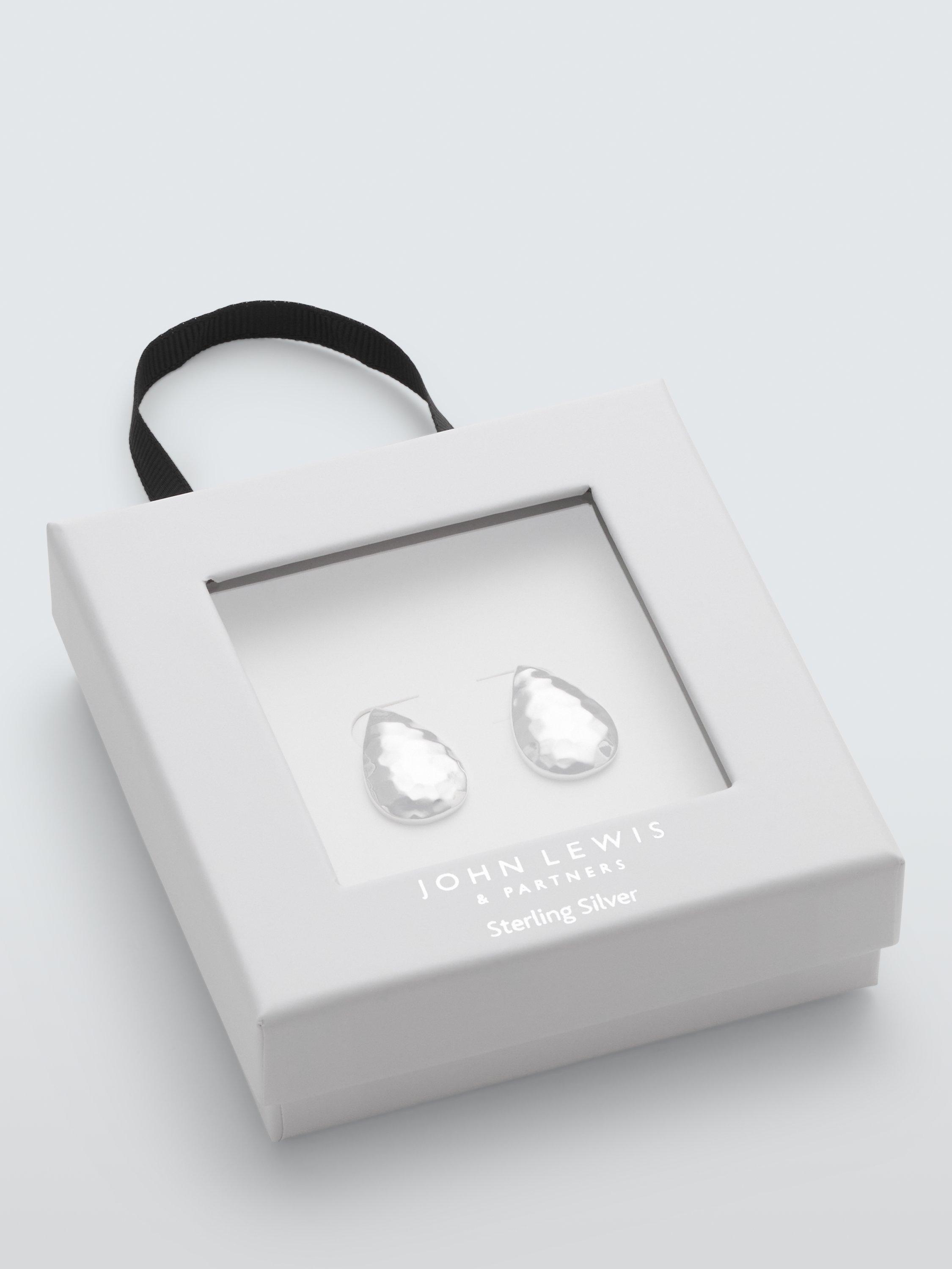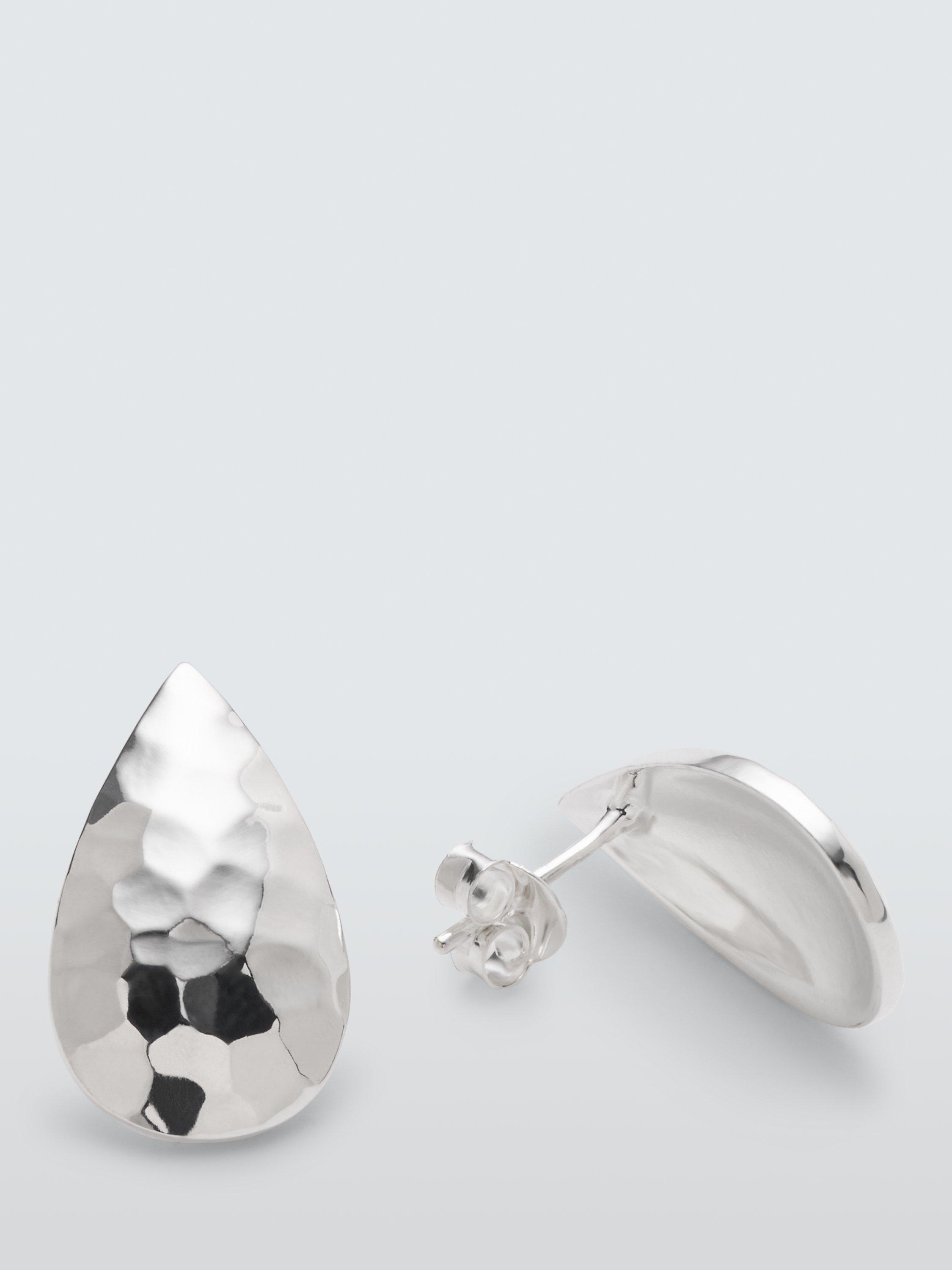 John LewisHammered Teardrop Stud Earrings, Silver