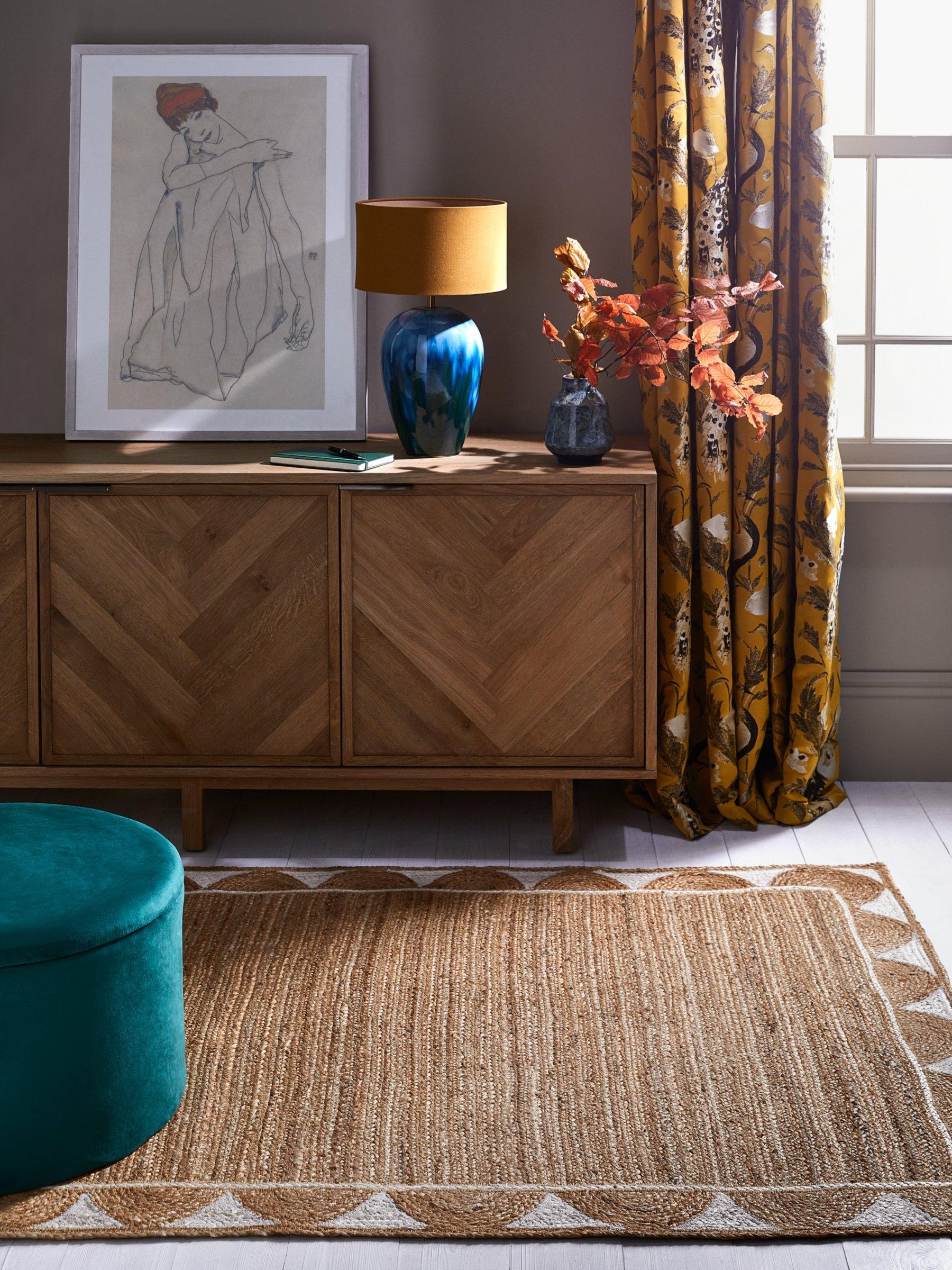 With a plain jute centre, the real hero of this rug is the beautiful, scallop style border that adds just a hint of colour that makes it ideal for updating already colourful spaces in your home.