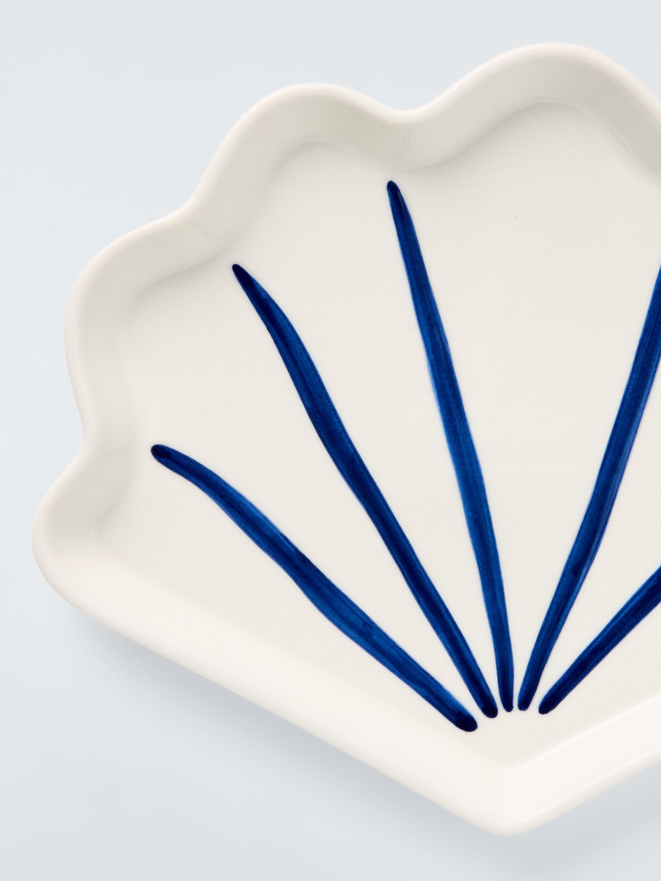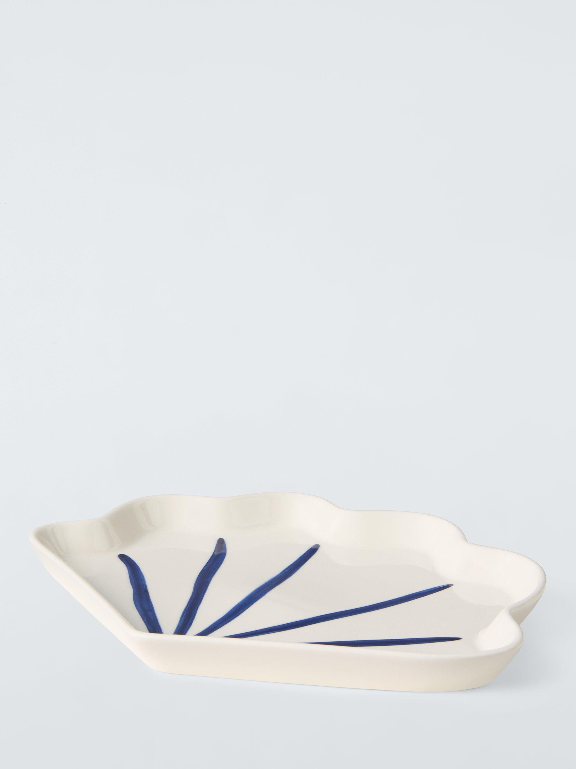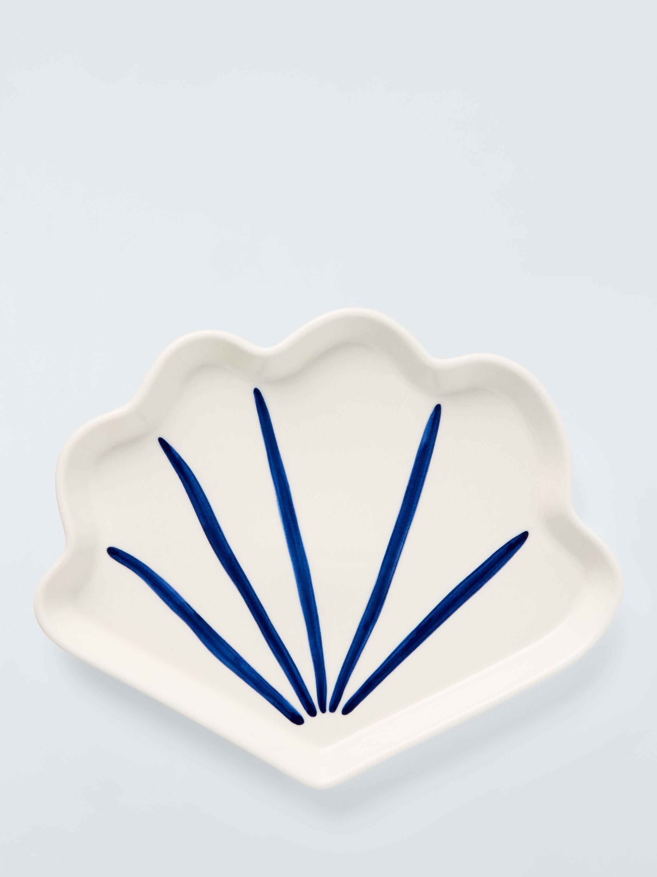 John LewisHand Painted Stoneware Shell Side Plate, 21.5cm, White/Blue