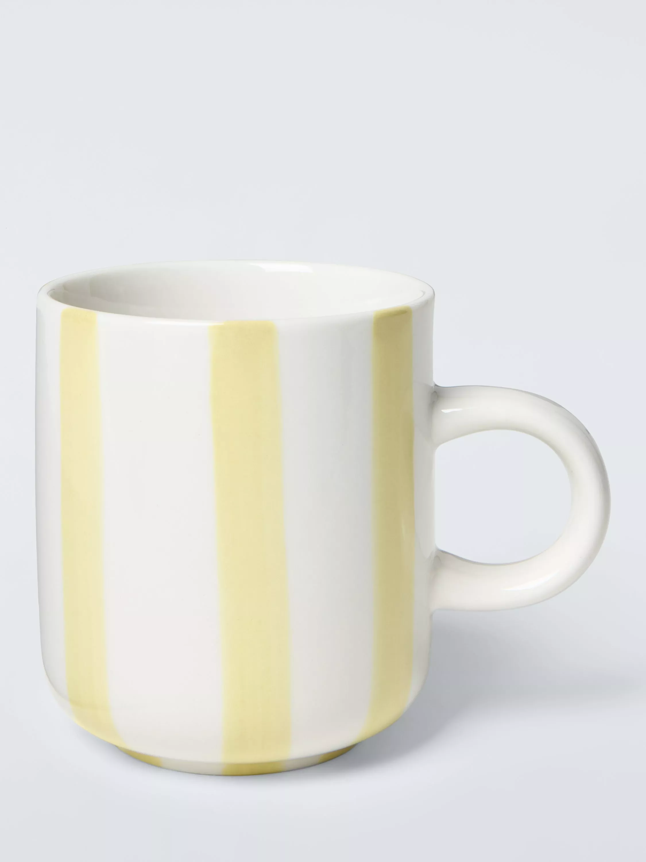 Stoneware mug with hand-painted details creating subtle variations from item to item and making each piece unique. Dishwasher and microwave safe for everyday use.