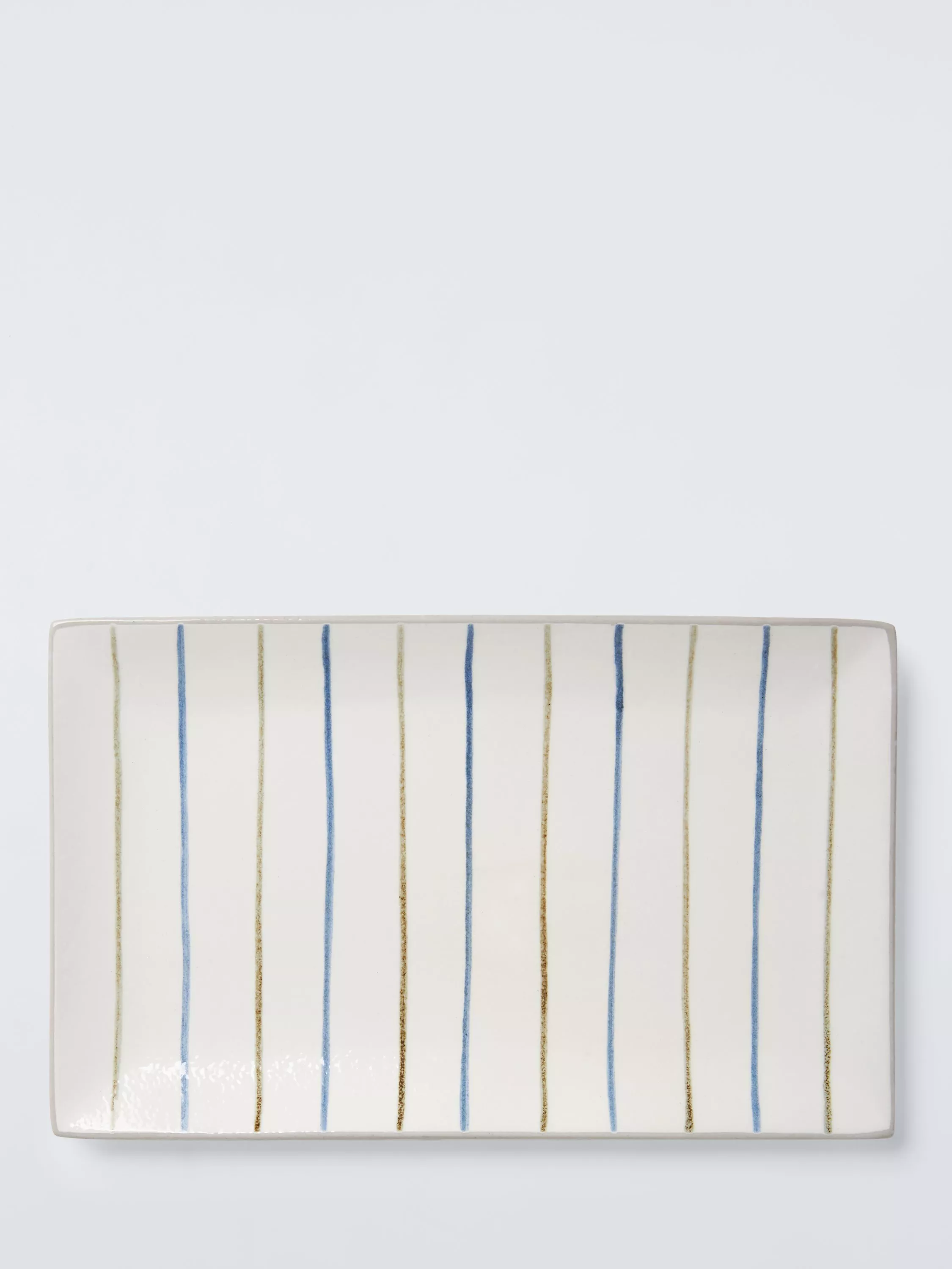 John LewisHand Painted Stripe Stoneware Platter, 23.3cm, Blue/Multi