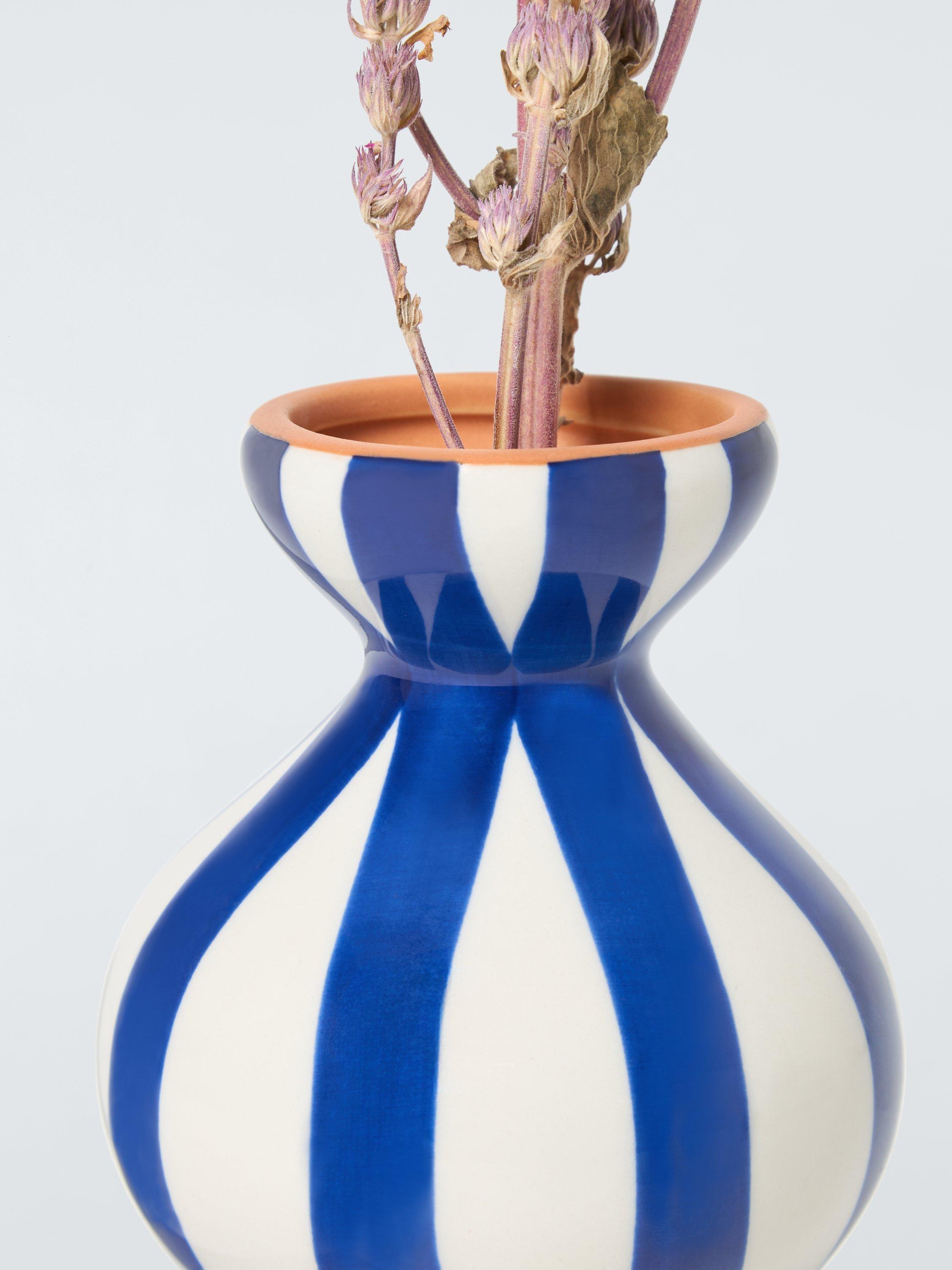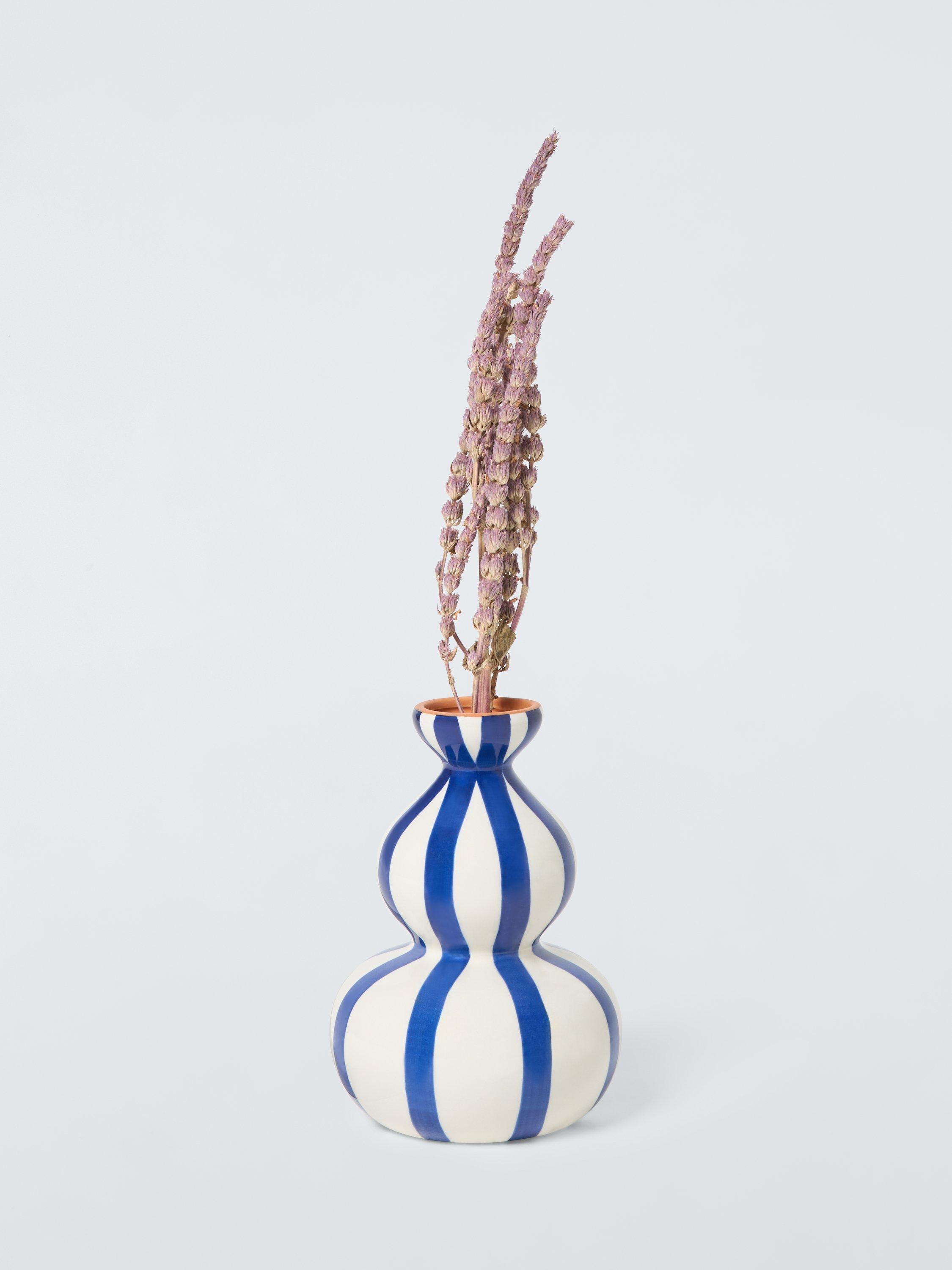 Hand-painted stripes add a unique touch to this glazed vase. Made of stoneware in a striking curved shape, it's ideal for adding pattern and form to a room.