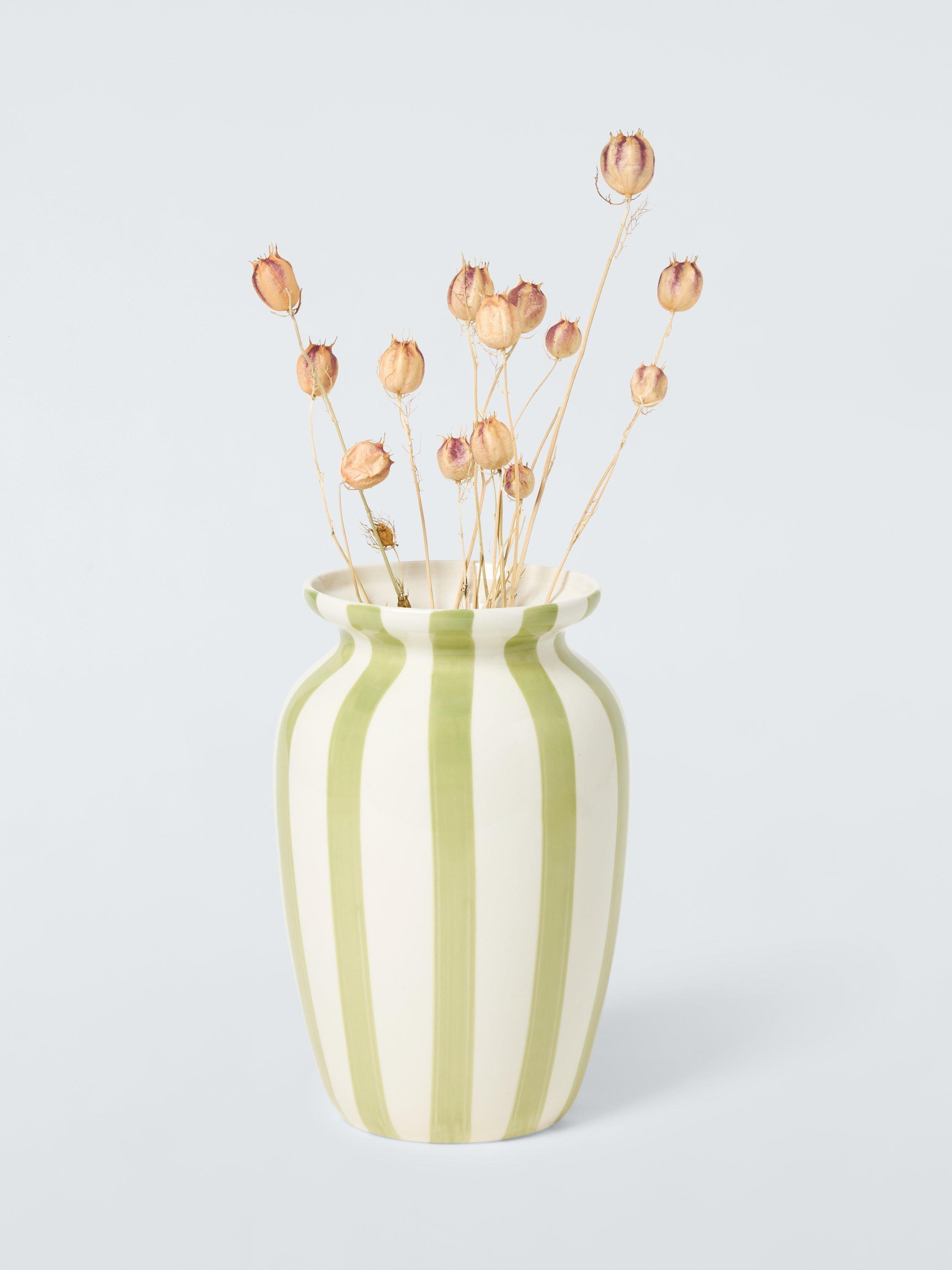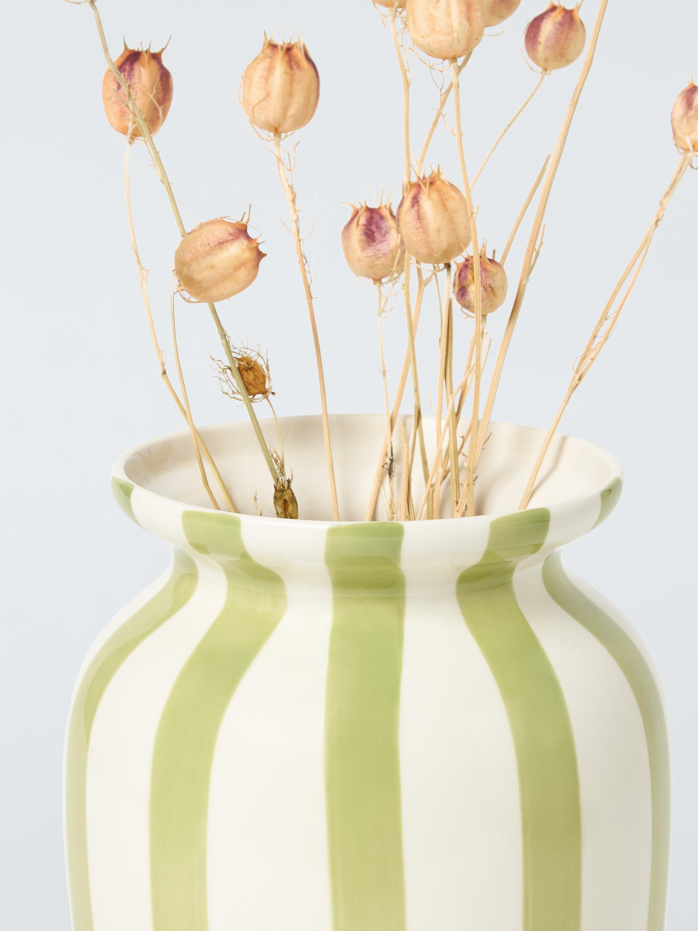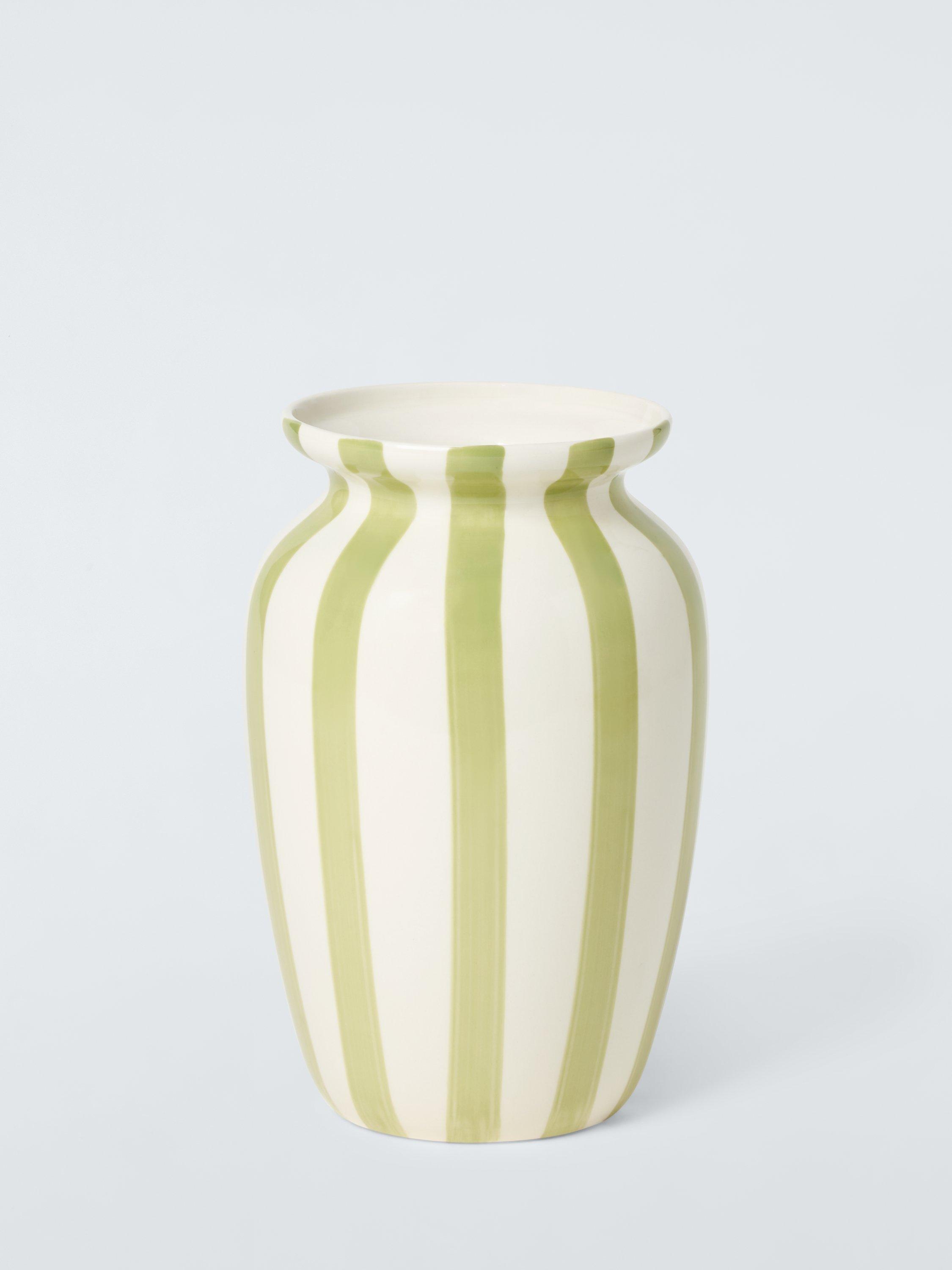 Hand-painted stripes add a unique touch to this glazed vase. Made of stoneware and ideal for adding pattern to a room.