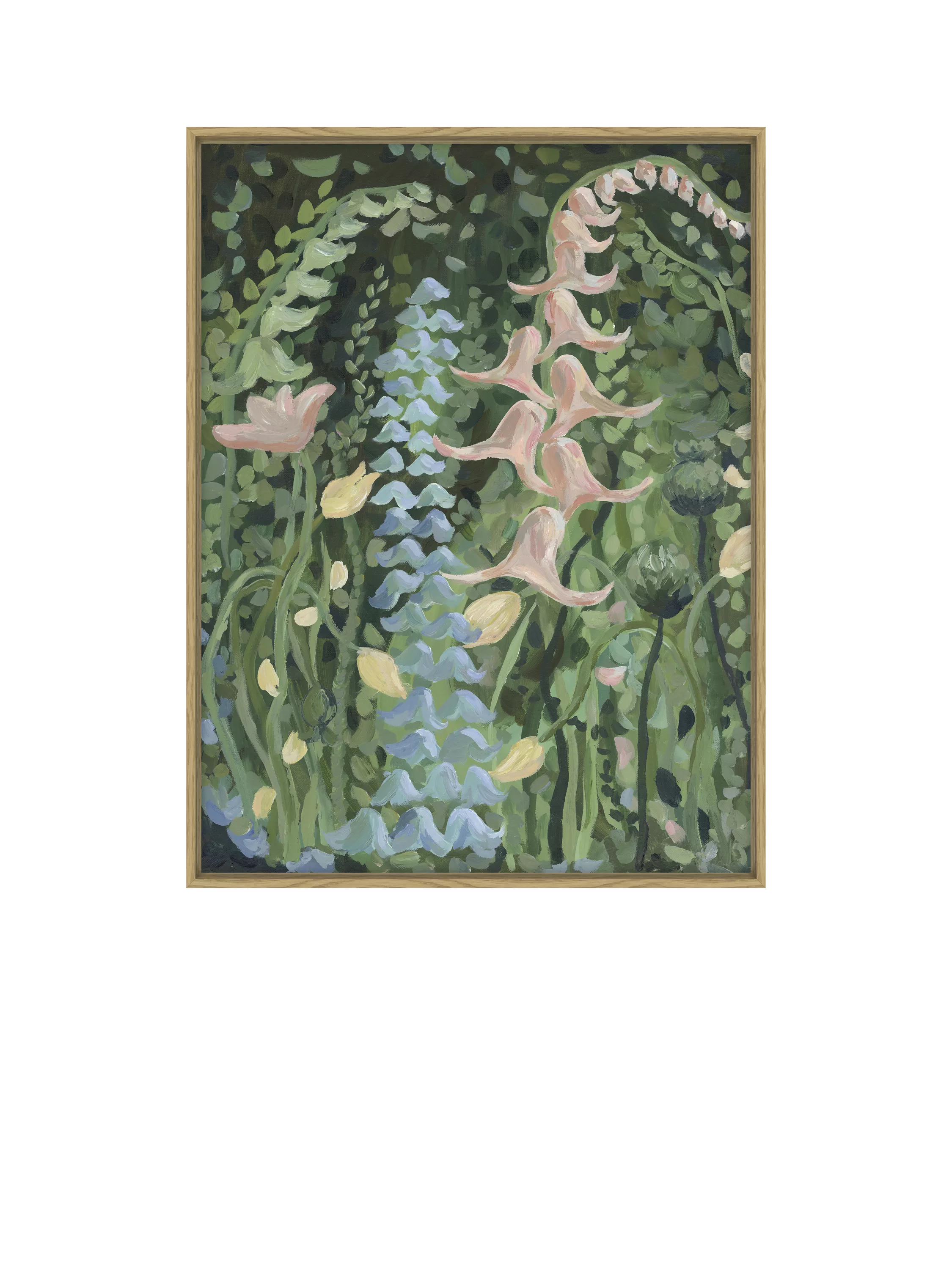 'In the Midst of Spring' framed canvas print by Harlie Briggs. Made in the UK and ready to wall hang, this stretched canvas print has an oak wood frame.