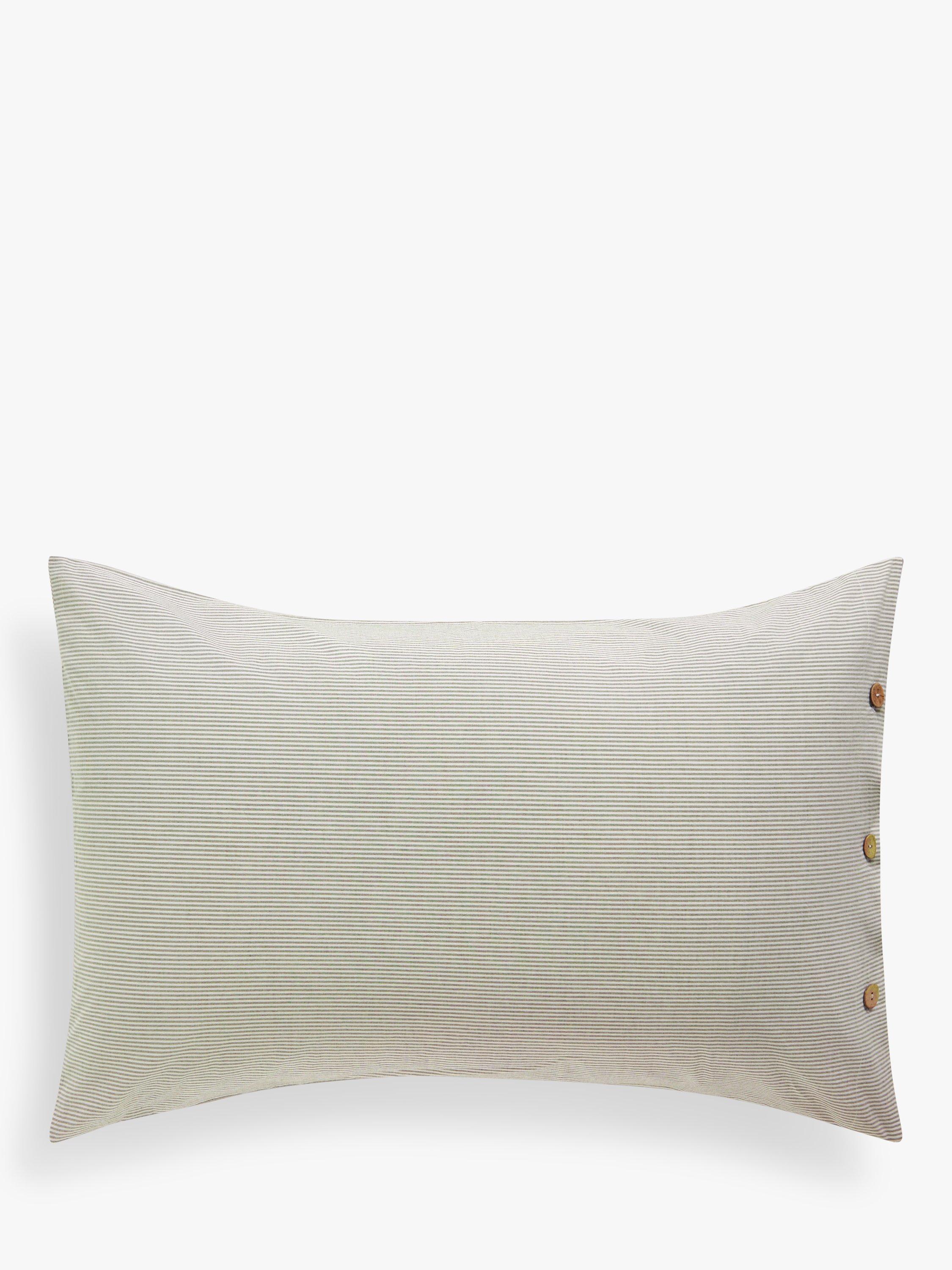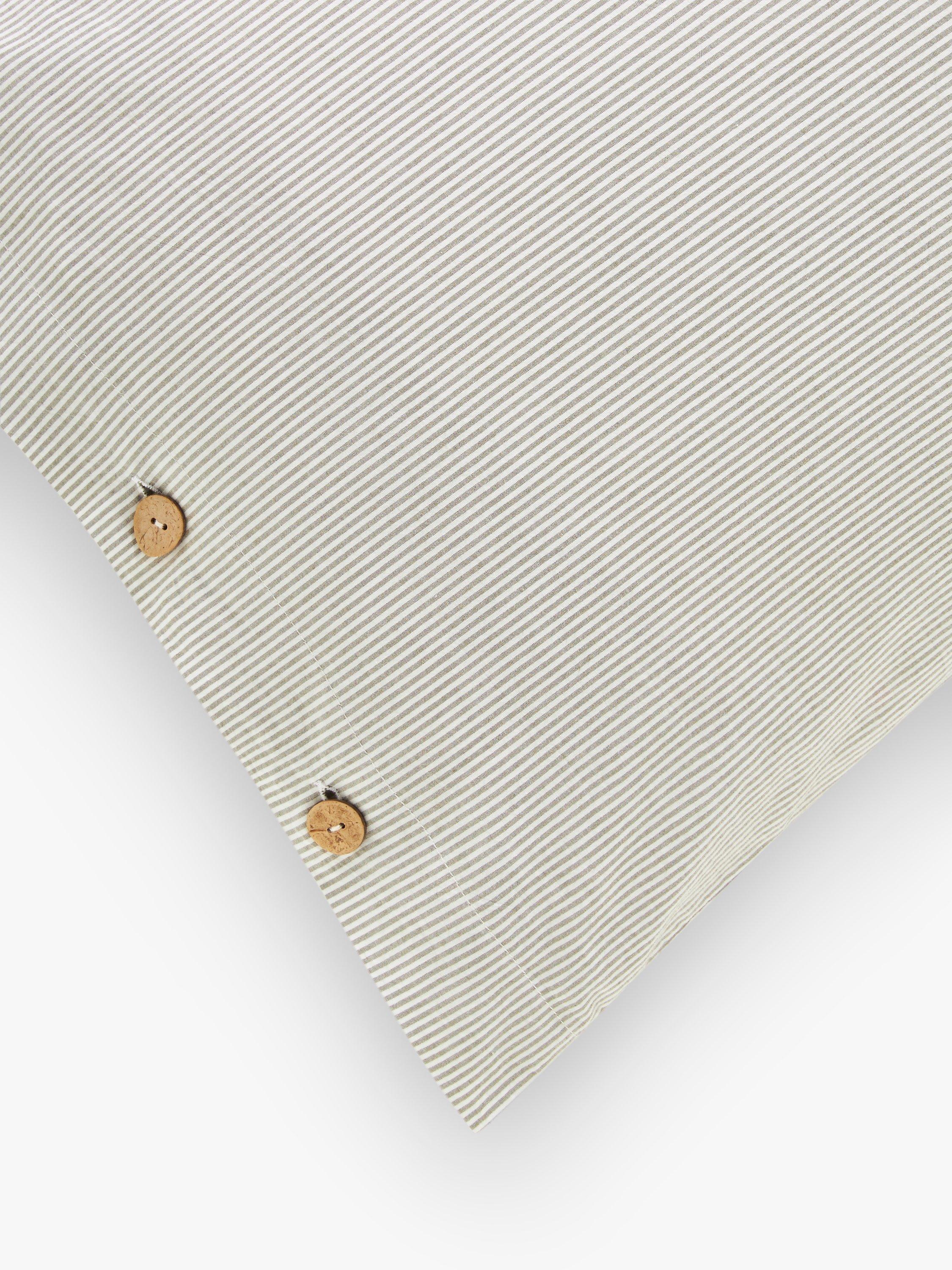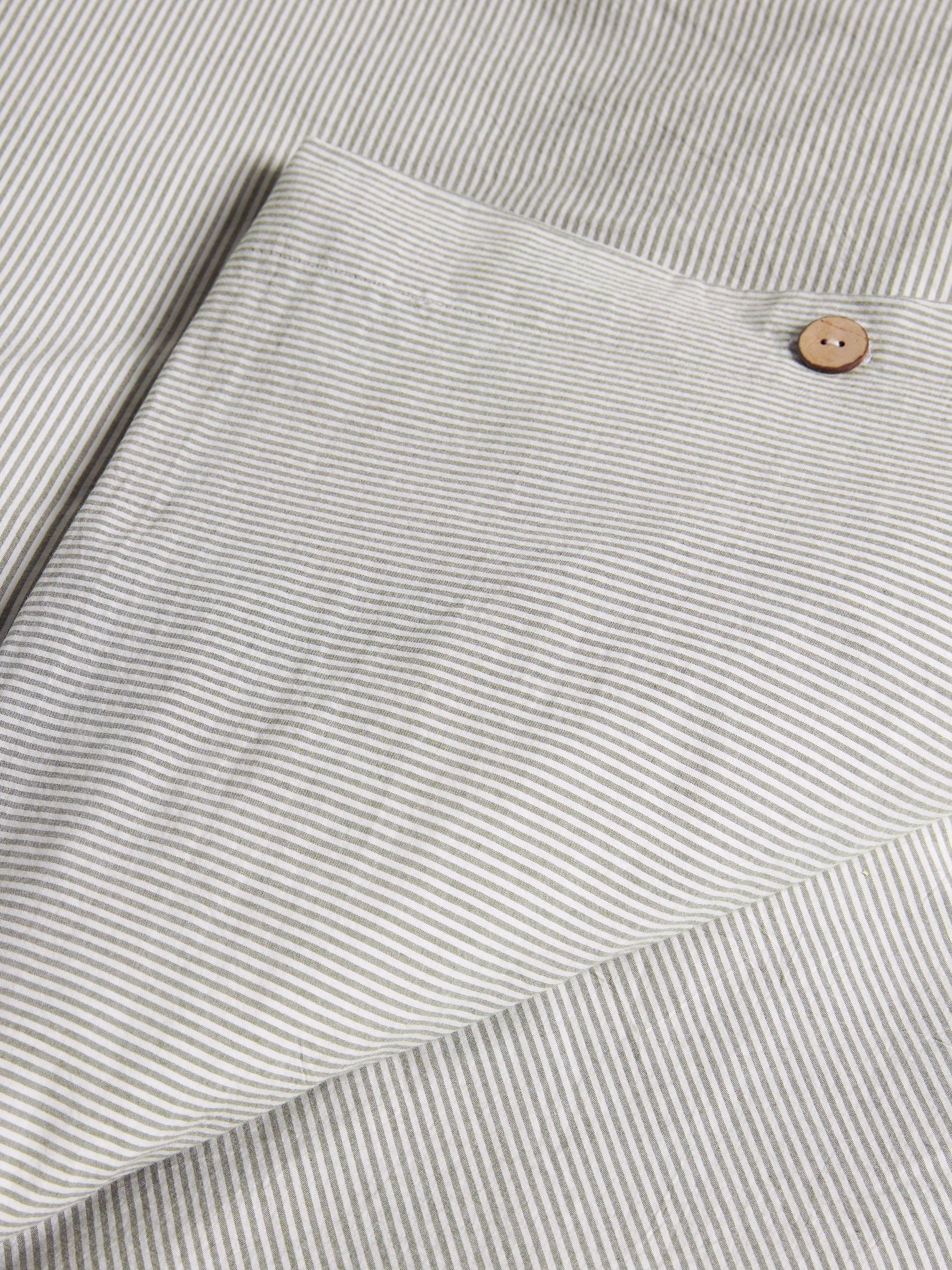 Sleep soundly in our relaxed classic stripe in a soft shade of grey. The pillowcases and duvet cover are finished with wooden buttons.