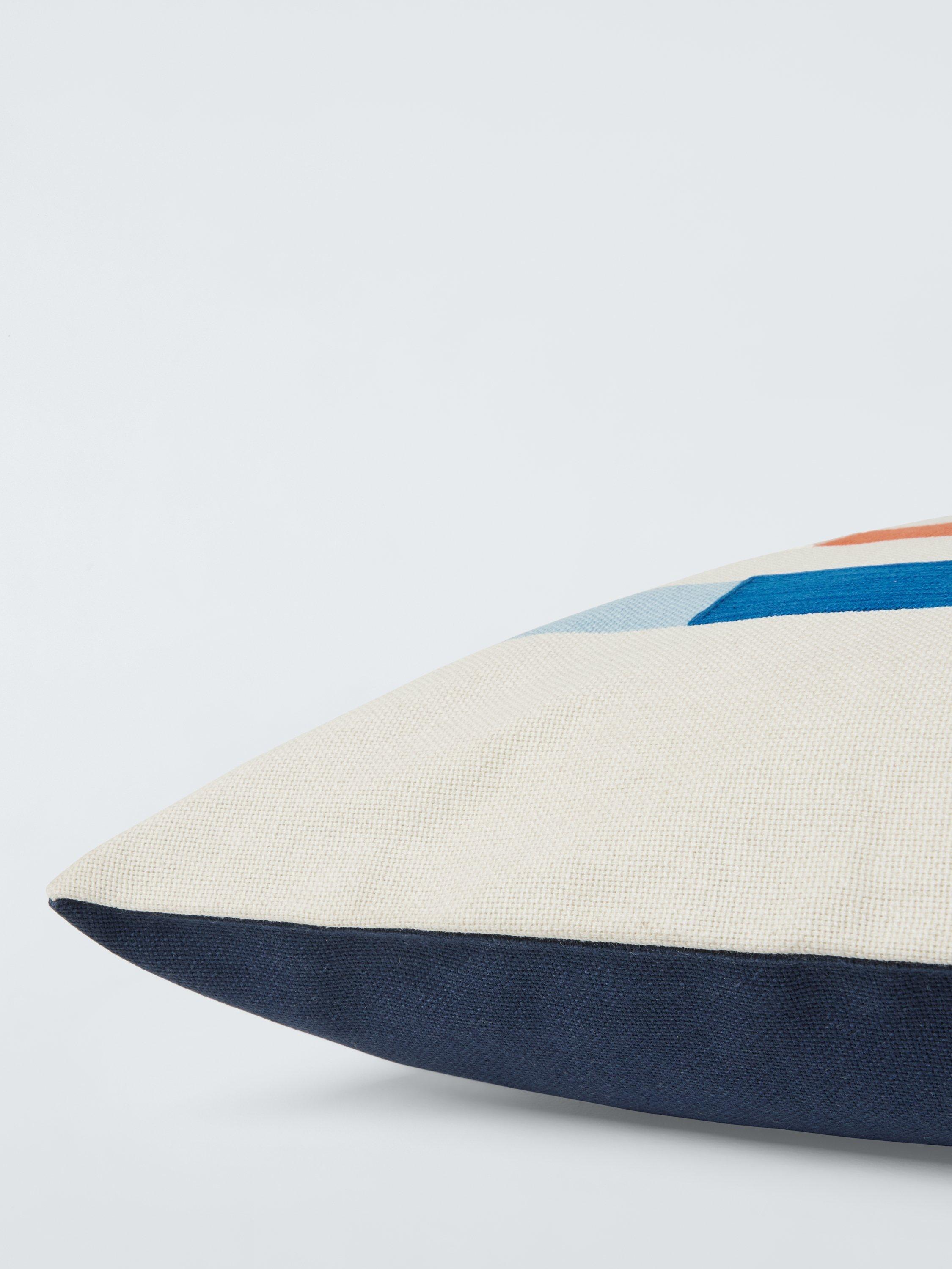 This woven cushion has a "stave" of 5 coloured bars enhanced with long stitching for added texture.