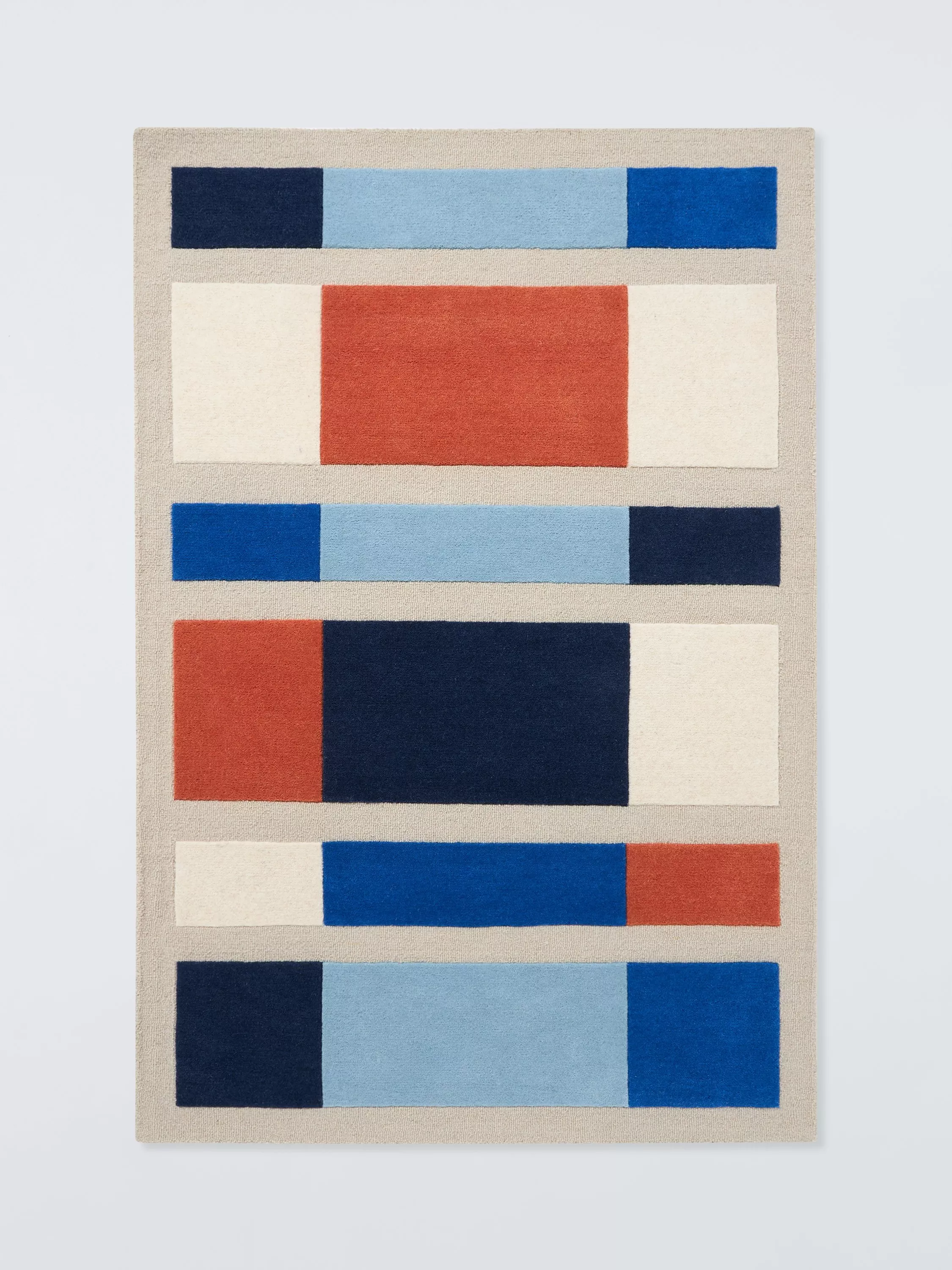 A simple yet striking nod to modern design, this rug comes in an eye-catching colour-blocking style. Indulgently made from 100% wool for the softest of textures, whipstitched edges add a feeling of structure, complementing the geometric pattern.