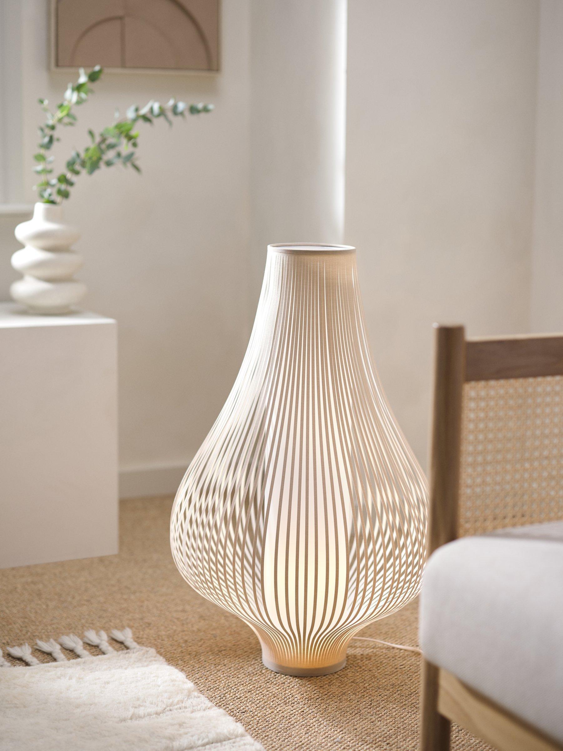 With its elegant Scandinavian design and arresting looks, this light makes an ideal addition to any living space. The lamp's linen chintz cover gives its light a soft, soothing glow, meaning it's perfect as either a feature piece or as part of a mood lighting arrangement, while its convenient size means this lamp is just as at home on a table or sideboard as it is on the floor. The lamp comes with a 2 year guarantee and requires an ES bulb with a maximum output of 20 watts.