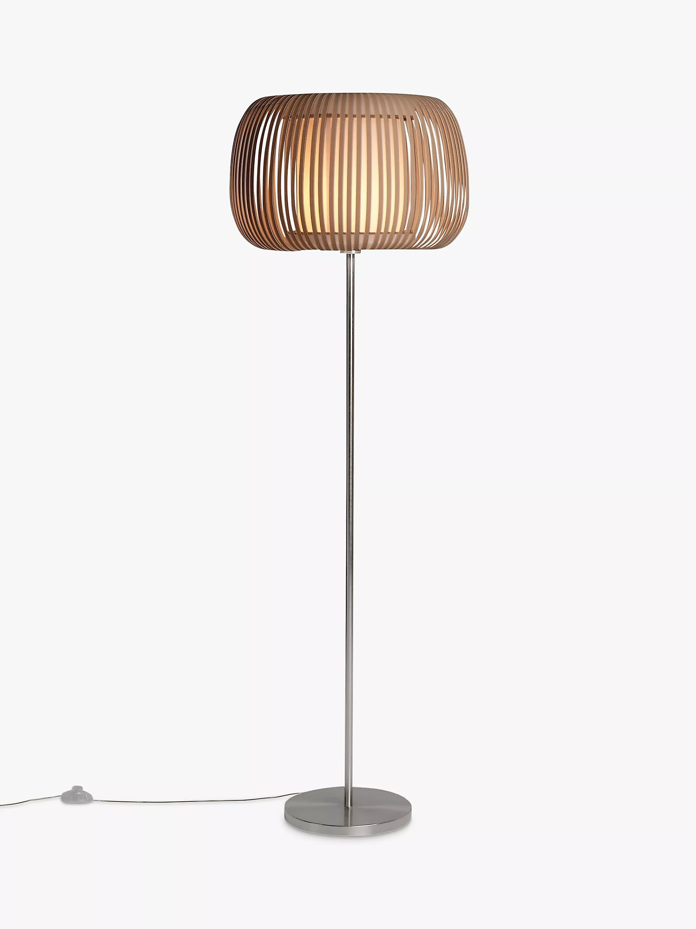 A minimalist profile with a striking ribbon shade, the Harmony floor lamp will enhance your space with a warm wash of light. Its slimline iron base is juxtaposed against the softly curved, segmented shade that showcases a glowing light in the centre. Place it in your living spaces and coordinate your home lighting with other pieces from our Harmony range.