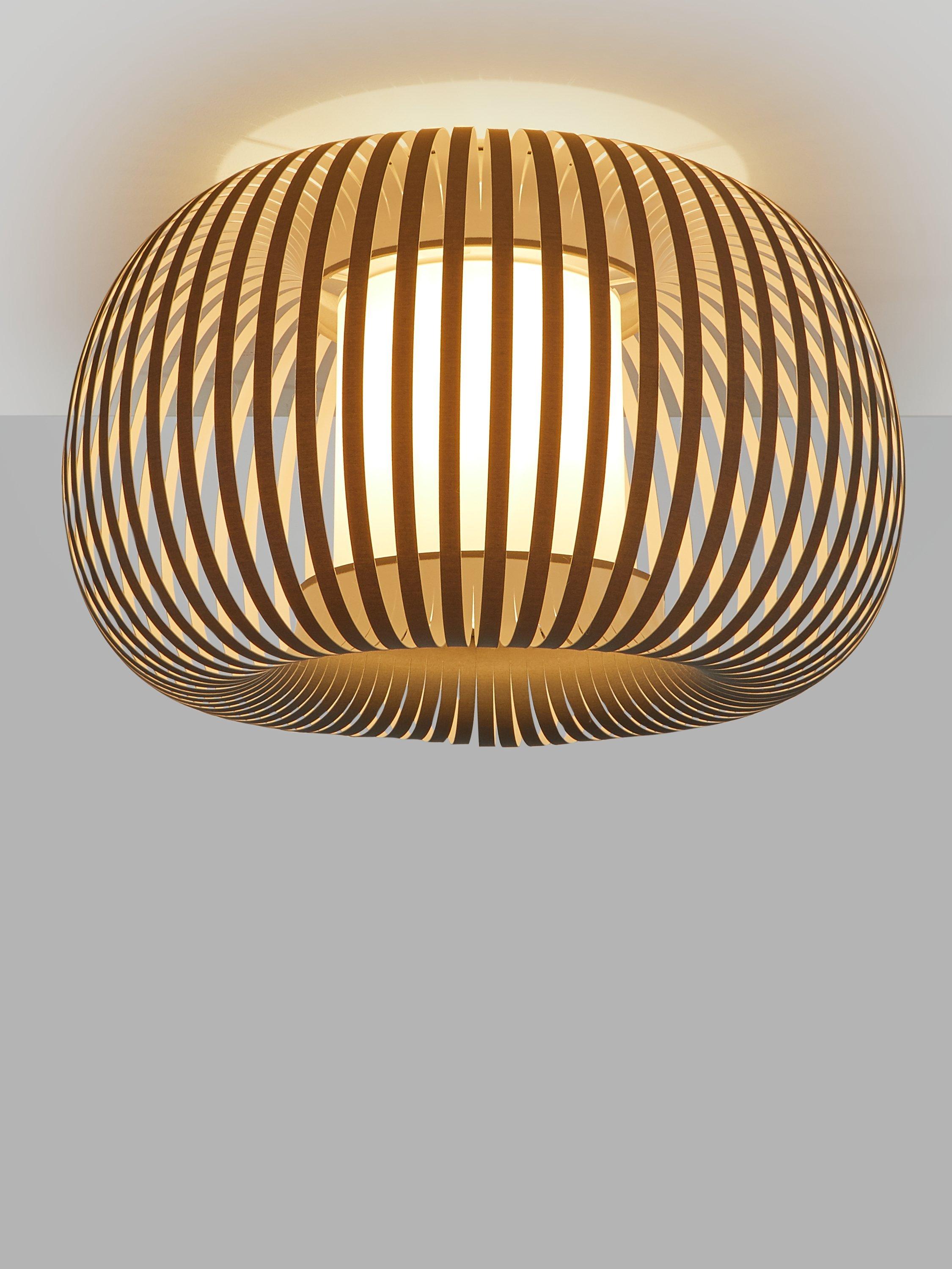 Its softly shaped and lightweight profile boasts a ribbon-style segmented shade that allows a warm light to glow from the centre. This light is suitable to match with other Harmony elements, as table lamps or pendants.