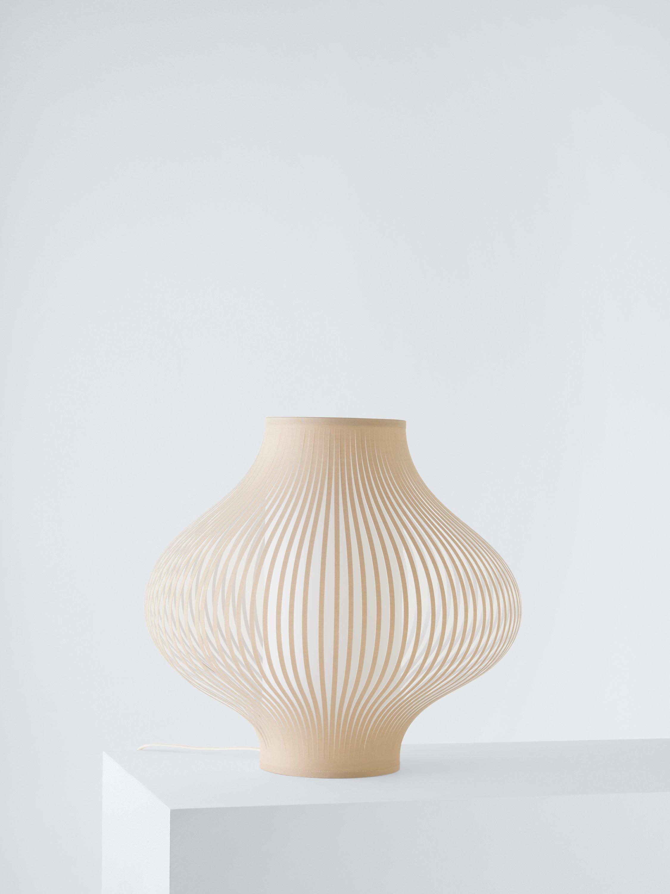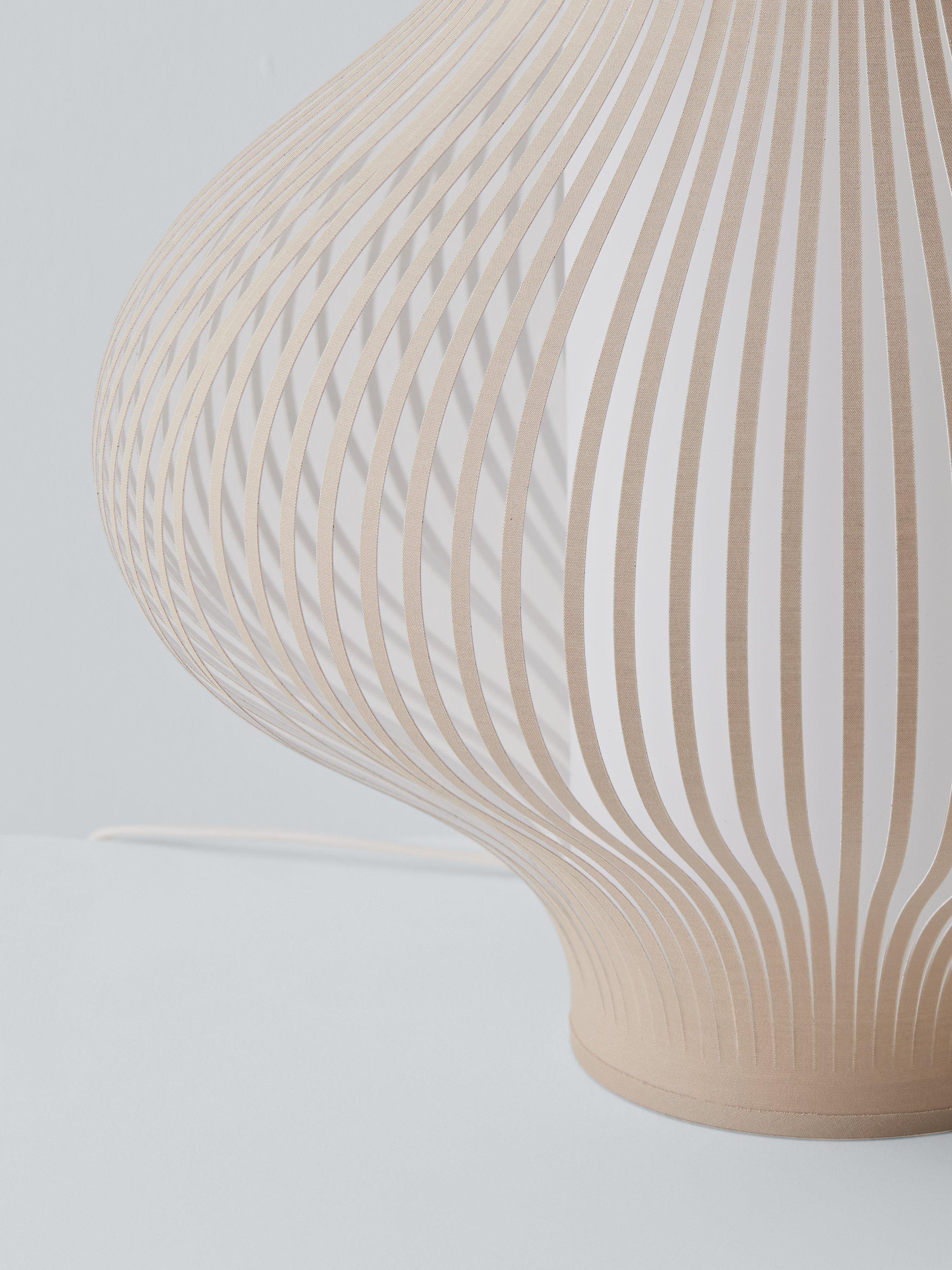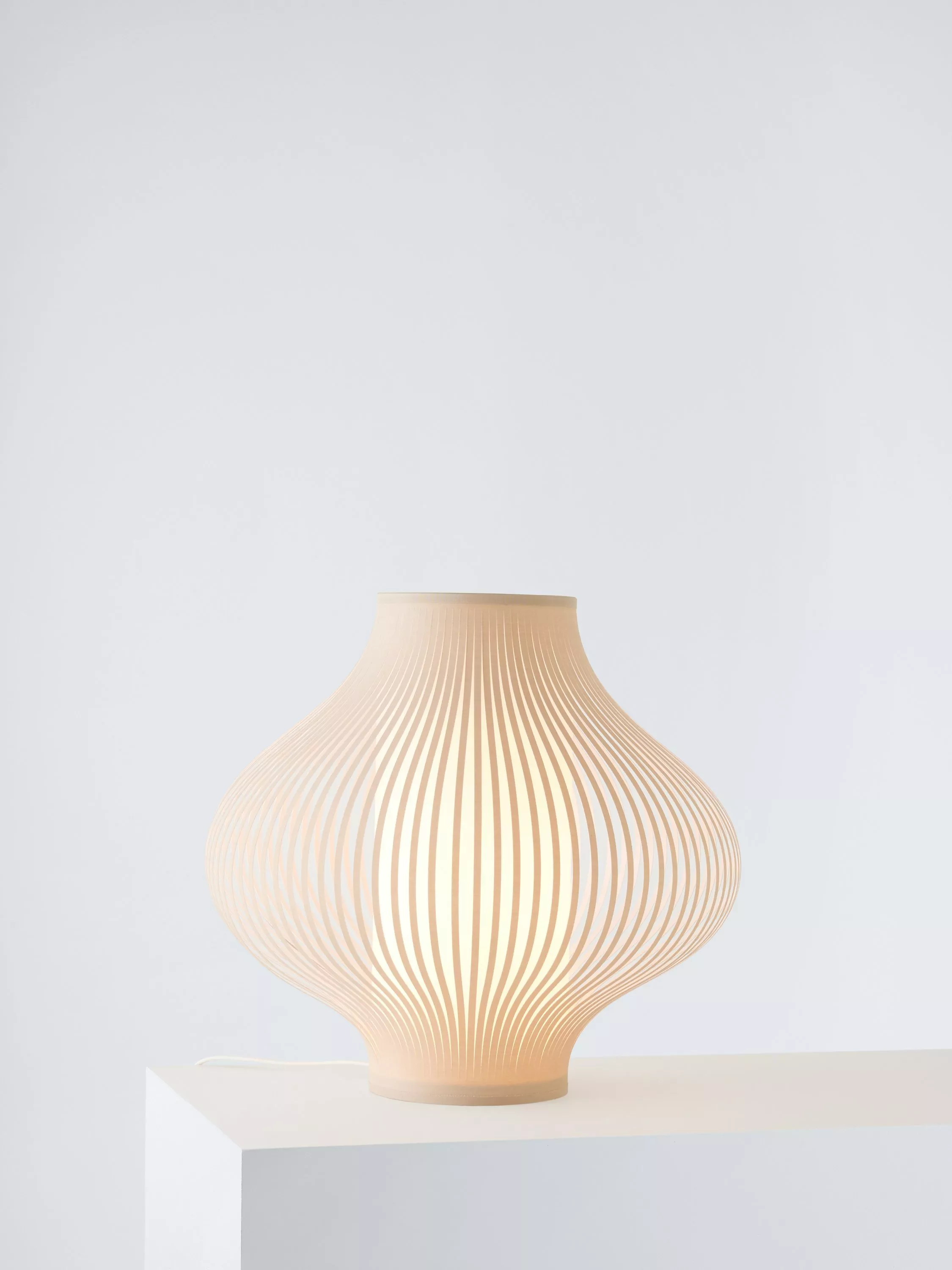 Crafted into a curvy silhouette, our Harmony Ribbon Small table lamp will complement any home decor. Its unique, lightweight look features a ribbon design that surrounds the glowing central light source. Impressive on table tops when switched on or off, it reflects light beautifully to enhance your settings.