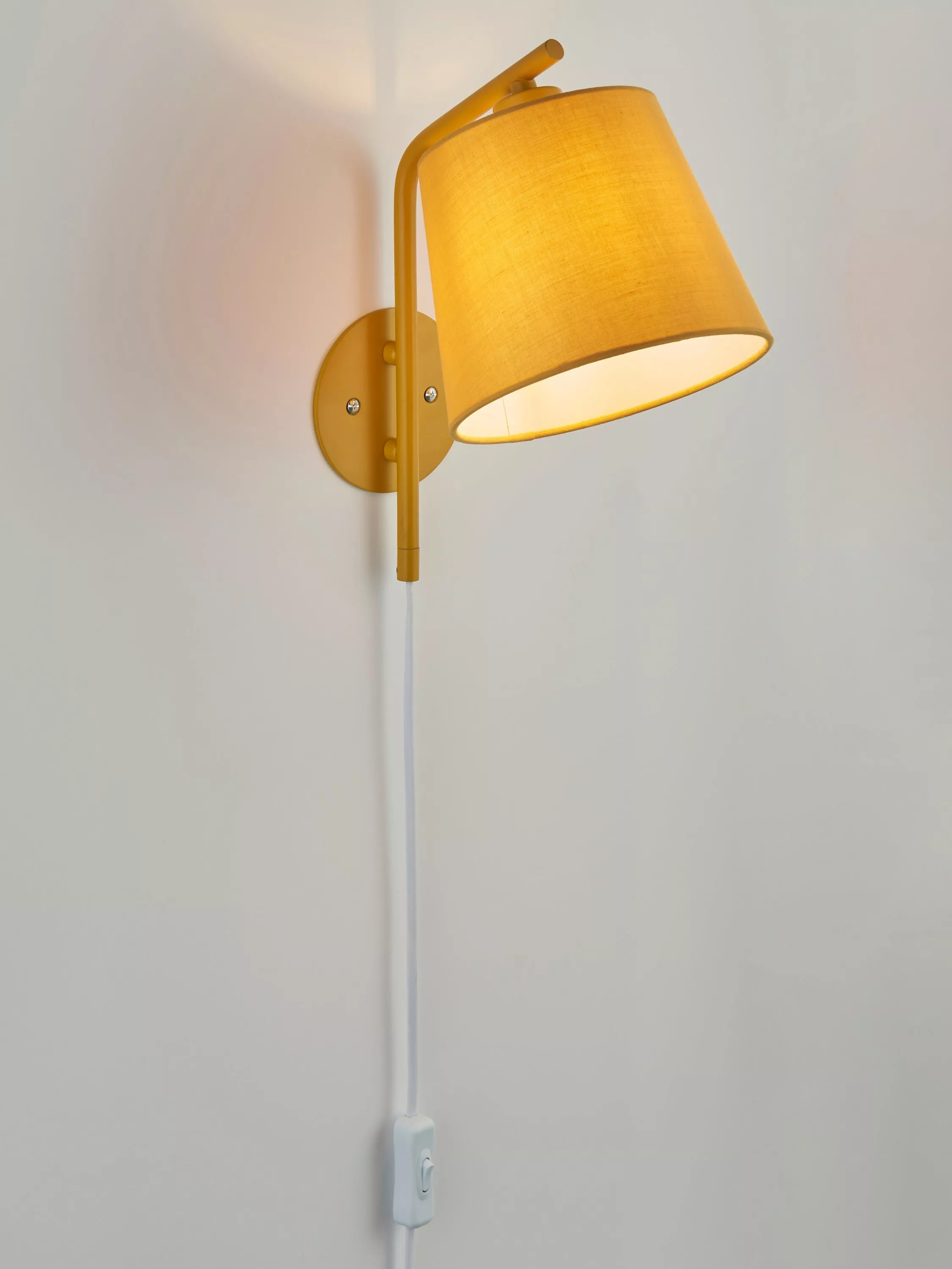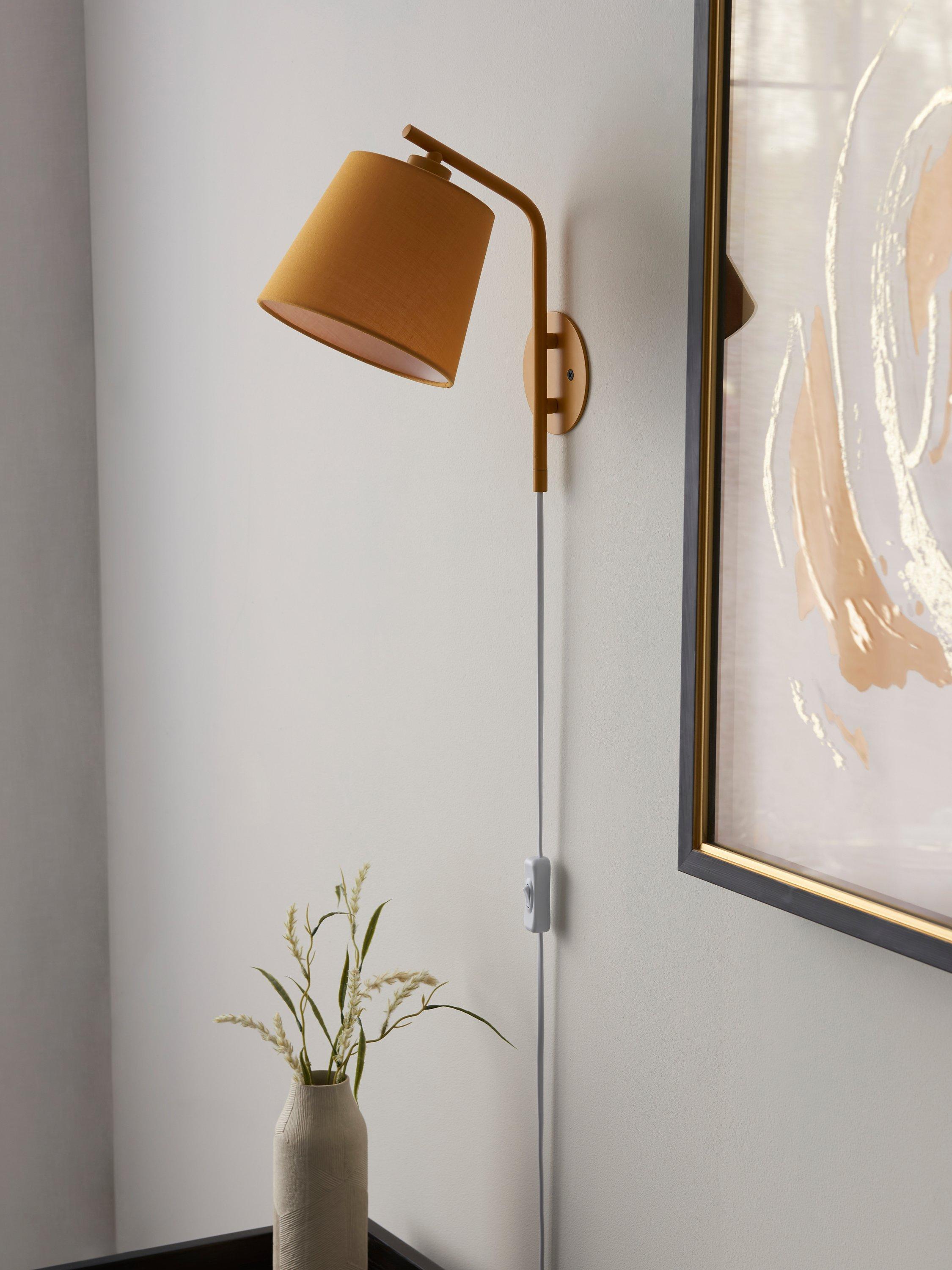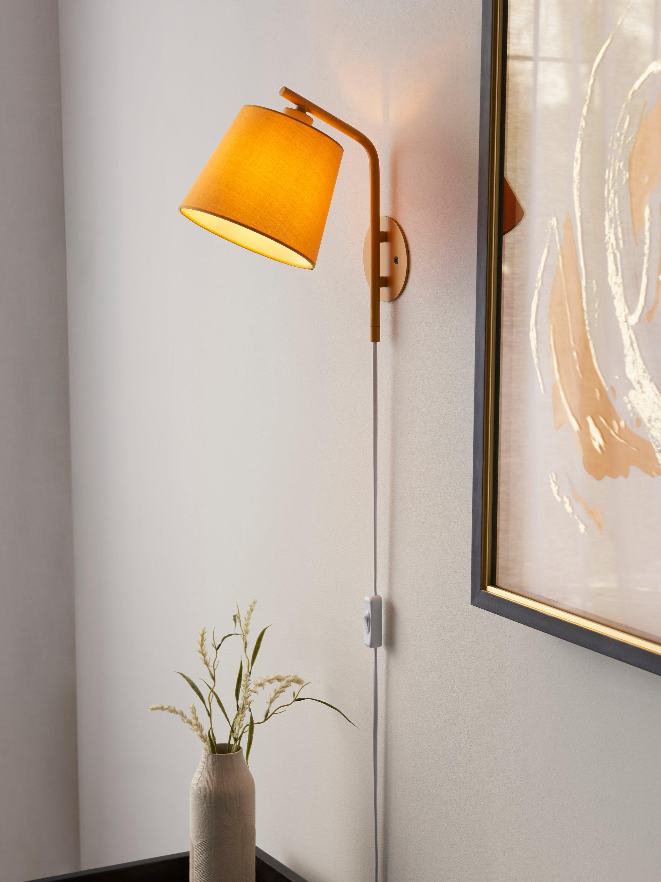 Simply plug this wall light into the wall if you need extra light in your space. We've made our popular Harry light with a cable and integrated on/off switch, so it doesn't need wiring up. The fabric lampshade softens the light and complements the painted wall plate. It's a handy and adaptable style that's great for your home office, beside your bed or even in a cosy reading corner.