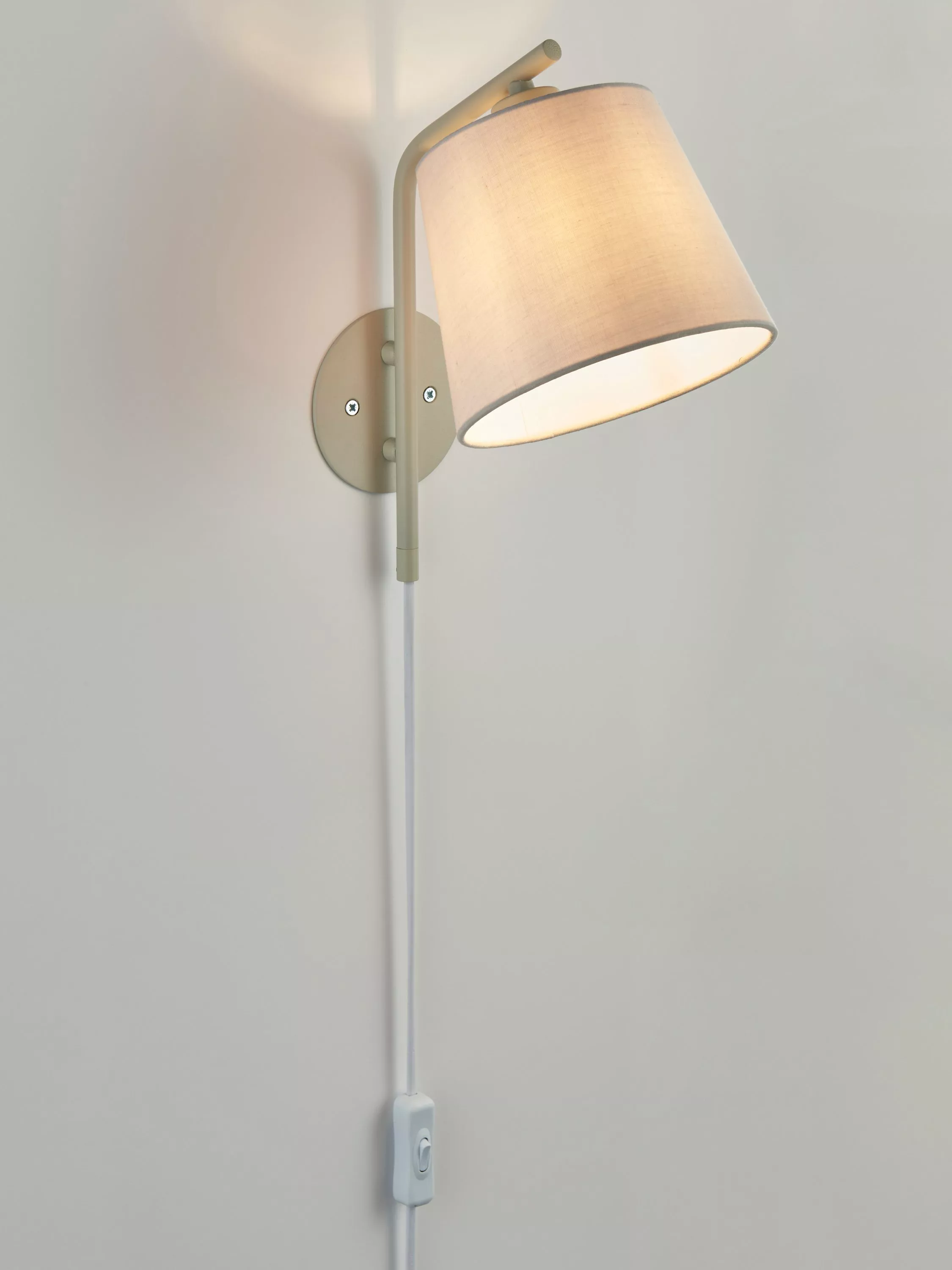 Simply plug this wall light into the wall if you need extra light in your space. We've made our popular Harry light with a cable and integrated on/off switch, so it doesn't need wiring up. The fabric lampshade softens the light and complements the painted wall plate. It's a handy and adaptable style that's great for your home office, beside your bed or even in a cosy reading corner.