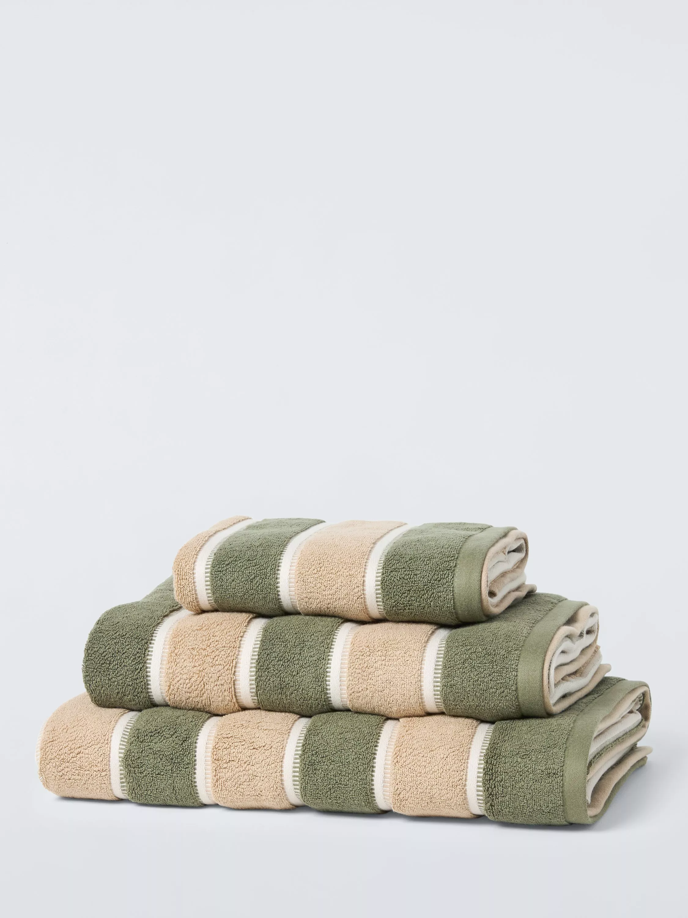 John LewisHarvest Block Stripe Towels, Avocado/Camel