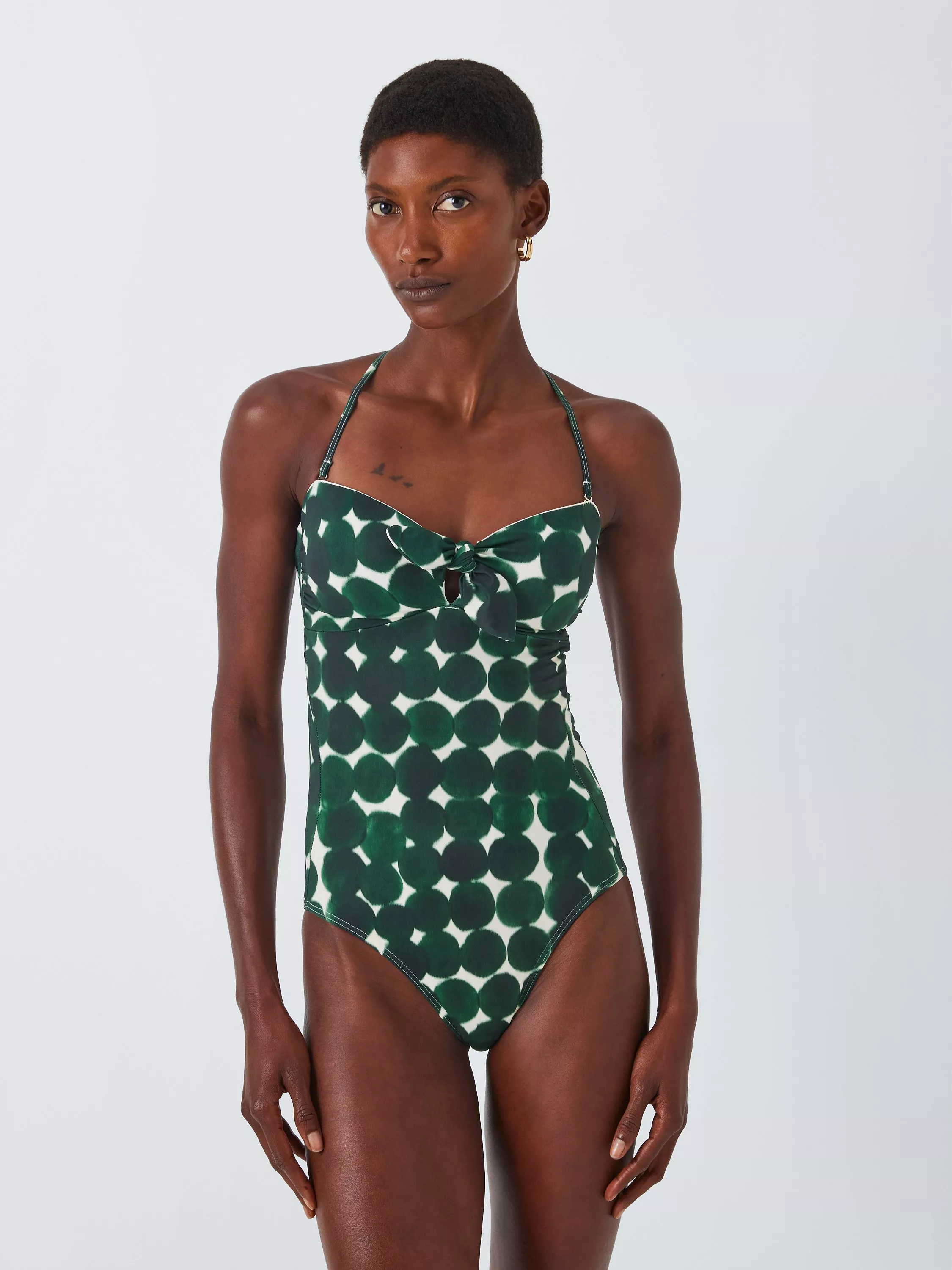 John LewisHaze Spot Halterneck Knot Swimsuit, Green