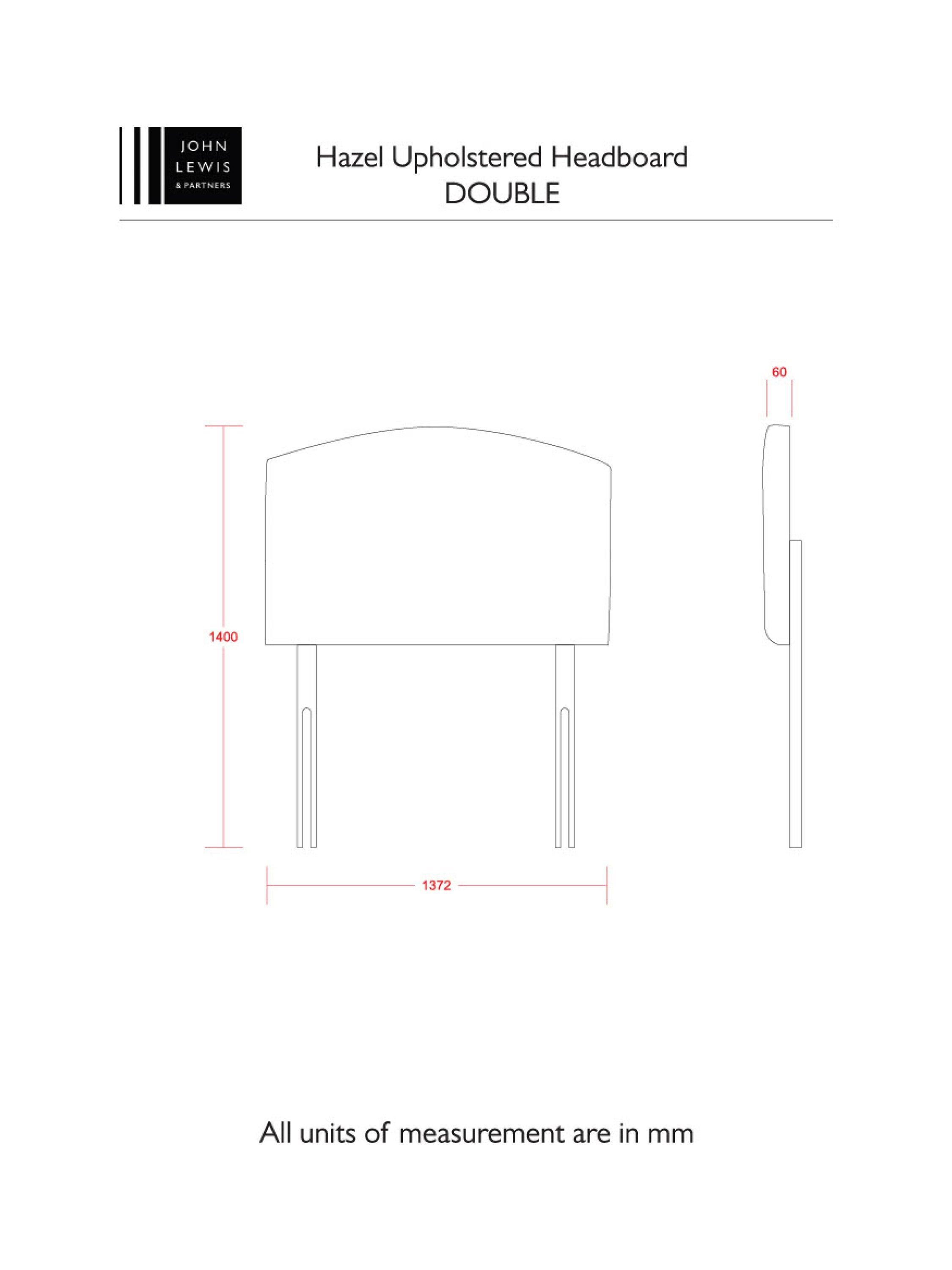 John LewisHazel Upholstered Headboard, Double, Brushedweave Silver