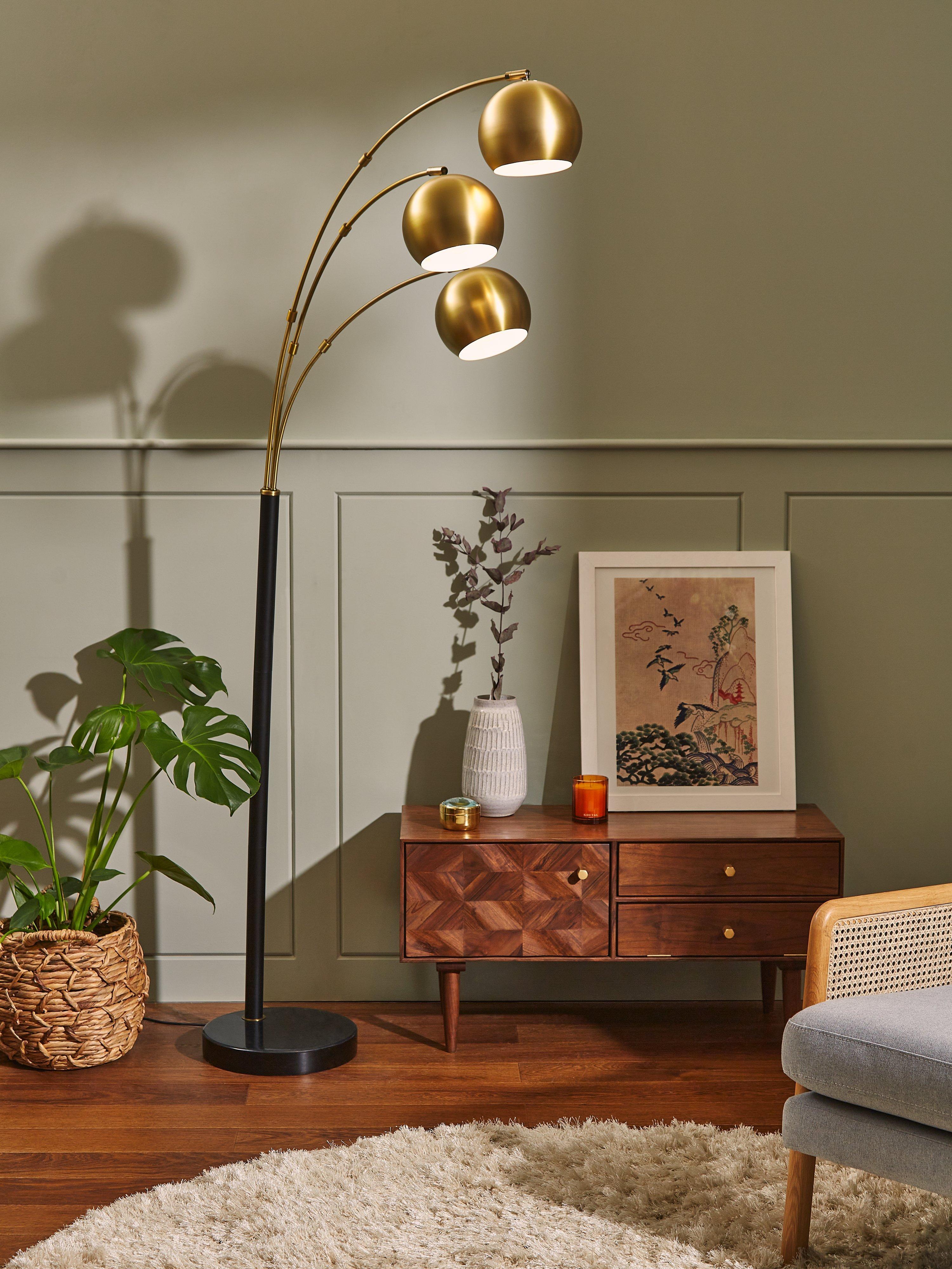 Designed to provide maximum lighting while taking up minimum space in your room, we've designed this Hector floor lamp with three arms. The solid marble base is sleek and compact, easy to place alongside your sofa or armchair, while the dome-shaped shades suspended from each arm can be adjusted in multiple directions to cast light exactly where you need it. It's a functional and eye-catching choice for overhead lighting.