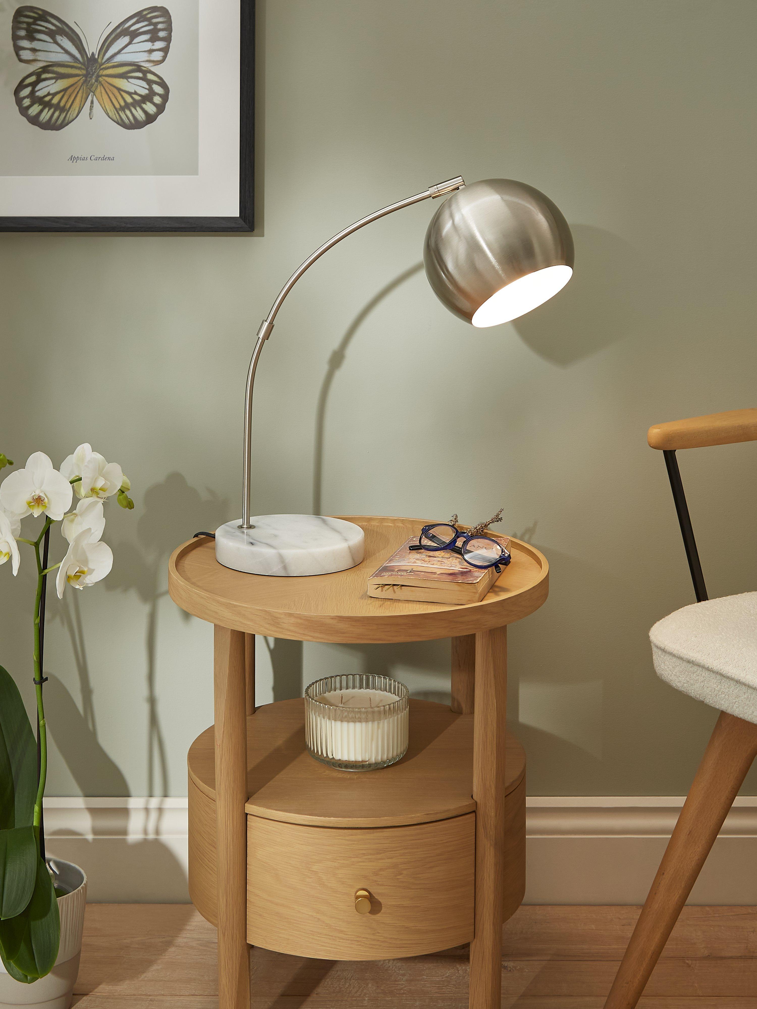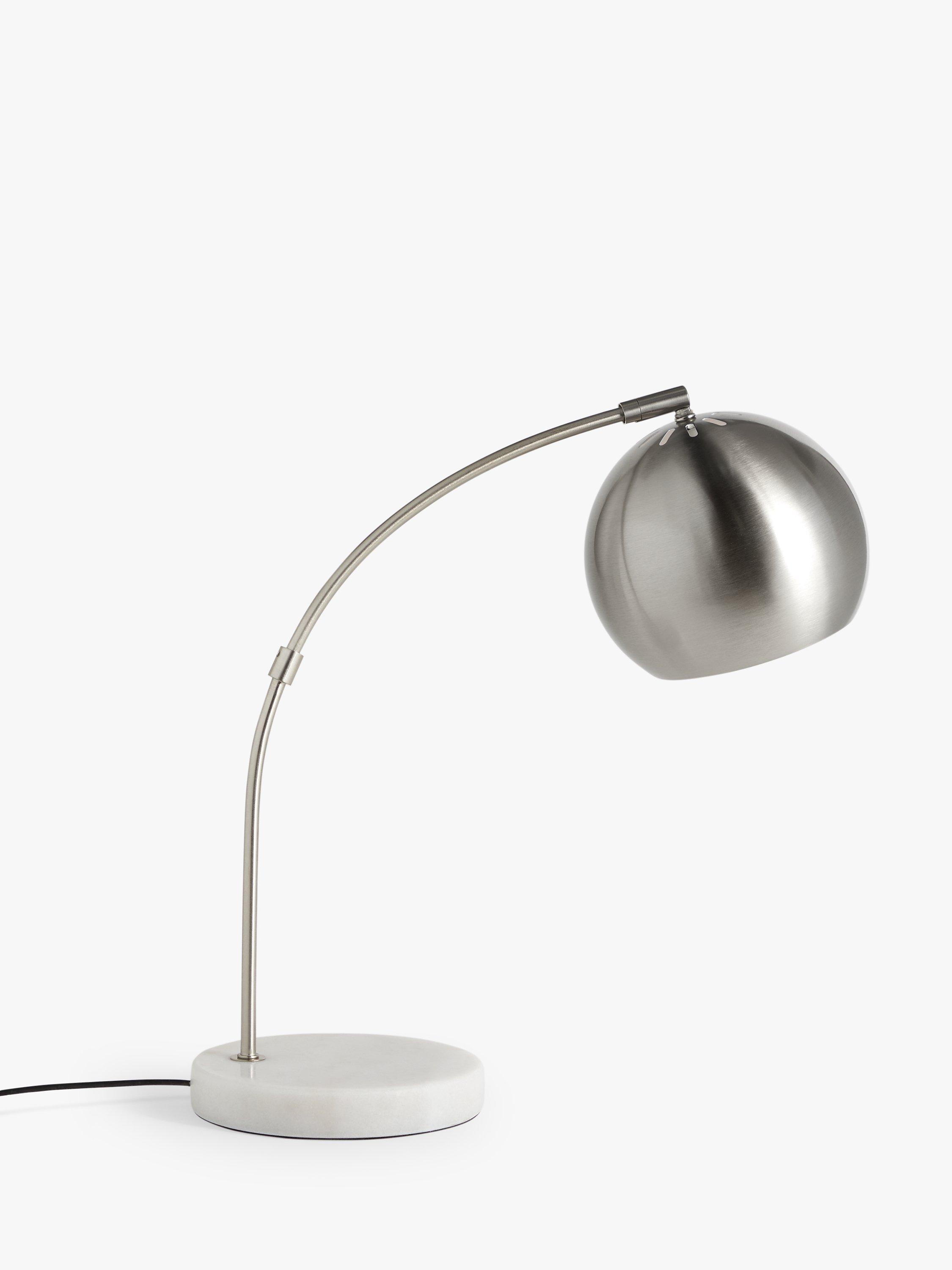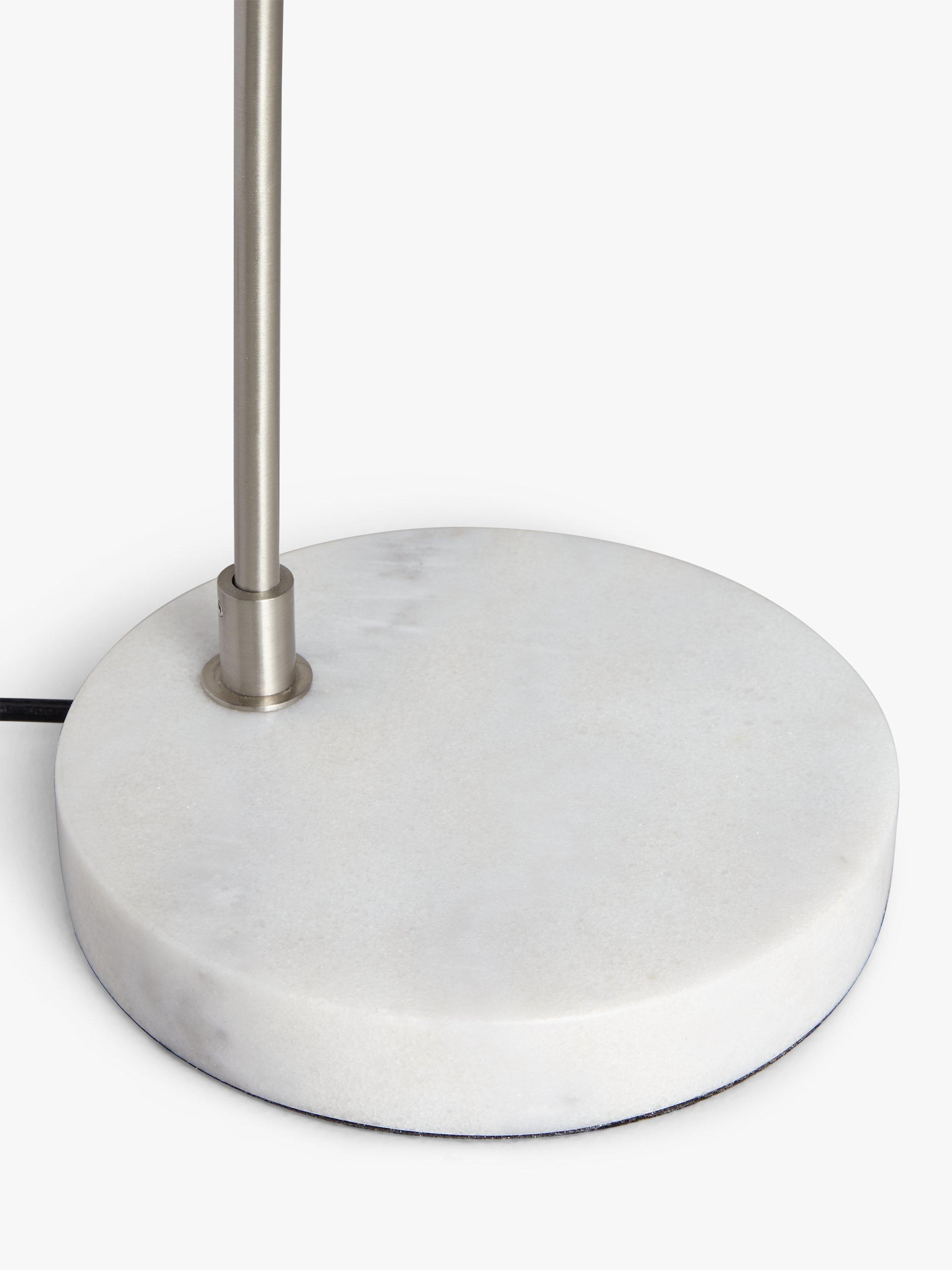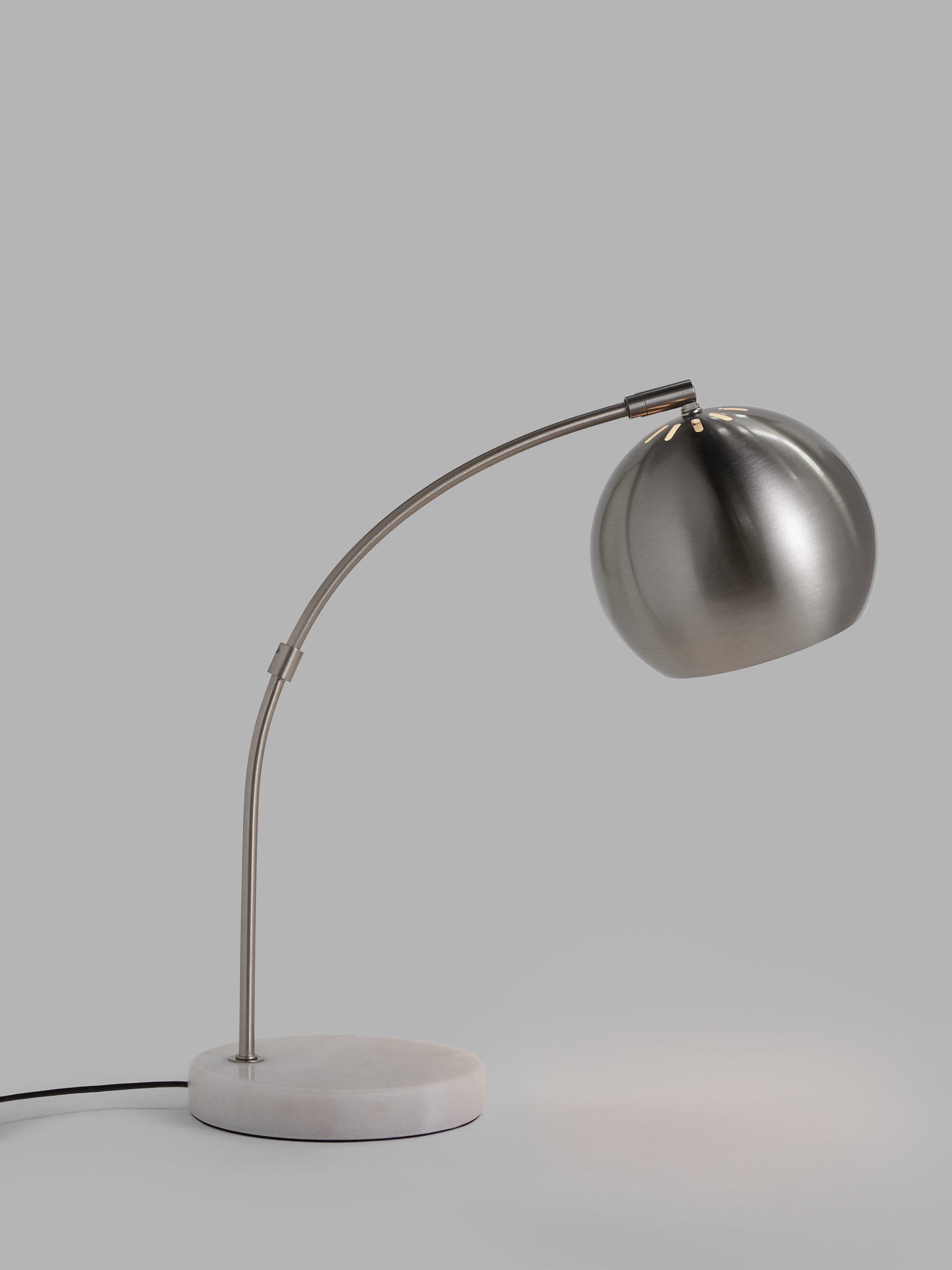 A sleek and space-saving addition to your work station or bedside table, our Hector table lamp provides a focused wash of light. The base is made from solid marble and the brushed or satin finish of the metal arm enhances its modern look. The dome-shaped shade can be adjusted in multiple directions, casting light exactly where you need it.