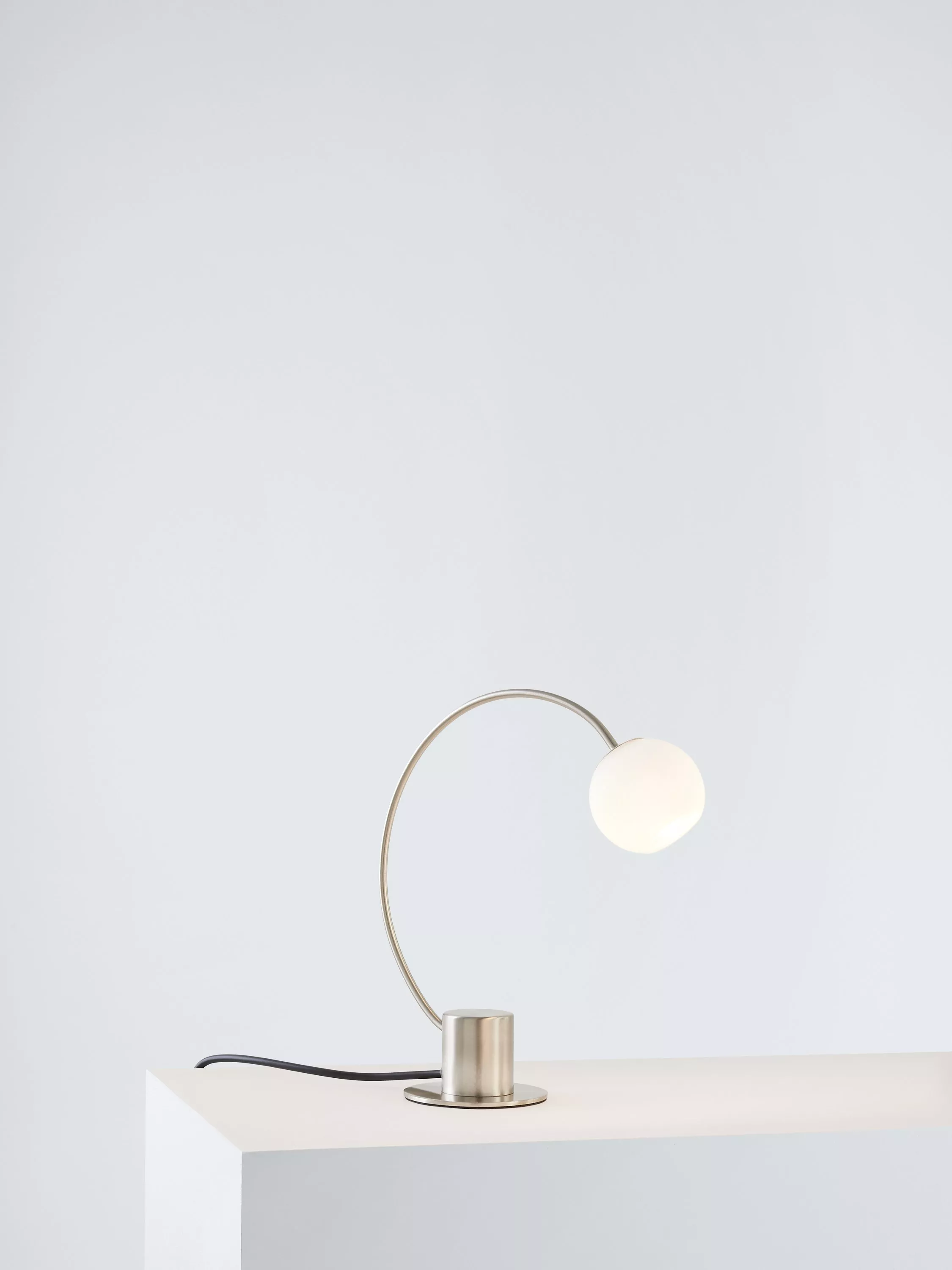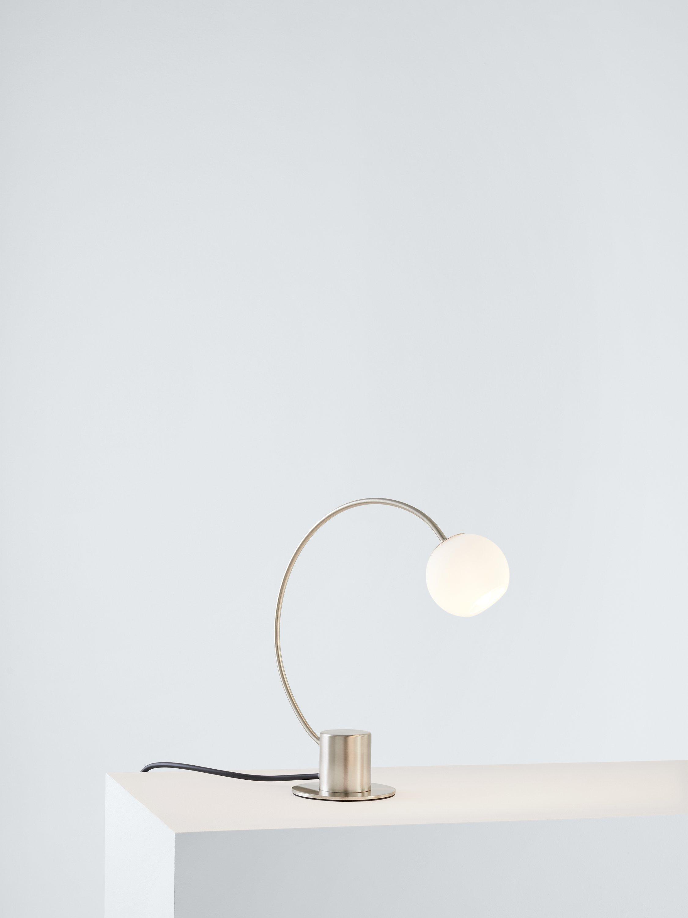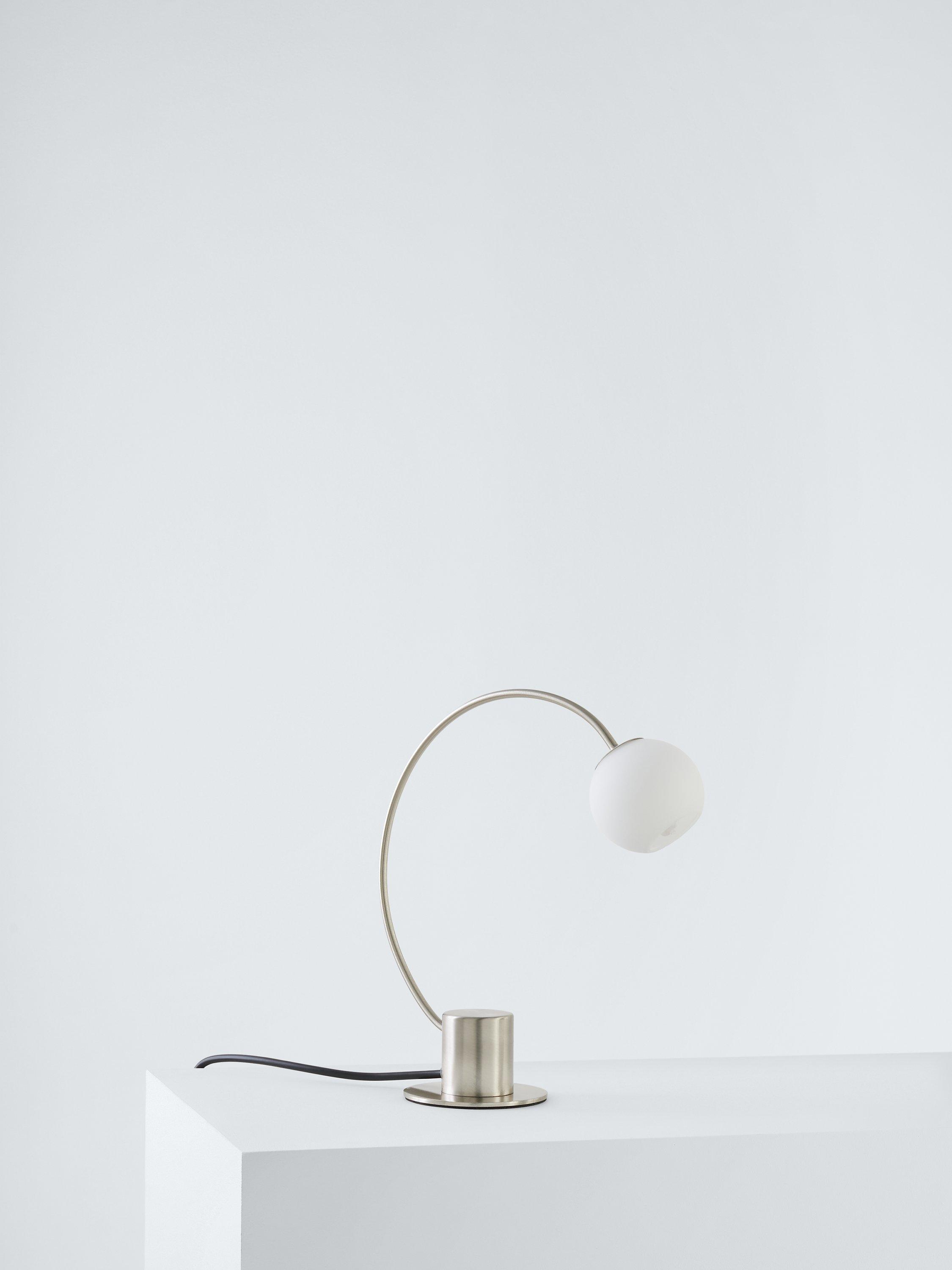 Made with a compact metal base and opal glass shade, this minimalist table lamp is a space-saving option for work desks or bedside tables. It provides a warm and effective glow of light.