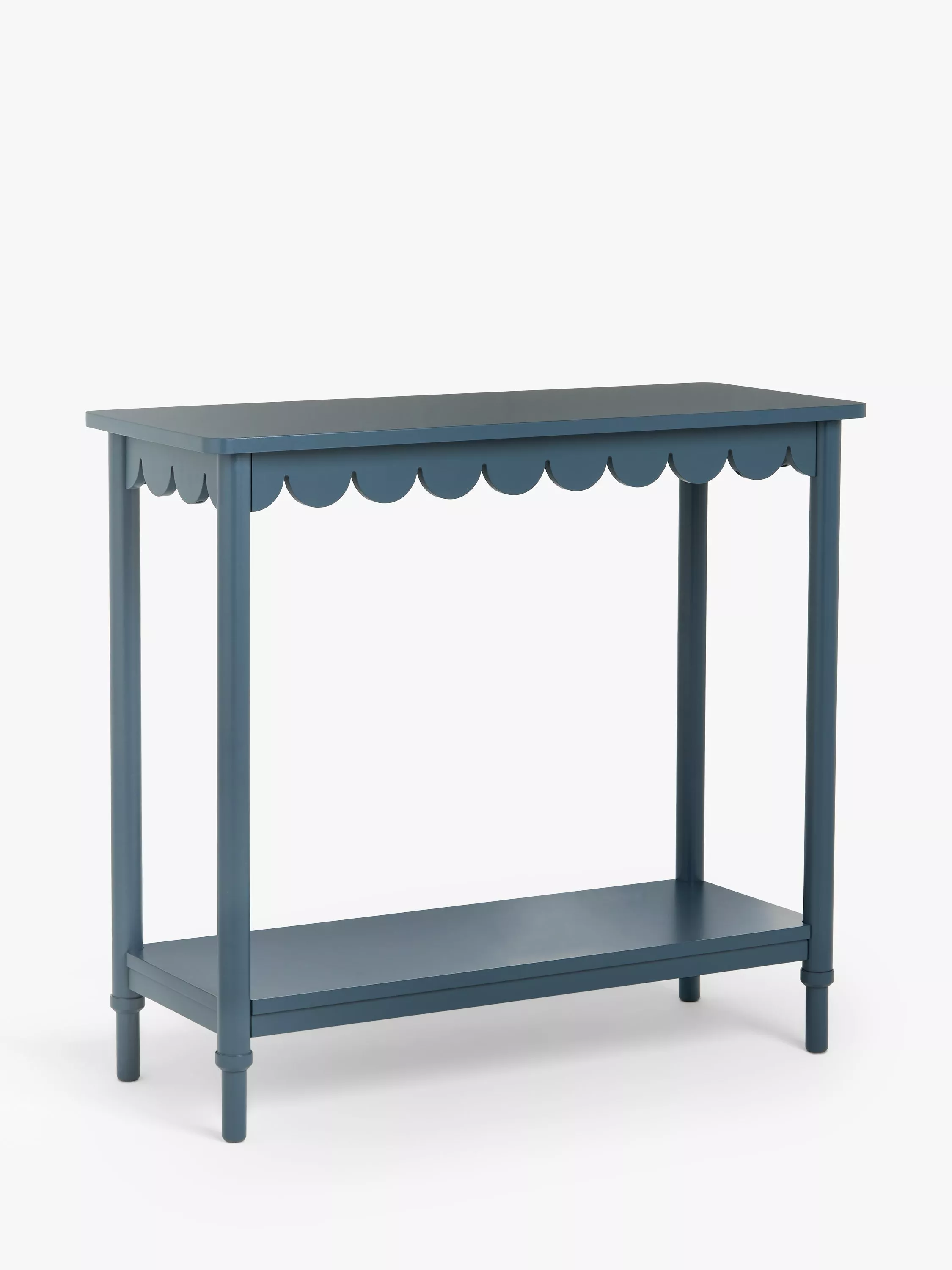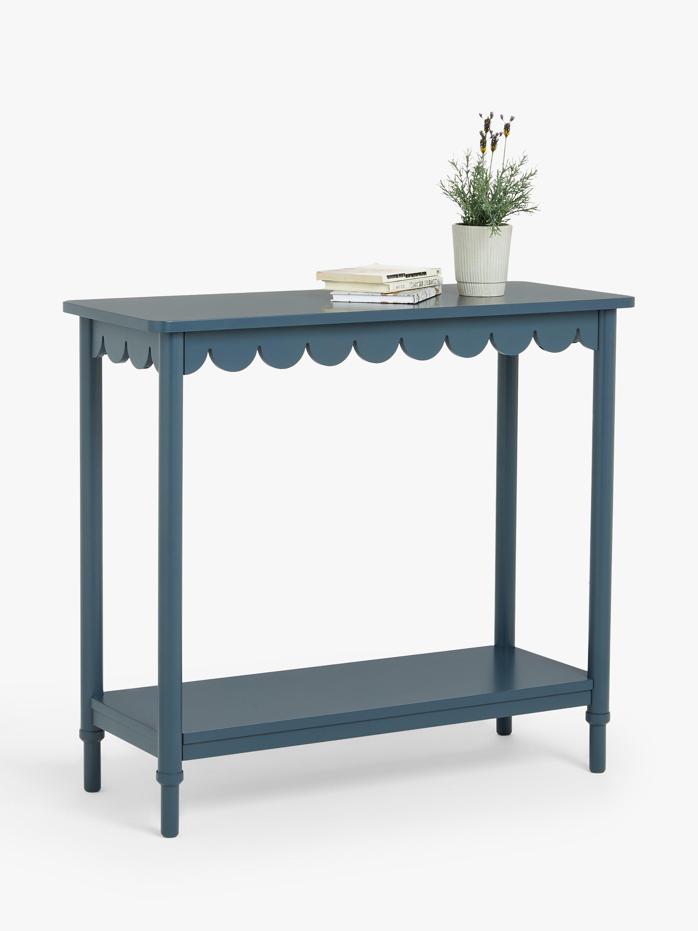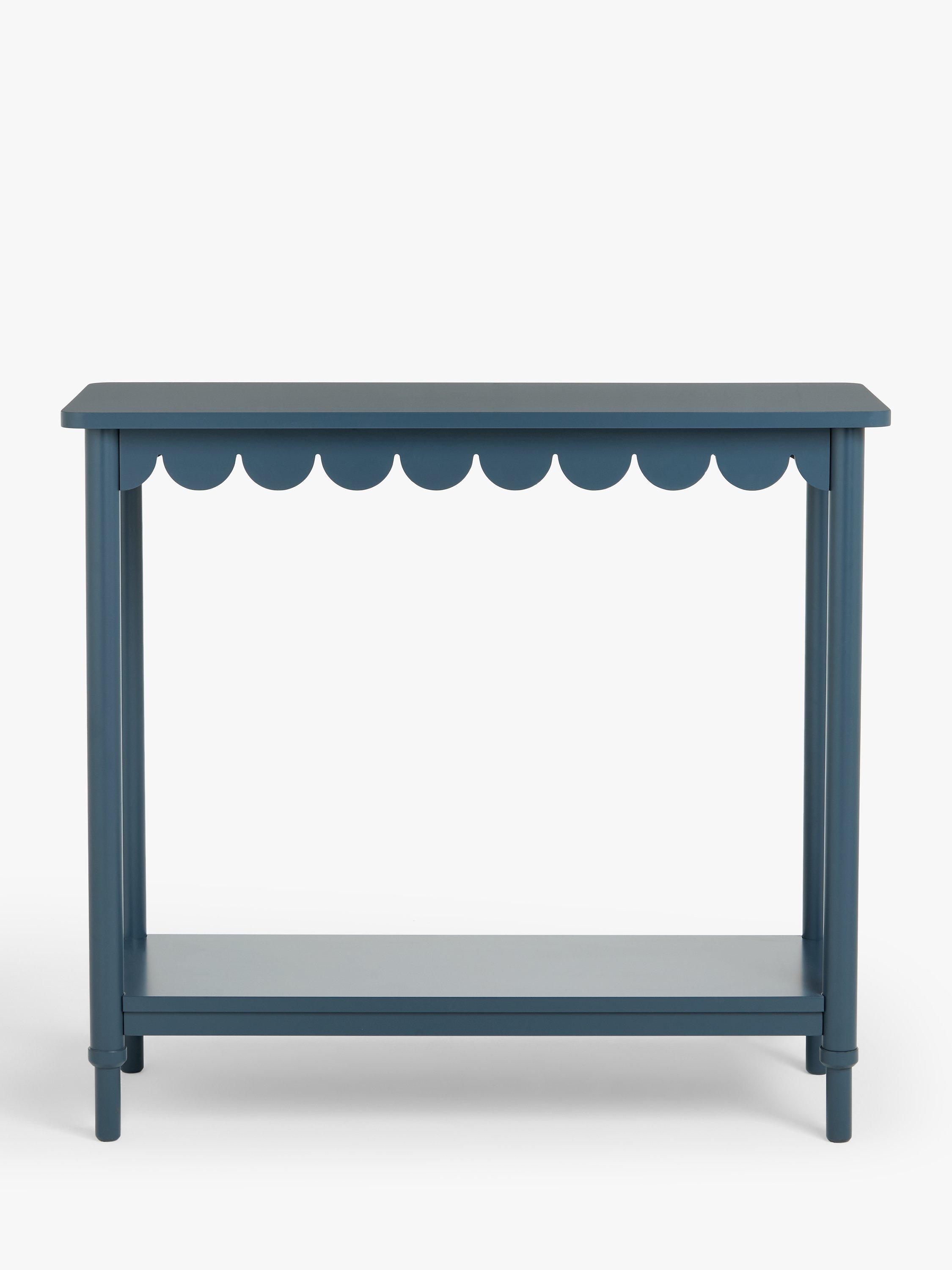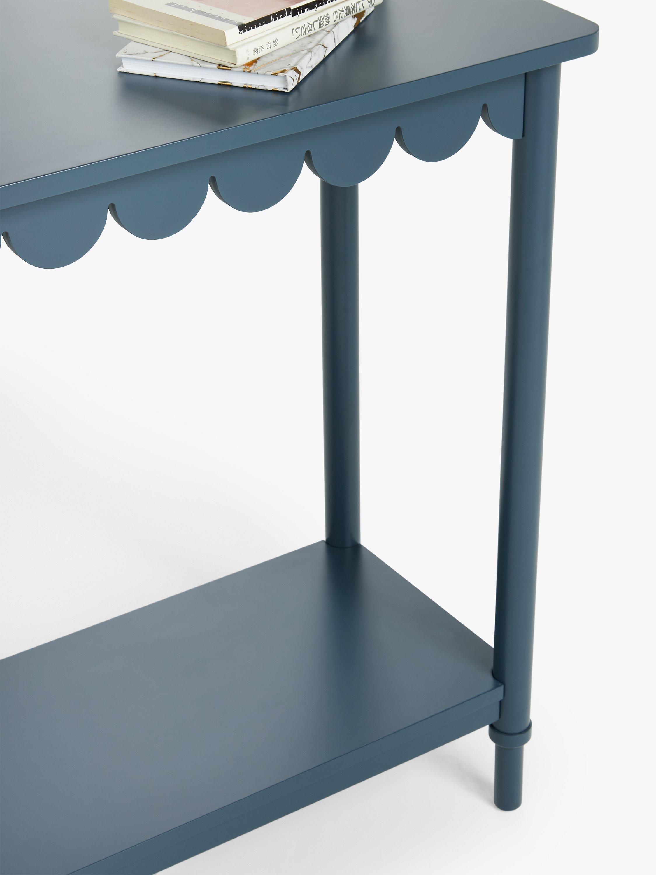 This studio designed console table features a scalloped edge design detail and bold painted finish. Compact, playful and practical it's perfect for a hallway or living room.