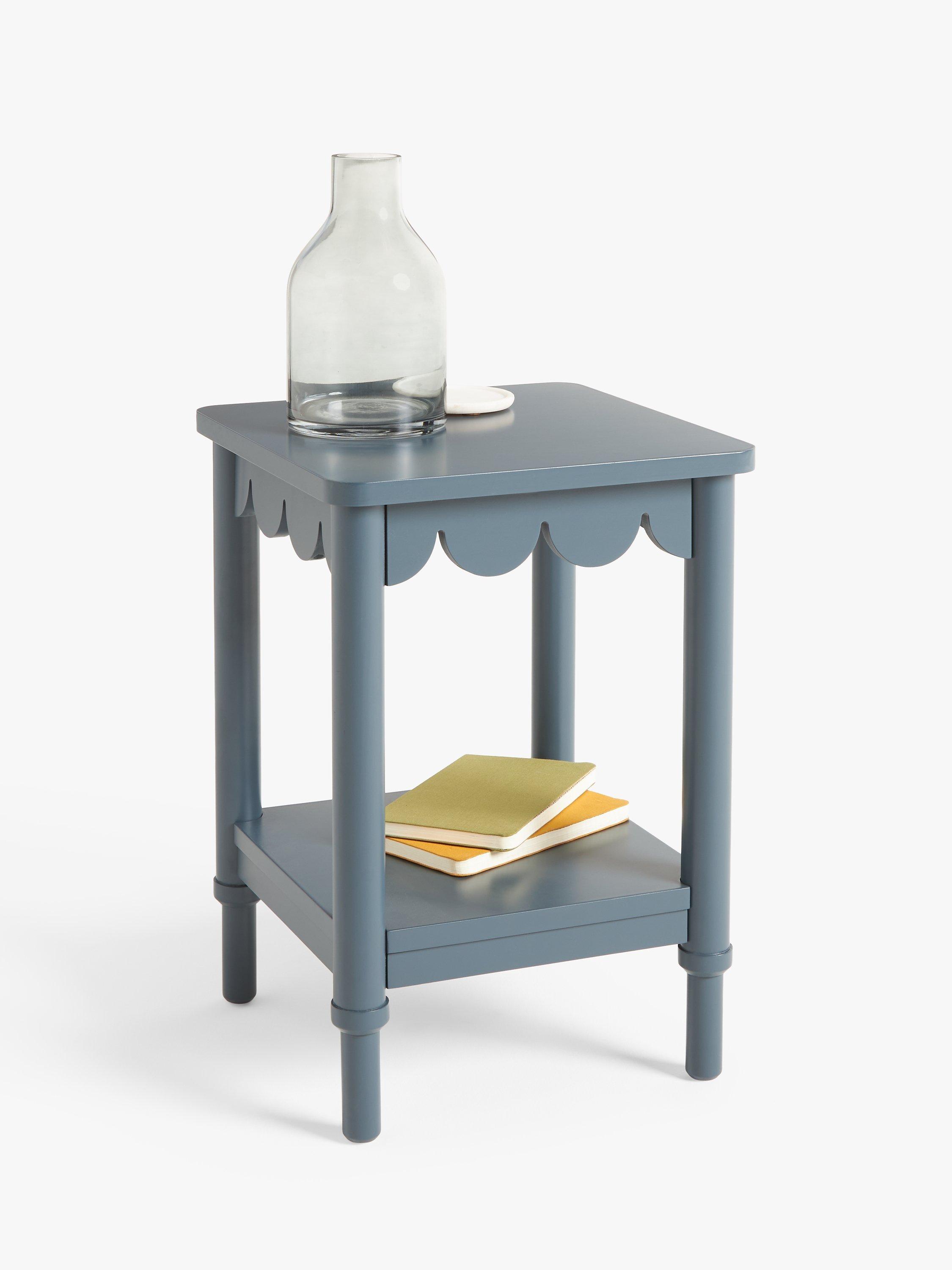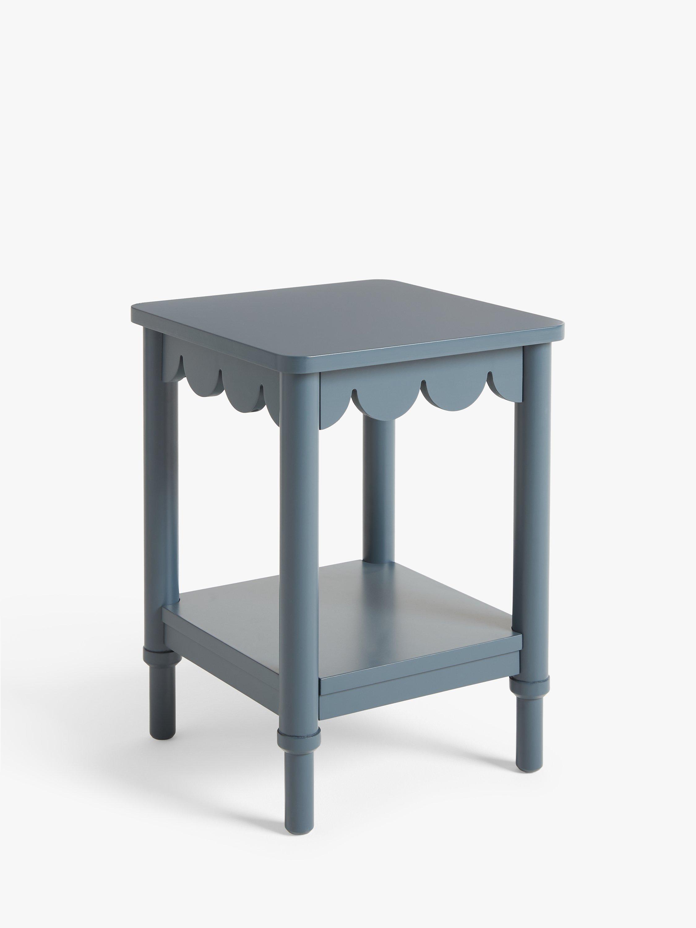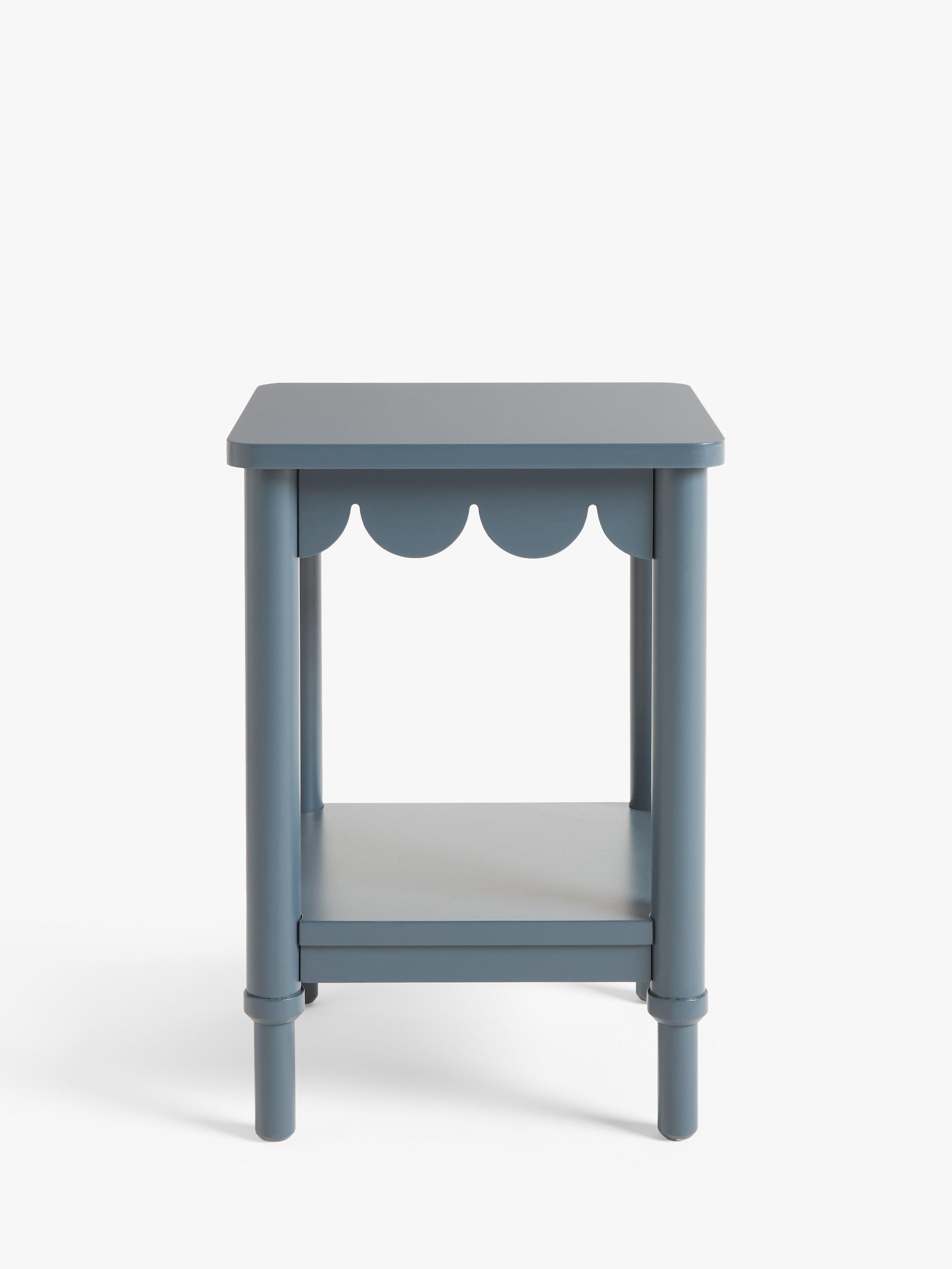 This studio designed side table features a scalloped edge design detail and bold painted finish. Compact, playful and practical it's great for use in a living room or bedroom.
