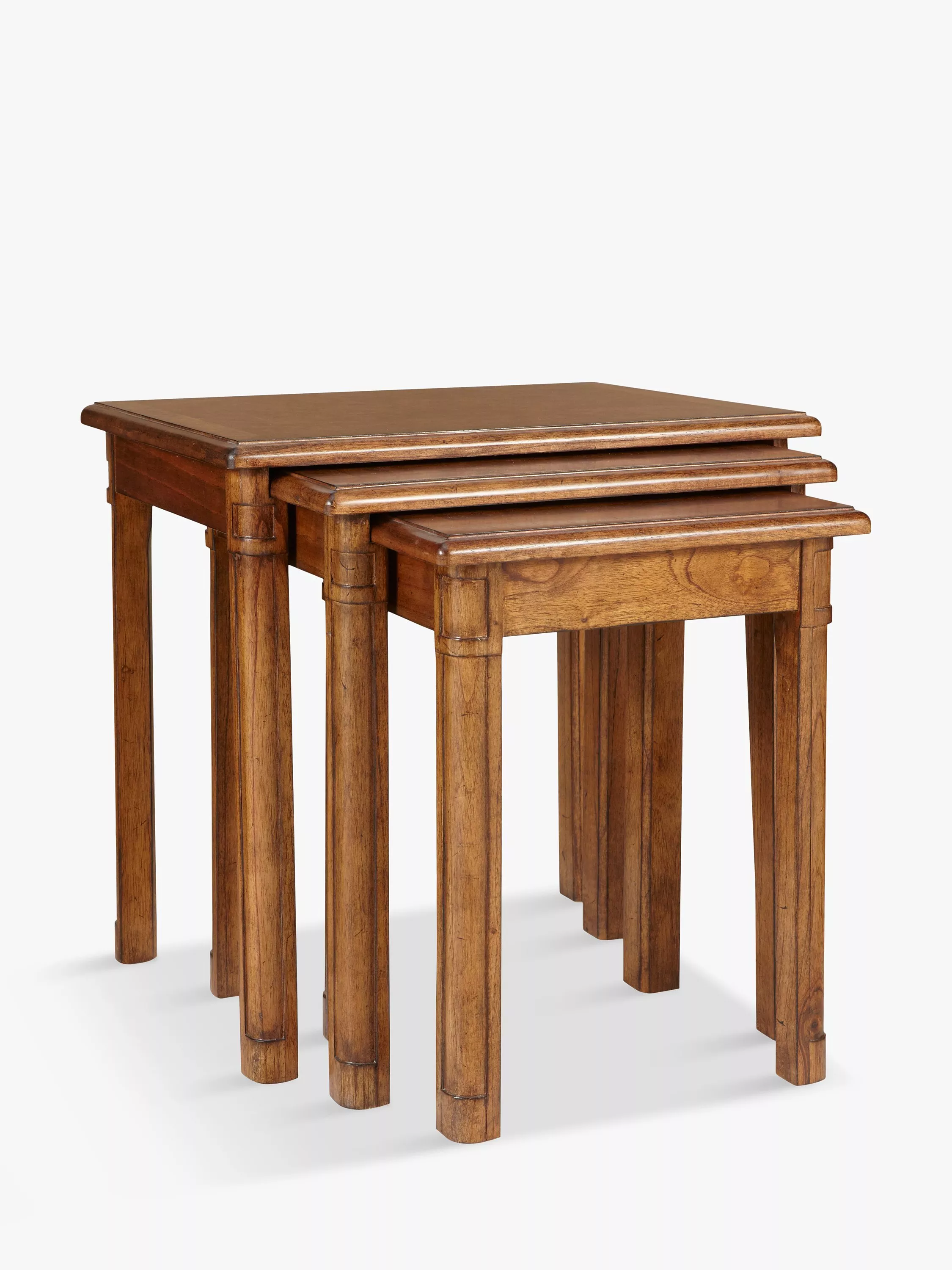 This formal nest of 3 tables is made from melia oak solids and pippy oak lacquered, hand-polished with wax lacquer, and would be a wonderful addition to your living room, dining room, bedroom or hallway. Alternatively, split the tables between rooms - perfect for a lamp of a vase of flowers.