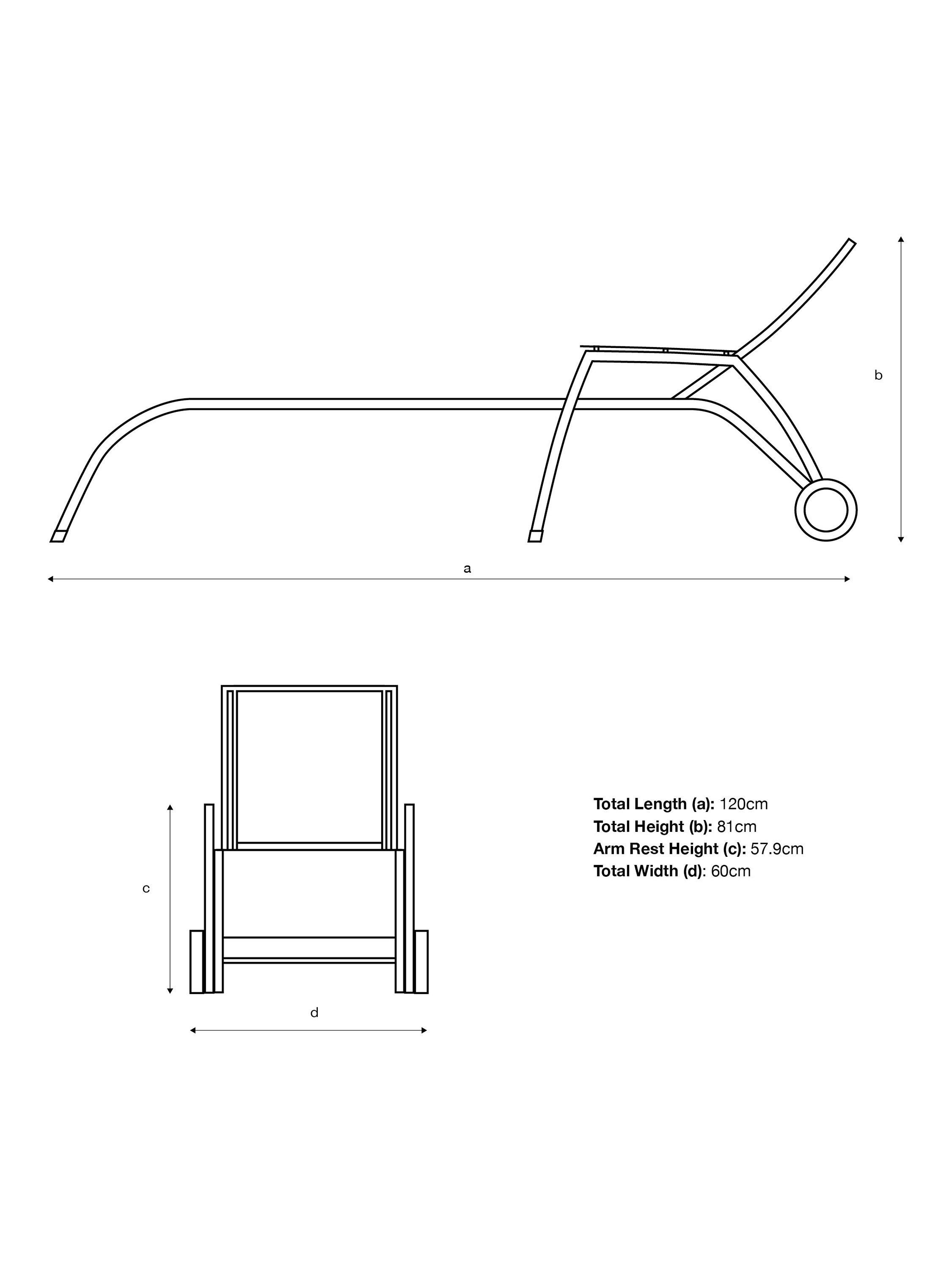Relax in the sun on the Henley sunlounger. Made from hard-wearing mesh and ergonomically designed with armrests, it has a fully adjustable backrest for customised comfort. The robust frame has been tested to withstand up to 17 stone (120kg).