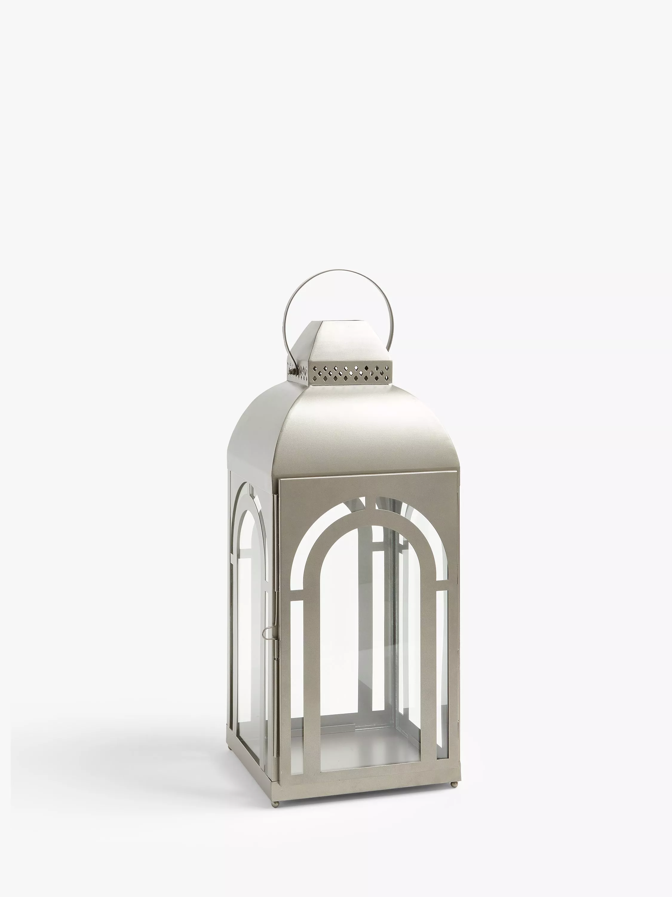 This beautiful glass lantern has been crafted from iron and glass with a silver powder coat finish. Although contemporary, their traditional design is perfect for use with pillar candles to create a warm and relaxing glow within your home. Place together with the smaller lantern or separately for an eye catching focal point.