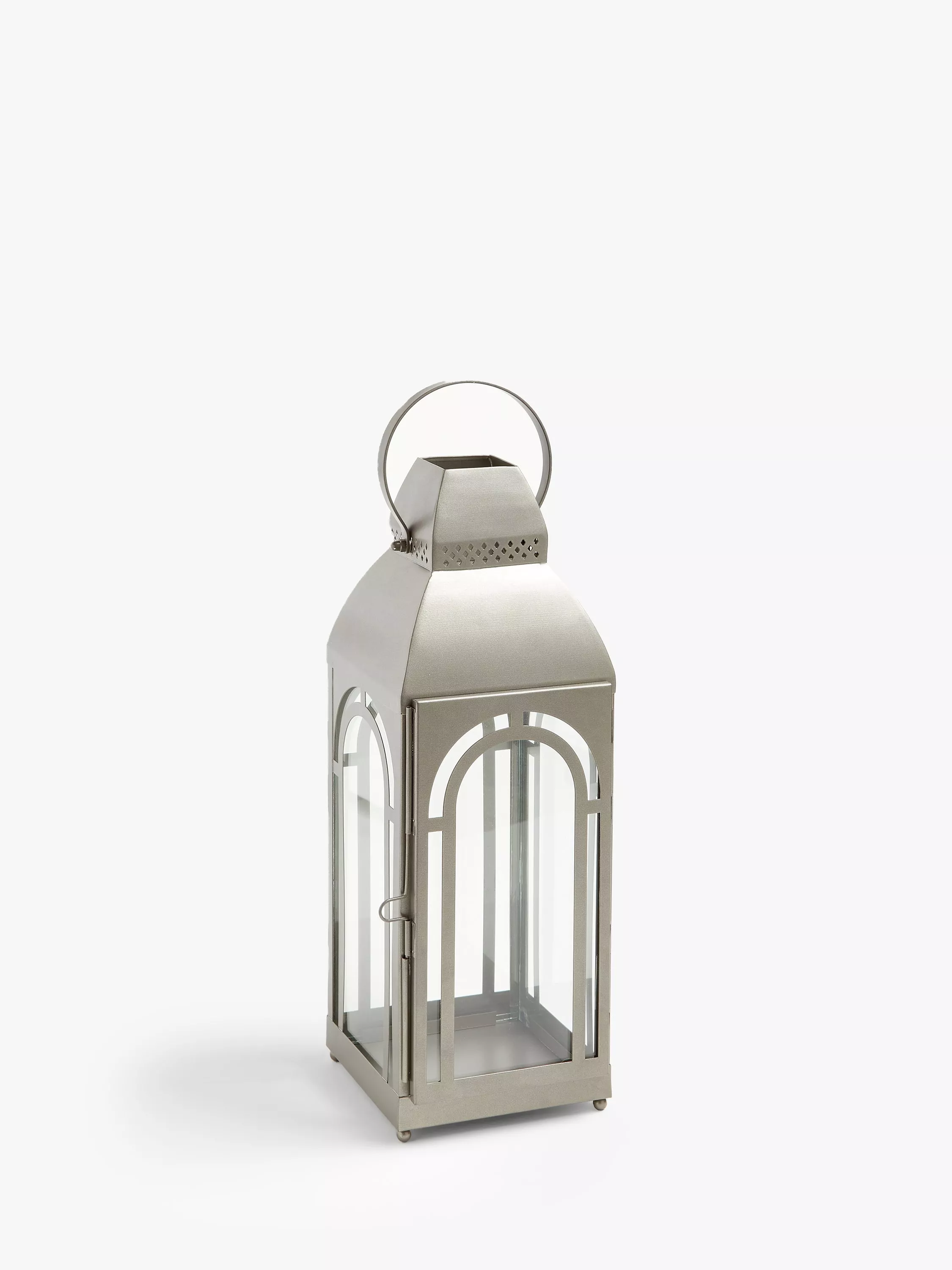 This beautiful glass lantern has been crafted from iron and glass with a silver powder coat finish. Although contemporary, their traditional design is perfect for use with pillar candles to create a warm and relaxing glow within your home. Place together with the larger lantern or separately for an eye catching focal point.