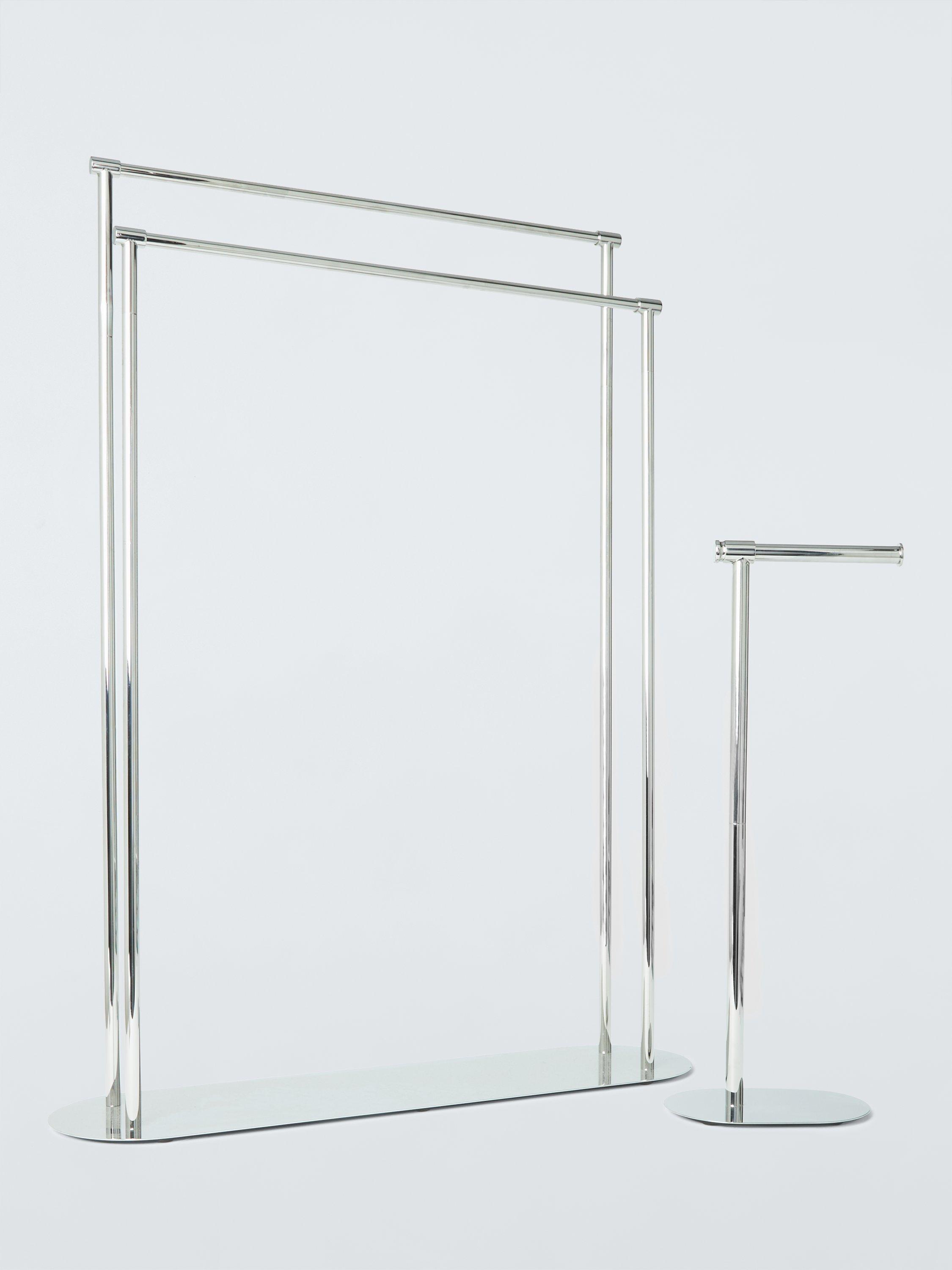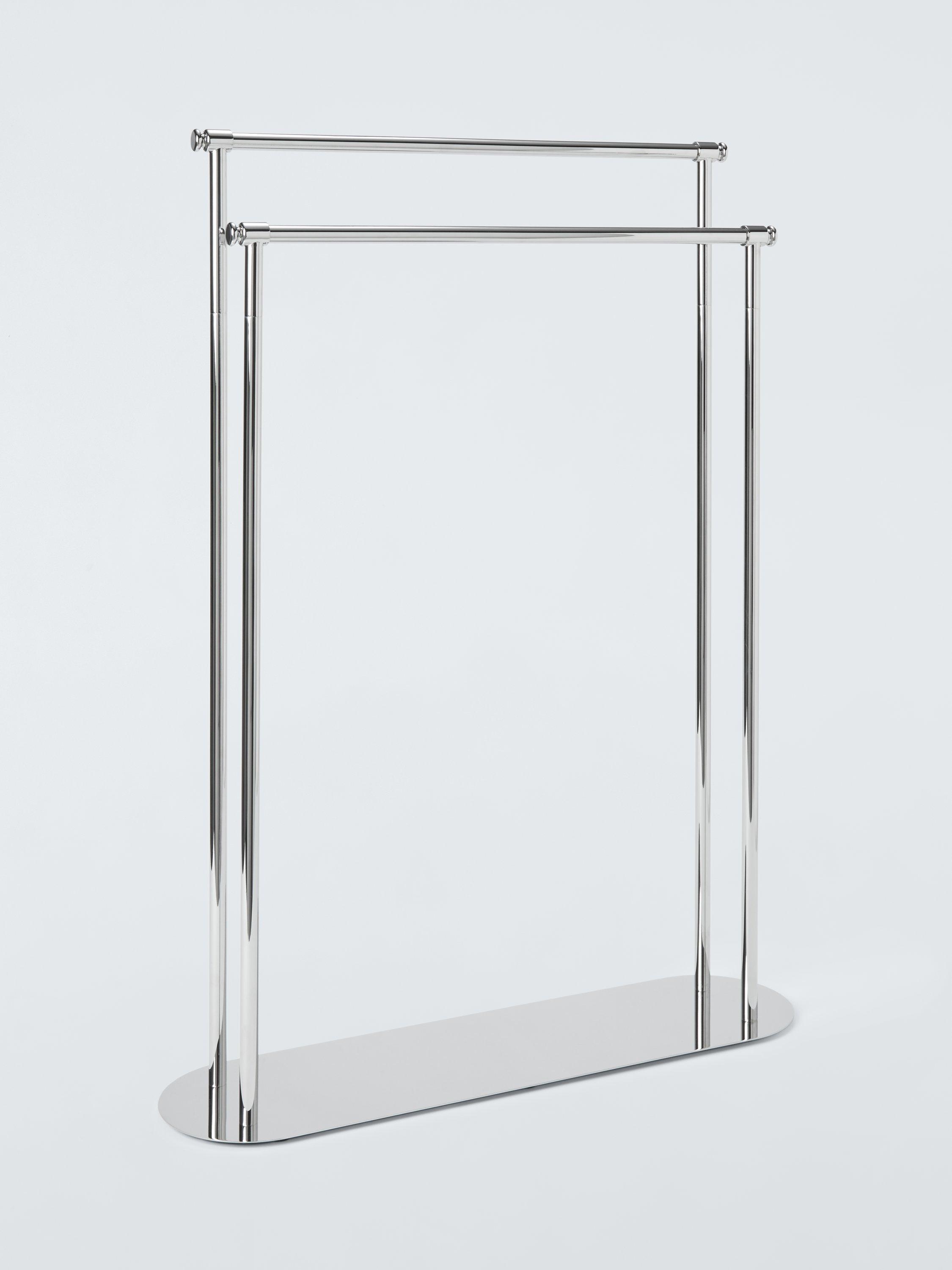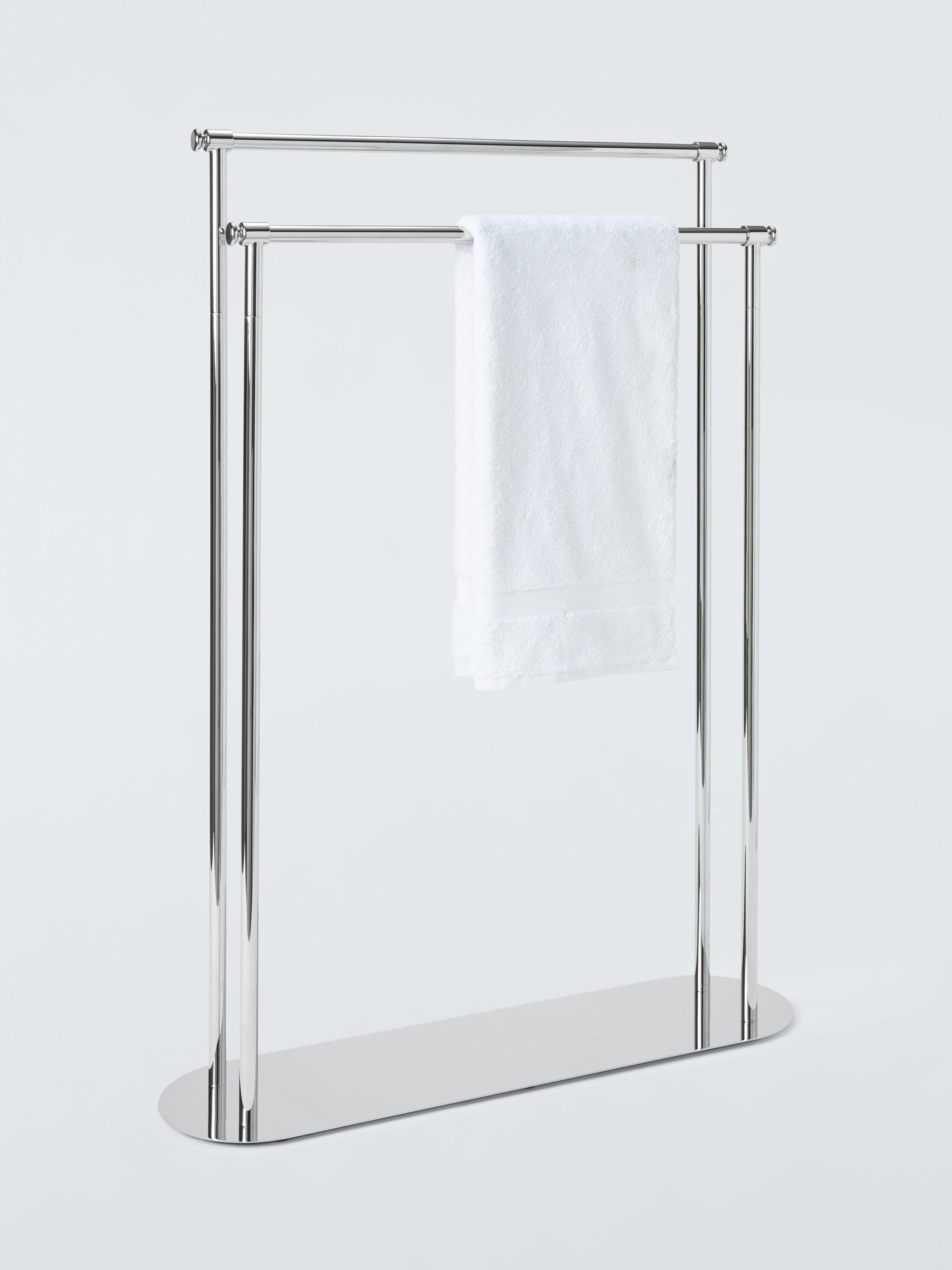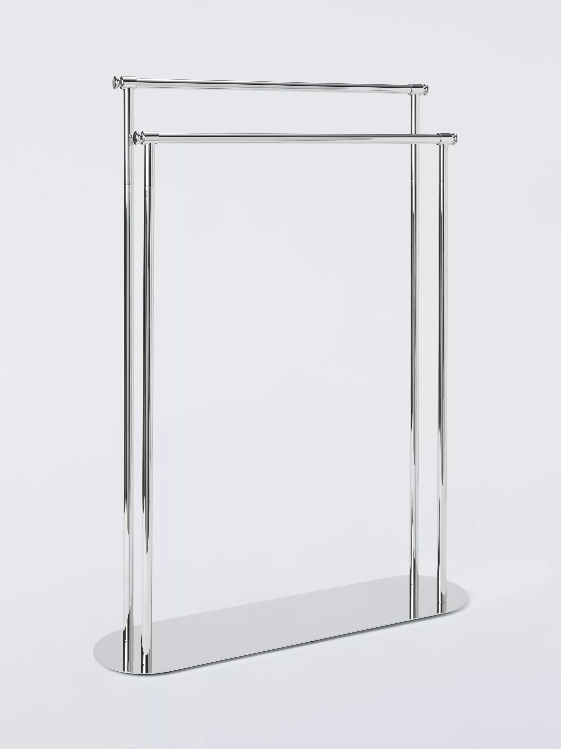 This free-standing double towel rail is the ideal choice whenever a wall-mounted product is not an option. Manufactured from rust resistant materials and fitted with a weighted base plate this is a great addition to other items in the range. Available in a choice of either chrome or brushed brass finishes.