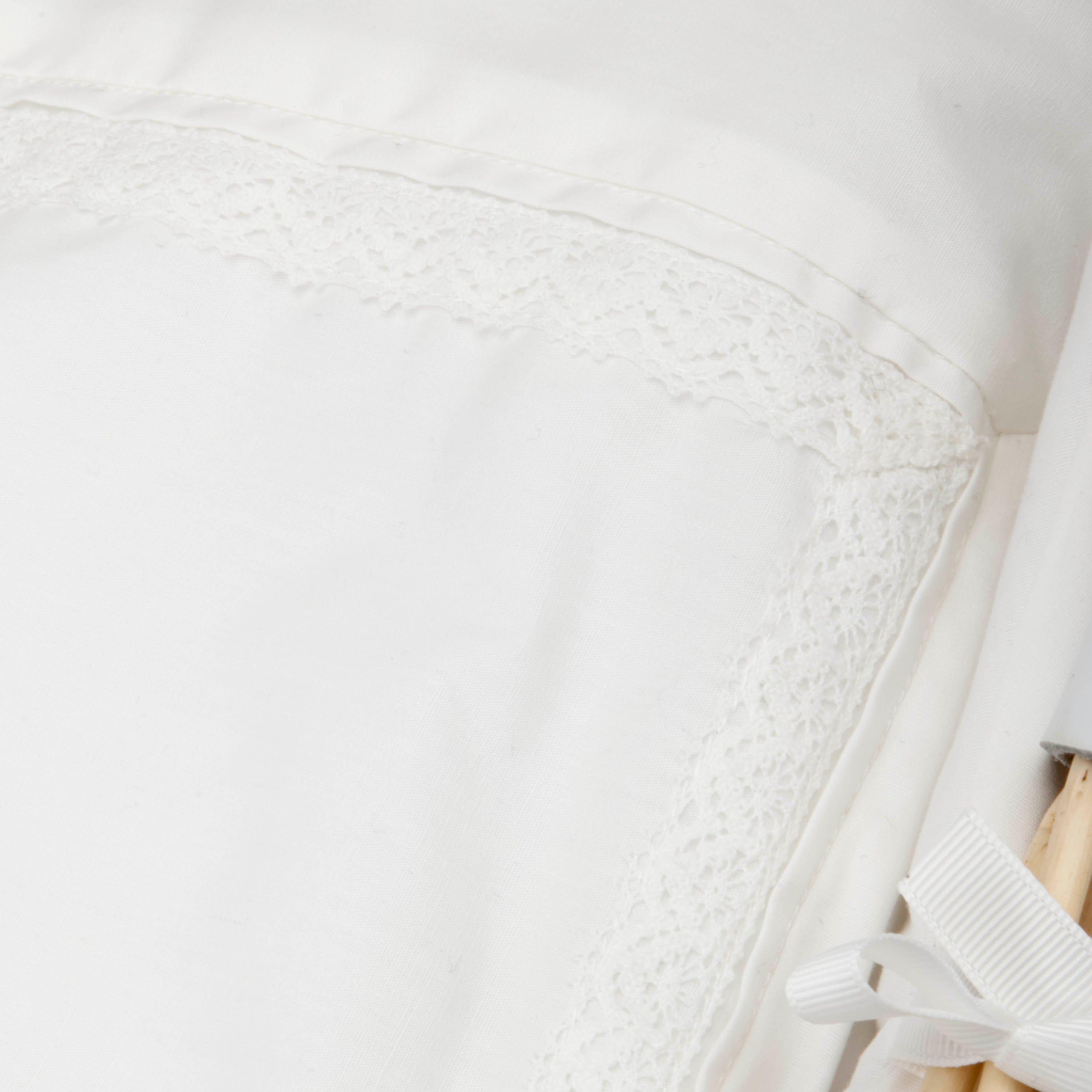 Lace trimmed coverlet measures 46 x 60cm.