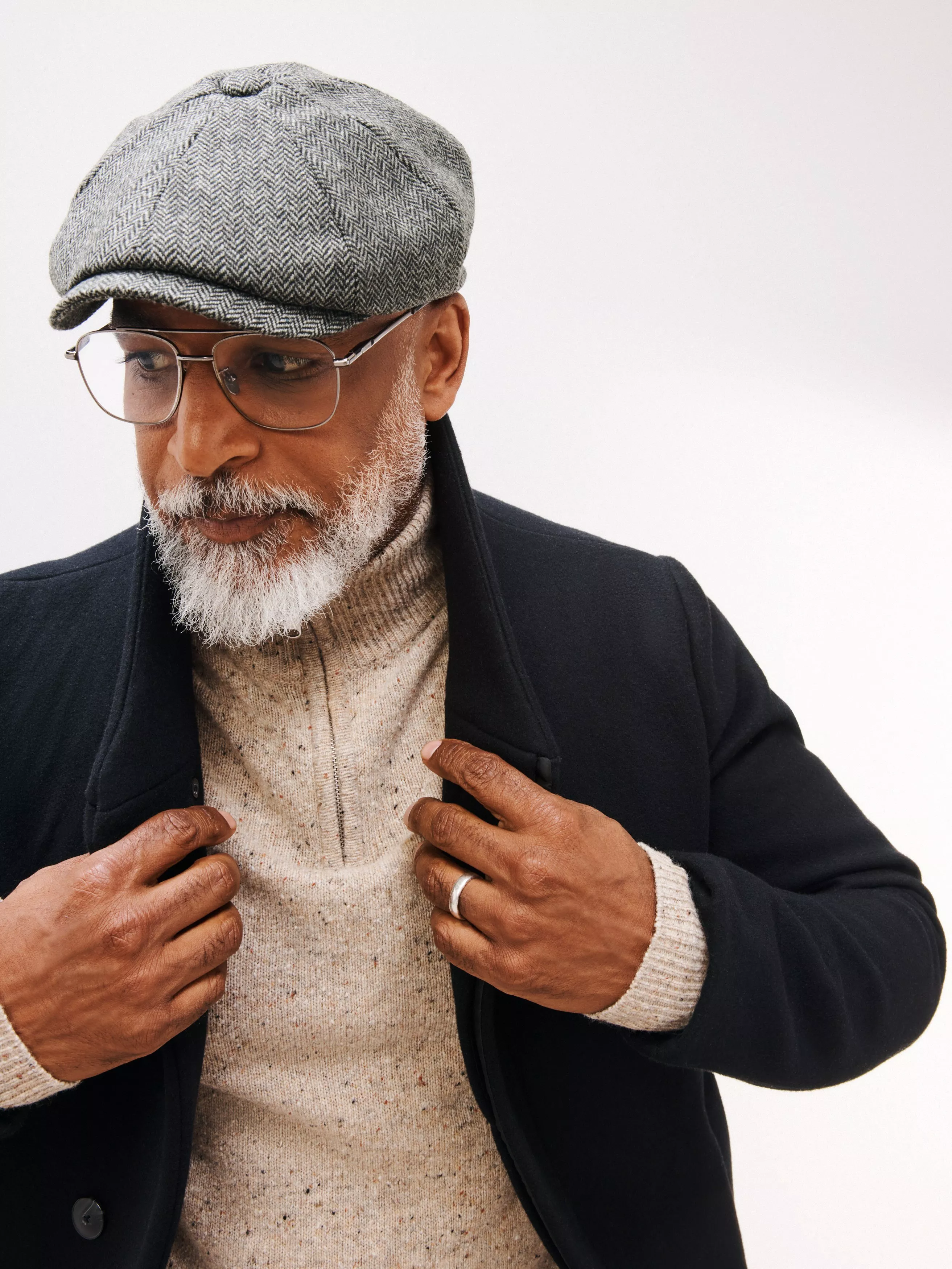 John LewisHerringbone Bakerboy Cap, Grey