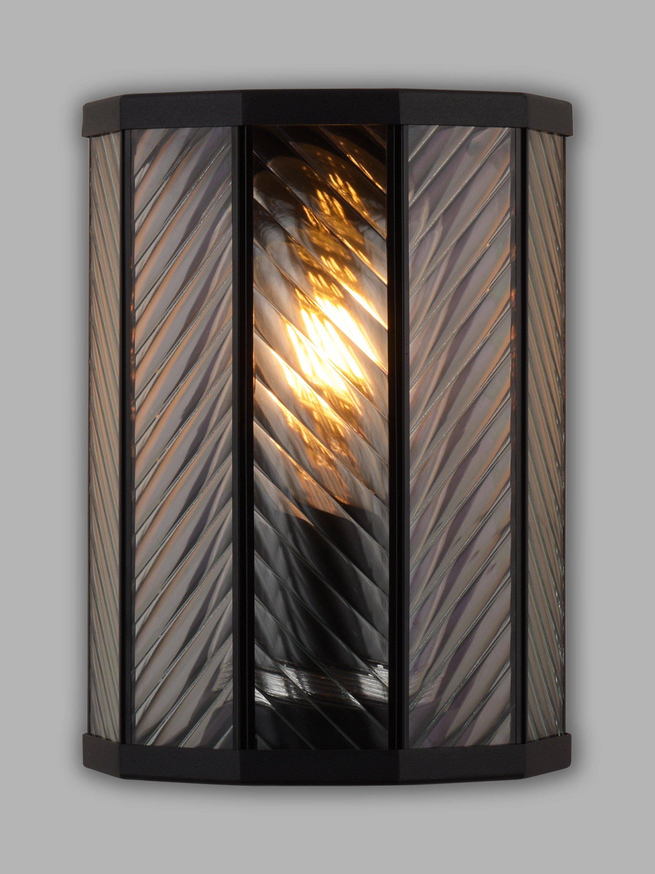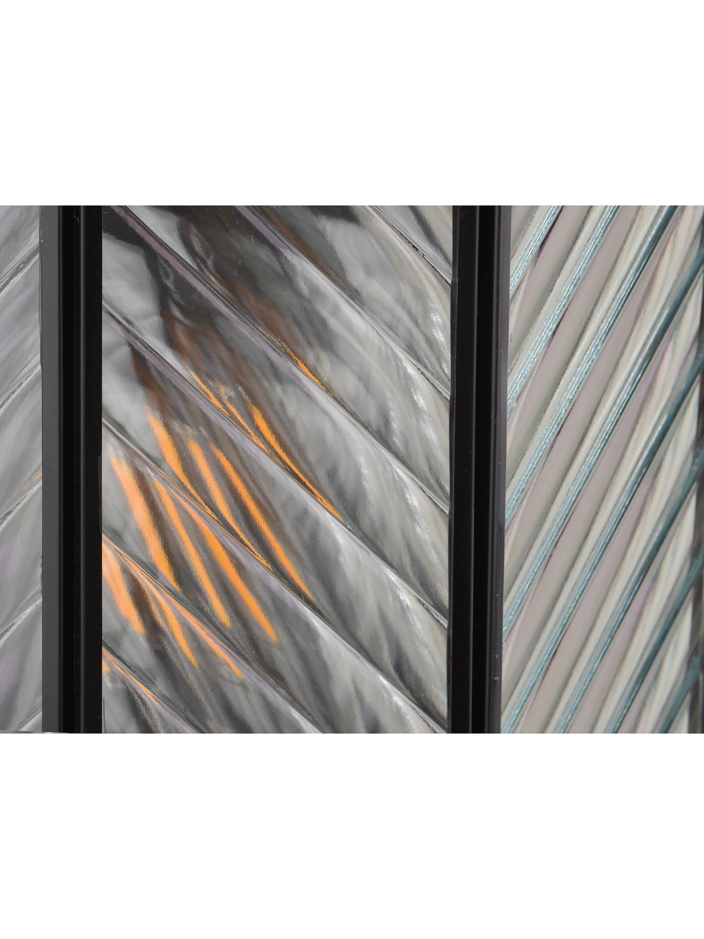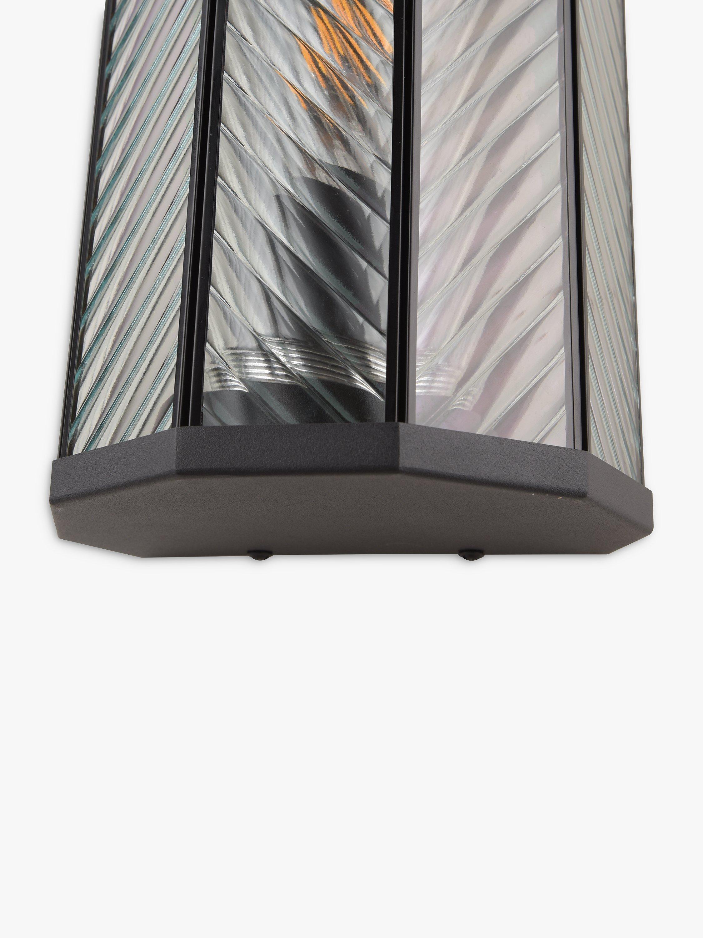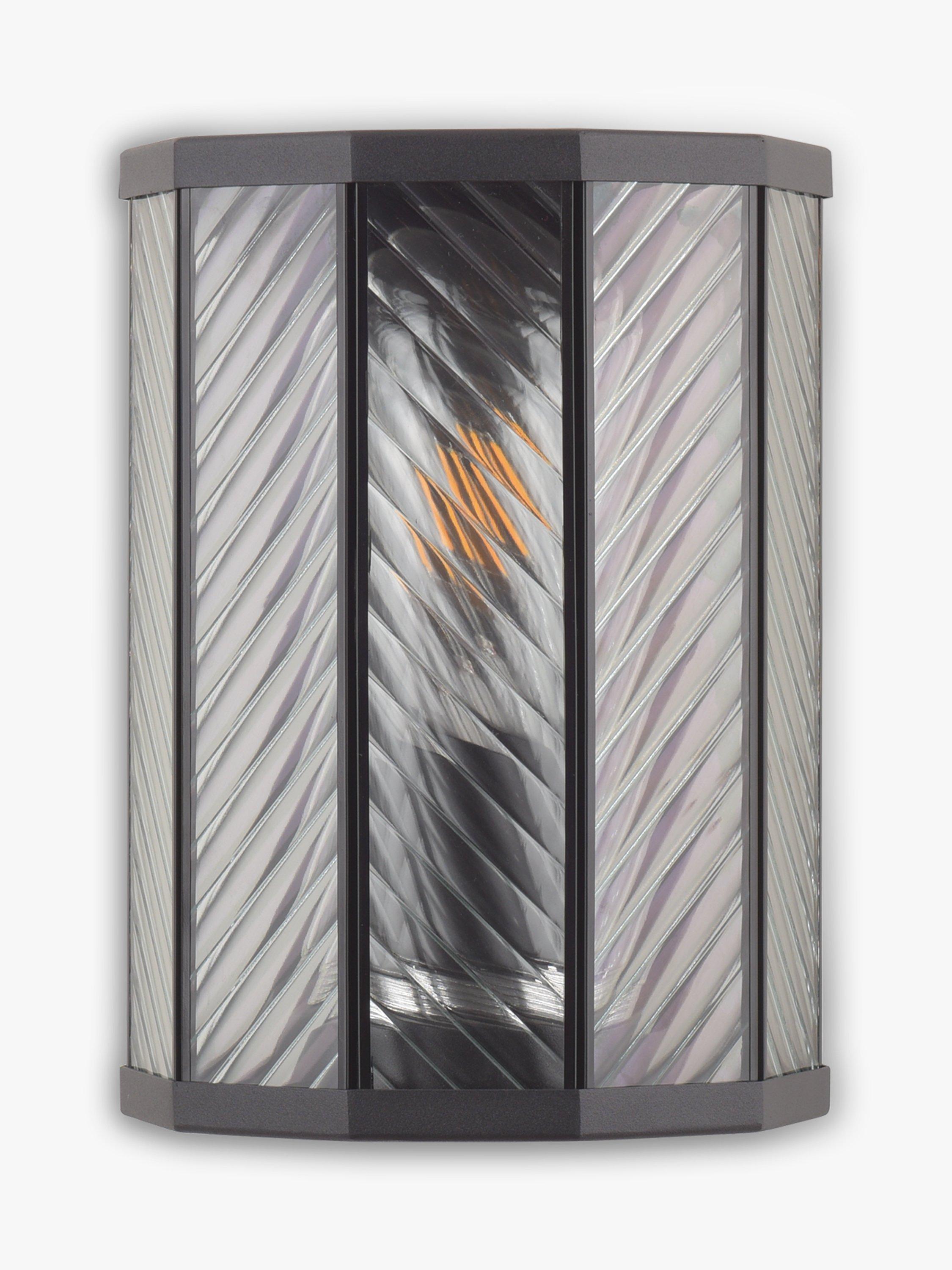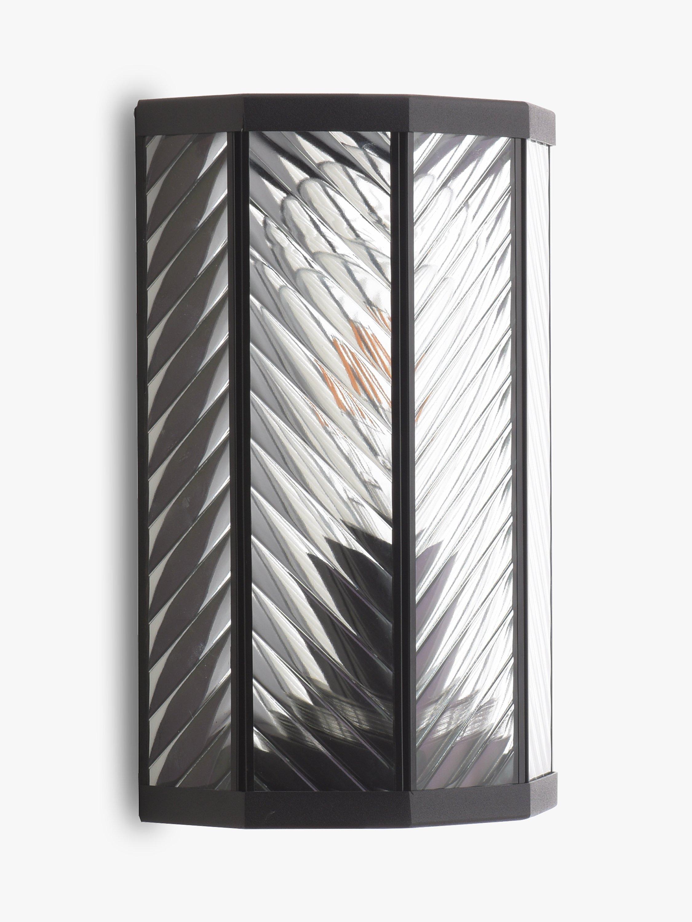 Made from glass with a ribbed finish and herringbone pattern, this wall light is a modern take on a classic outdoor lantern. It provides a warm glow of light and the IP44 rating ensures its suitability outdoors.