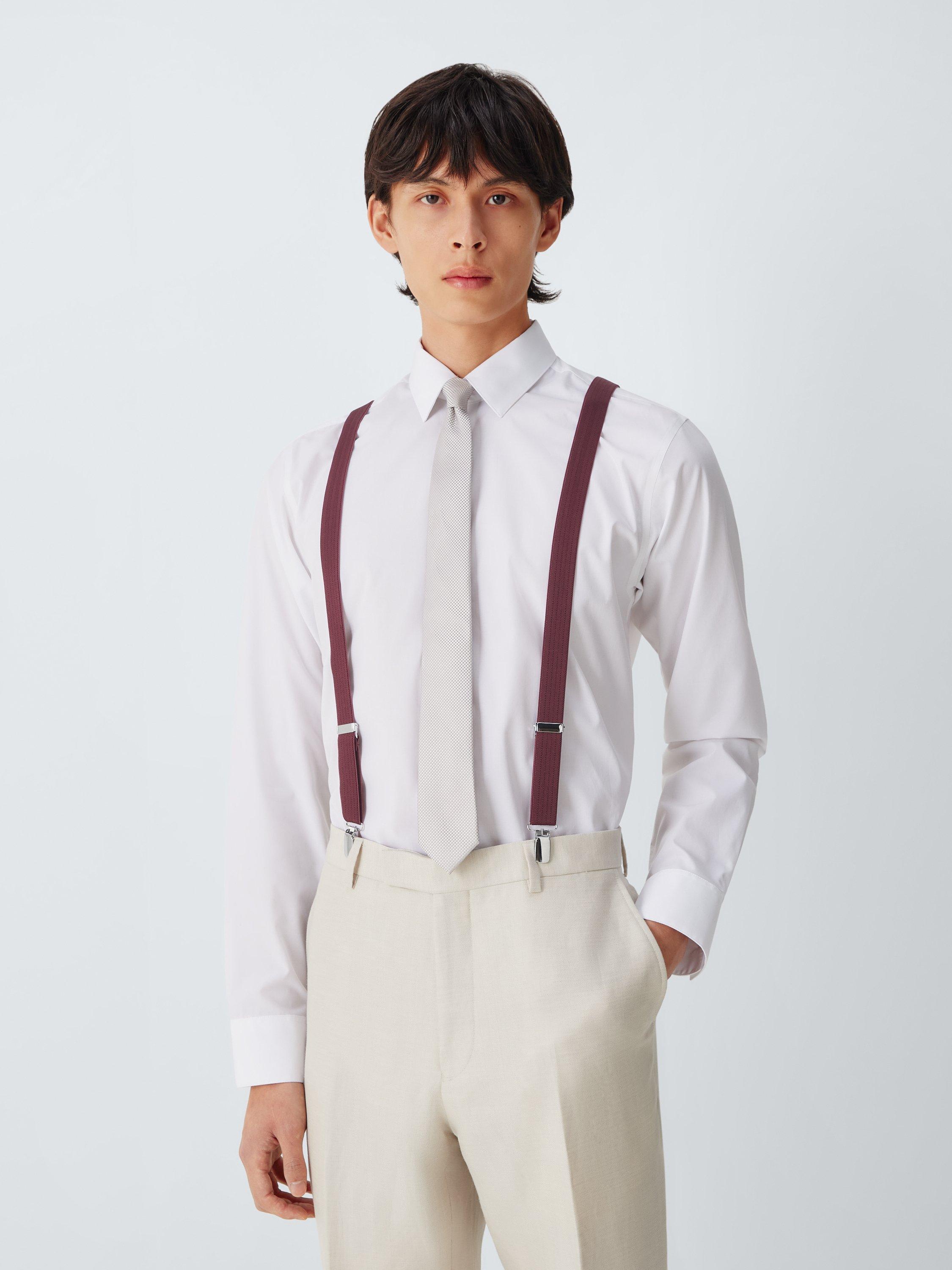 Heritage charm is reimagined for the modern wardrobe with these narrow braces, defined by a subtle herringbone weave that adds a refined, tactile depth to formal attire. The sleek Y-back construction and polished silver-tone clips offer a sharp, understated alternative to a belt, ensuring a secure fit while maintaining a clean, streamlined silhouette that complements your tailoring.