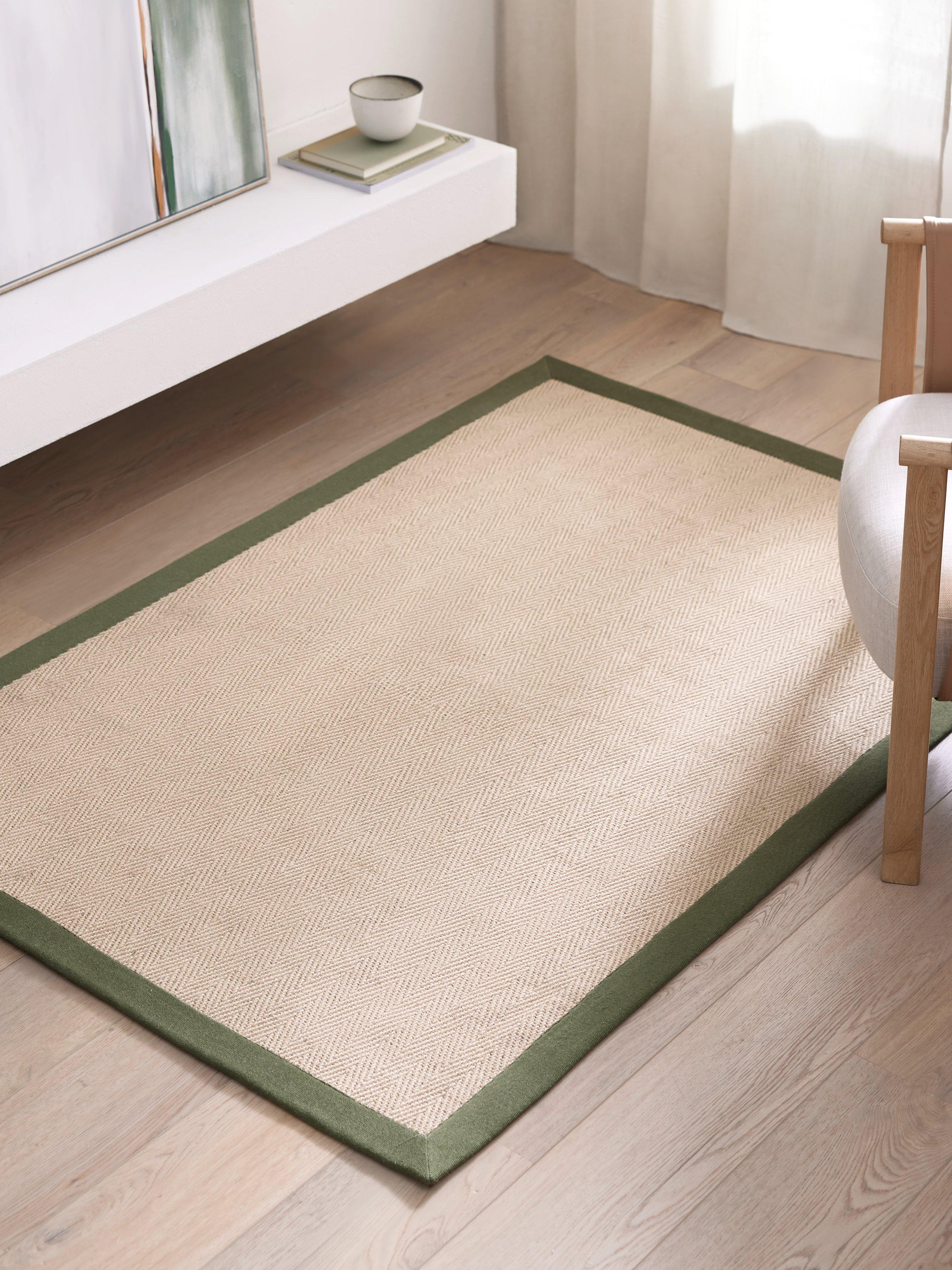 A modern interpretation of the classic Herringbone print, this jute rug offers a practical and versatile way of layering your floor with subtle texture. Designed to easily blend into your existing style, it's finished with a coordinating border making it both mode durable and sophisticated.