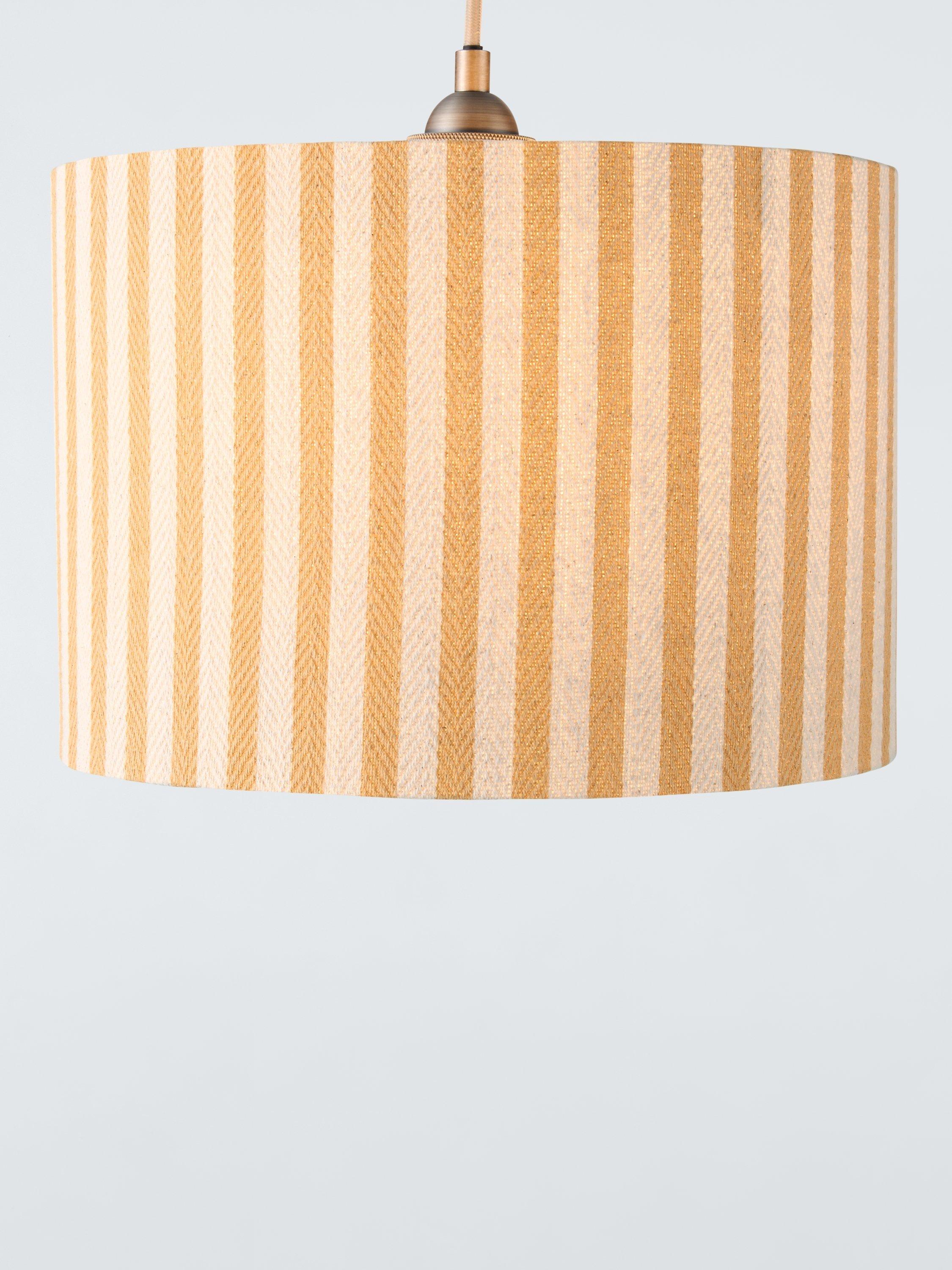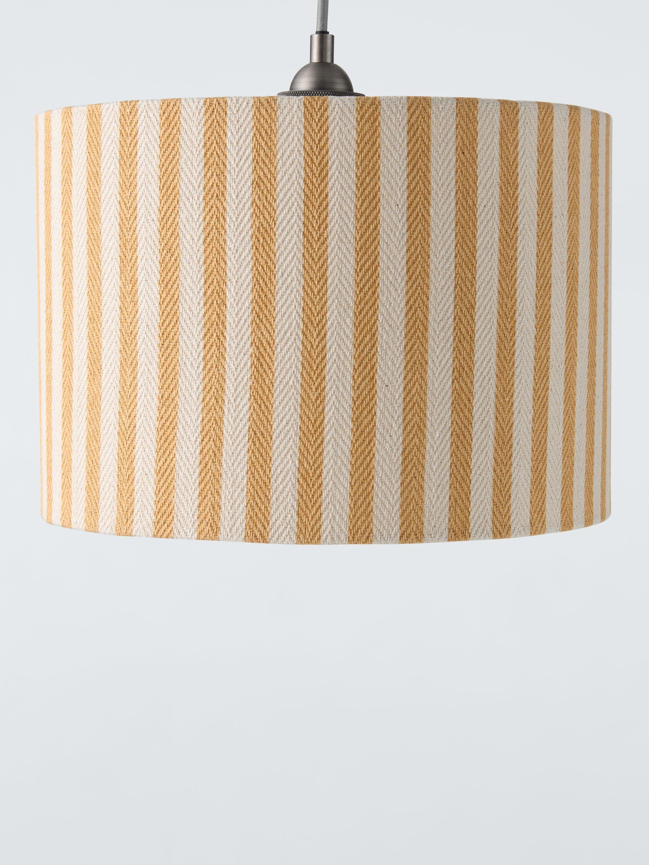 Our Herringbone Stripe drum lampshade brings a touch of charm to the home. Woven with a textured fabric that adds depth and dimension, it's made in a timeless colour palette in a traditional striped design to suit any room in your home. No bulb included.