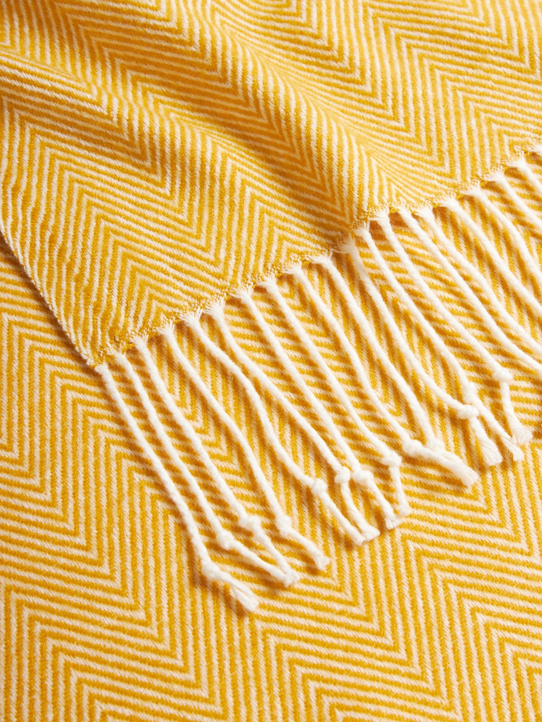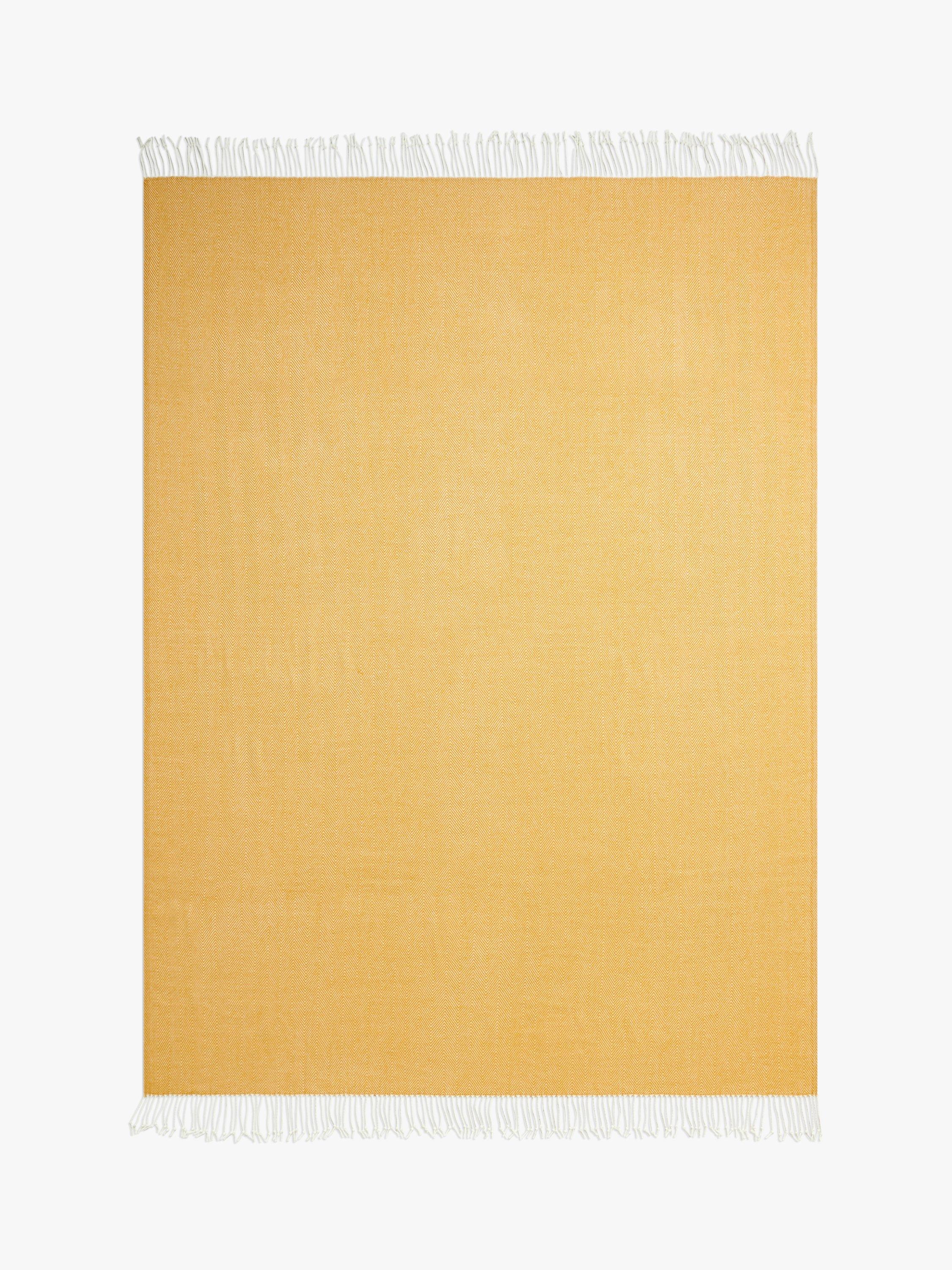 This lightweight acrylic woven throw is soft, light and warm and features a knotted, fringed edge.