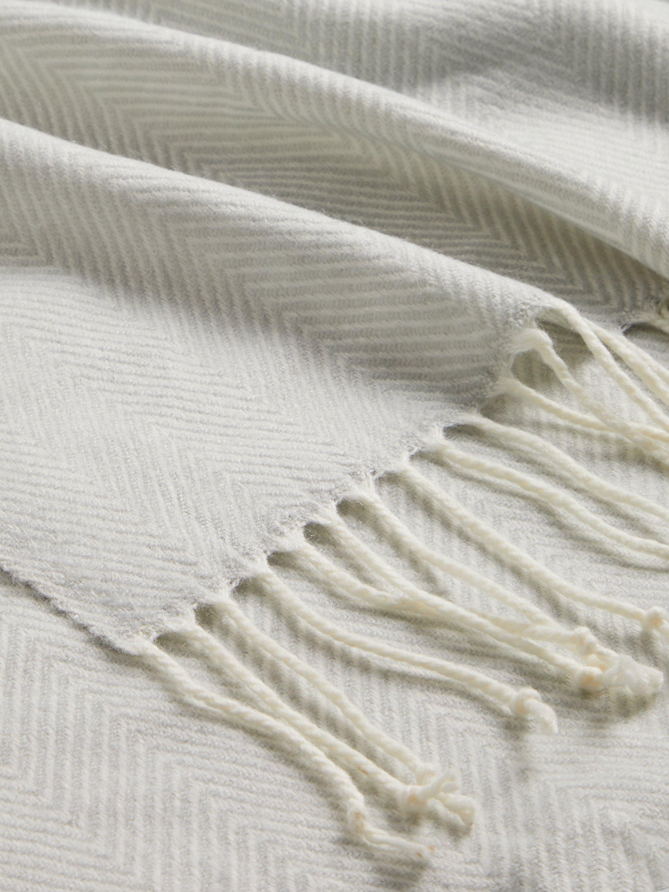 This lightweight acrylic woven throw is soft, light and warm and features a knotted, fringed edge.