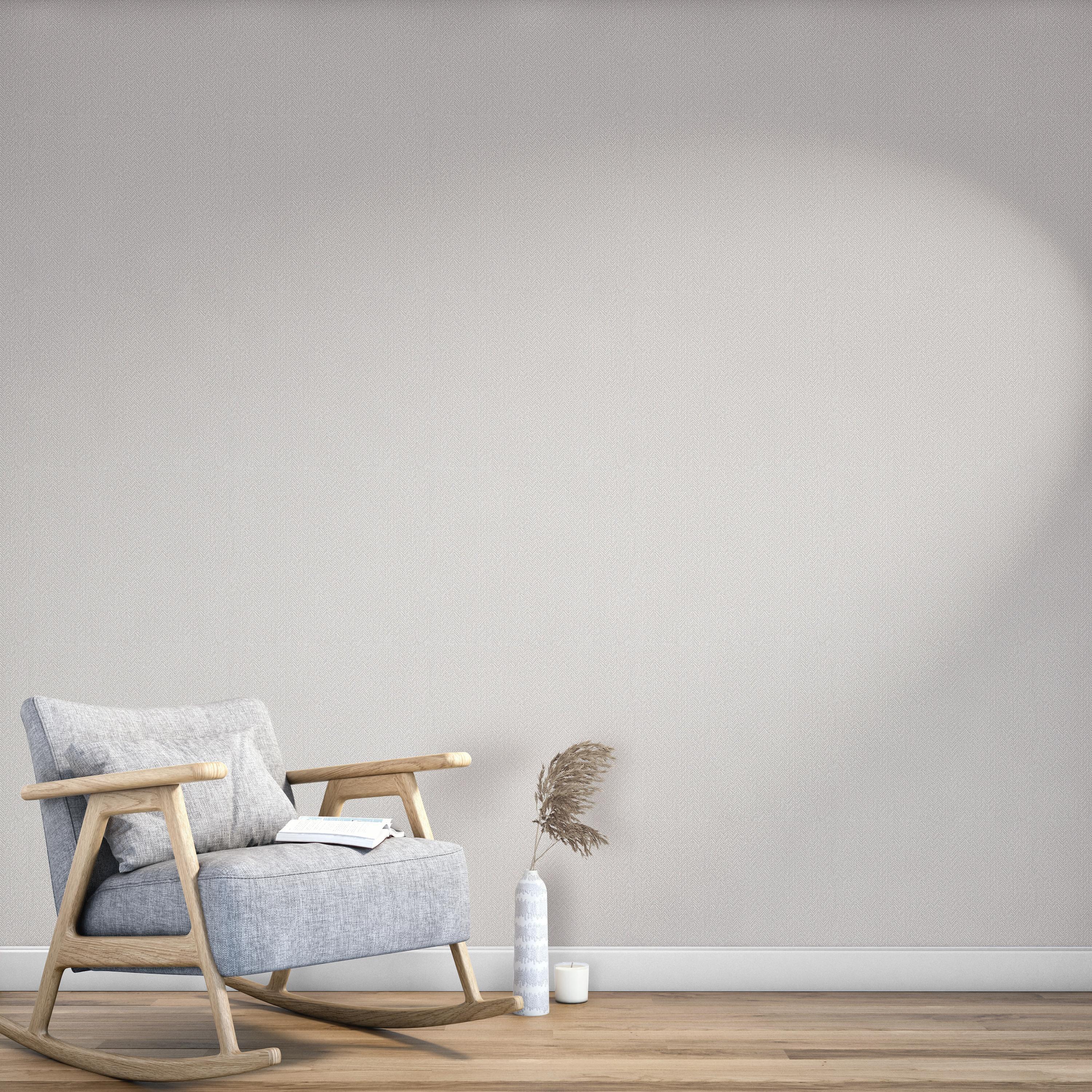 A lightly embossed vinyl wallcovering patterned with a subtle herringbone weave pattern.