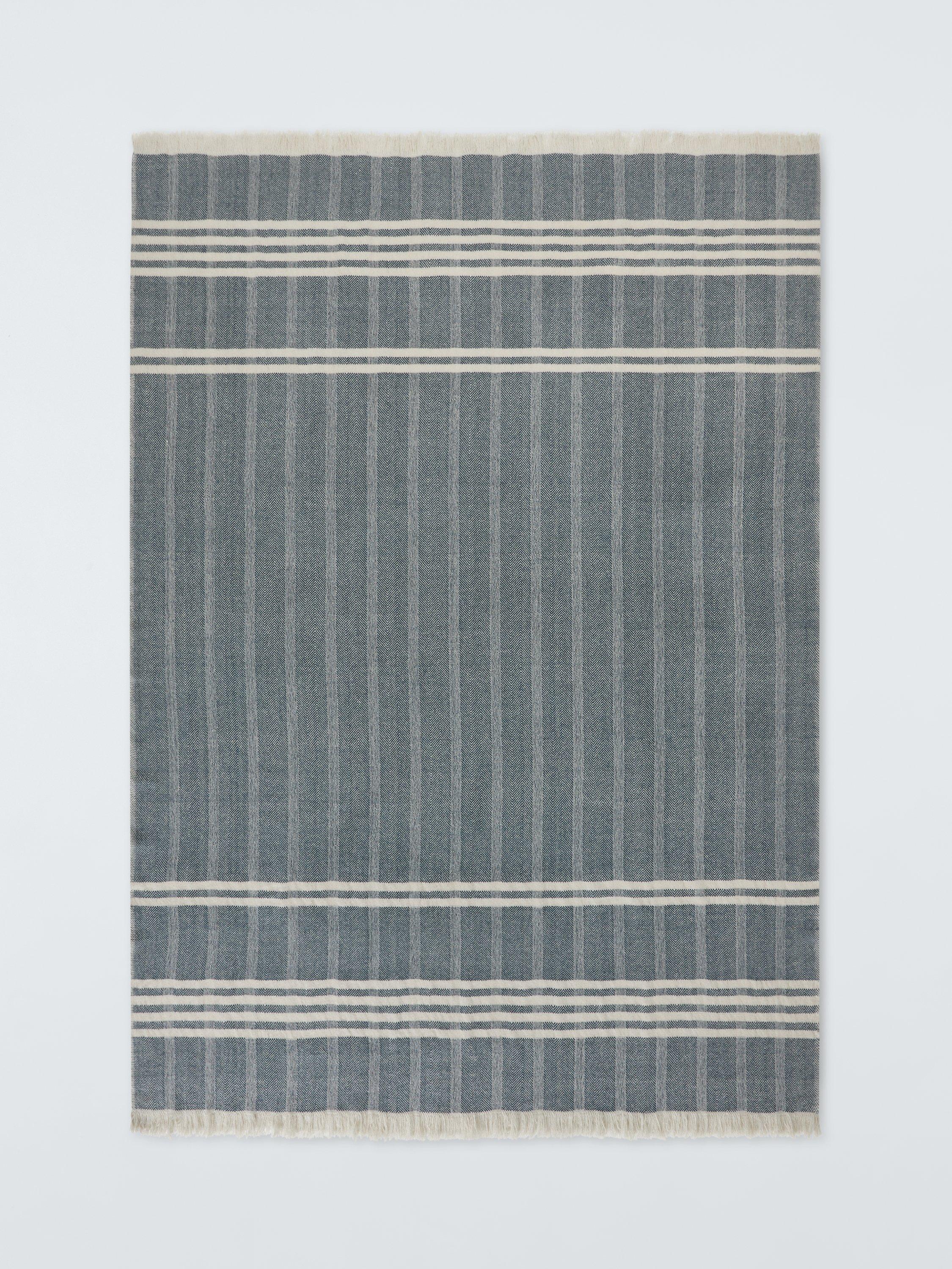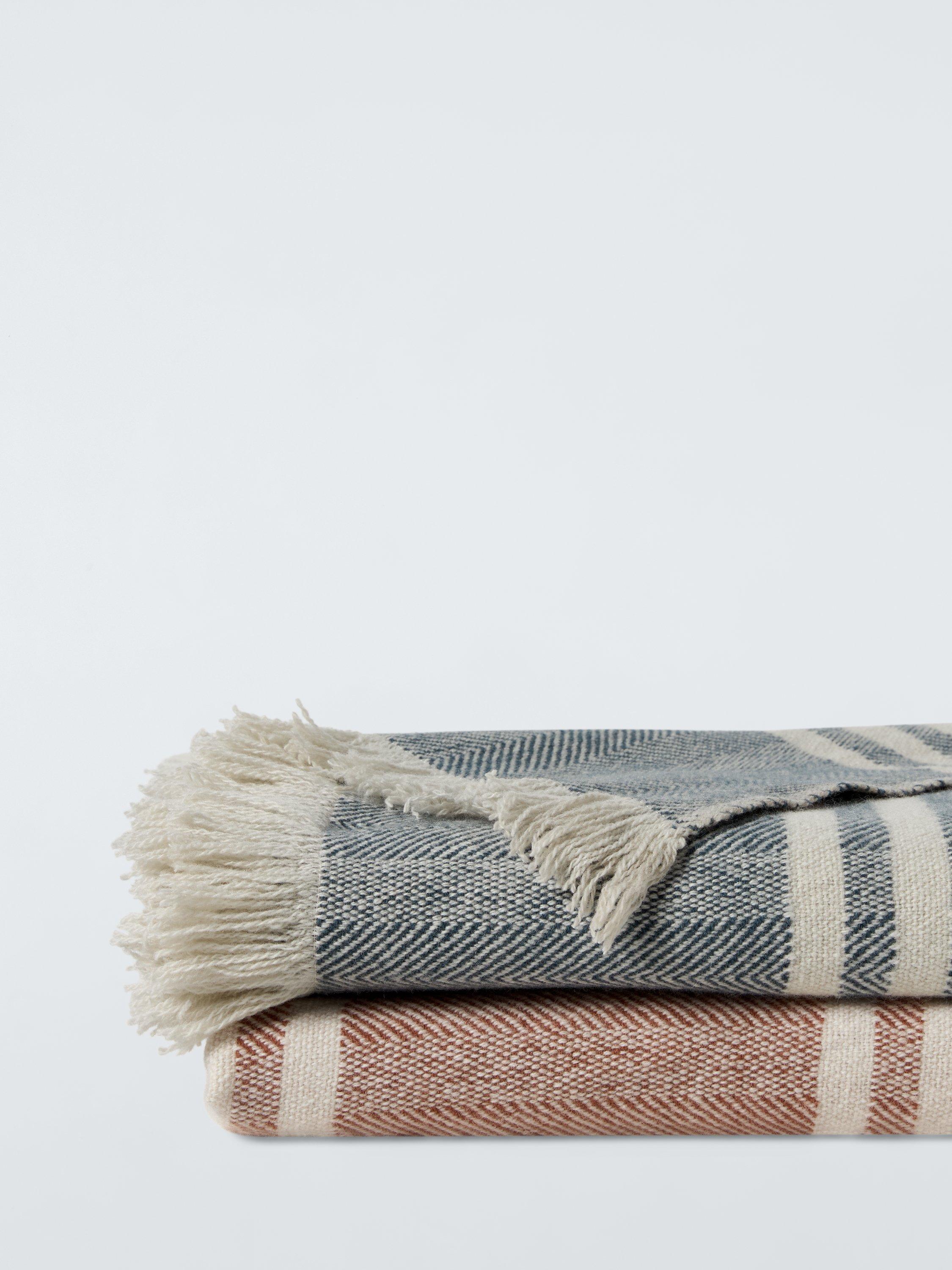 John LewisHerringbone Woven Wool Throw, Blue