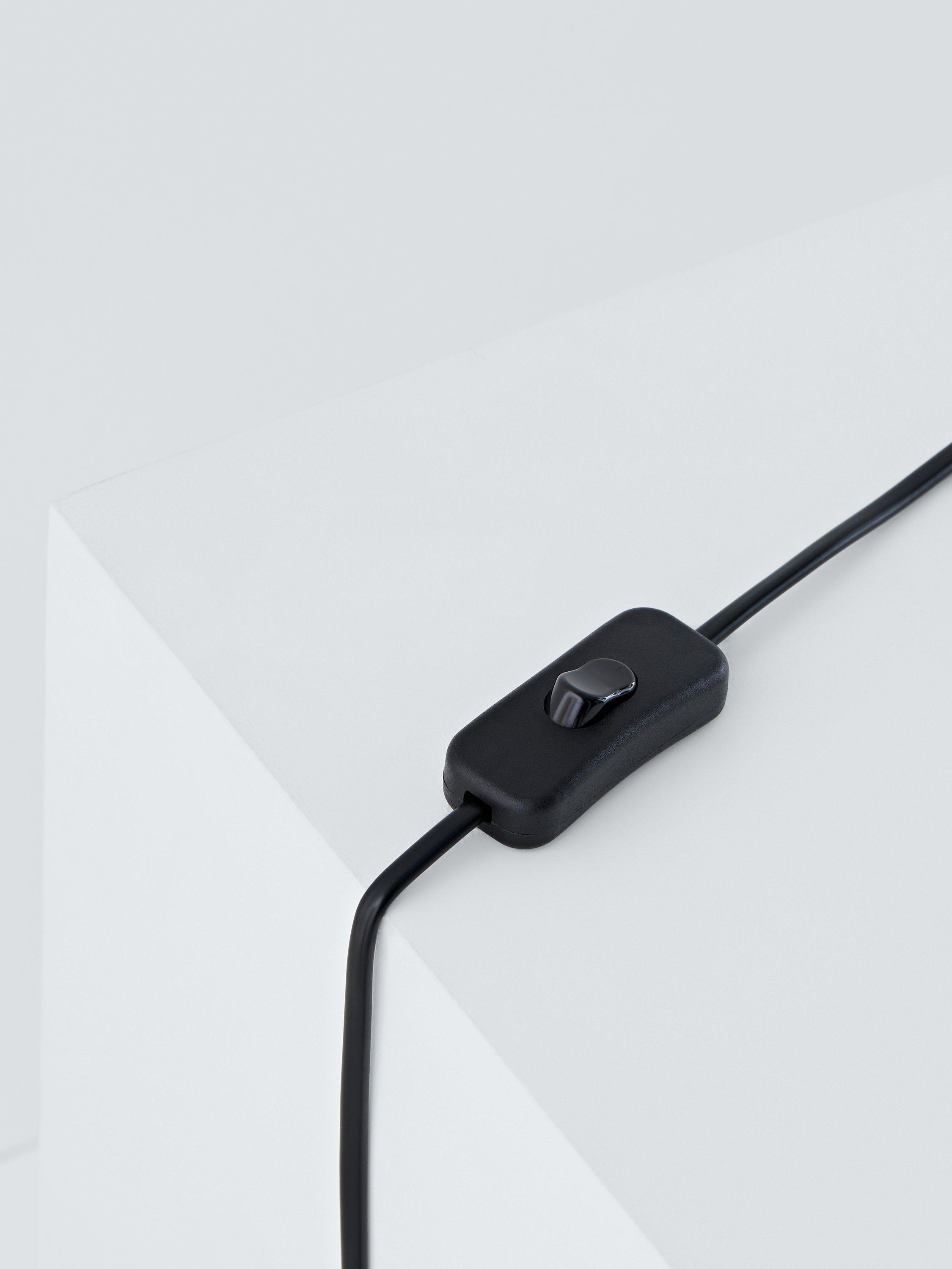 Turn on and off with the in-line switch. The lamp is powered by a five-foot cord covered in natural fabric.